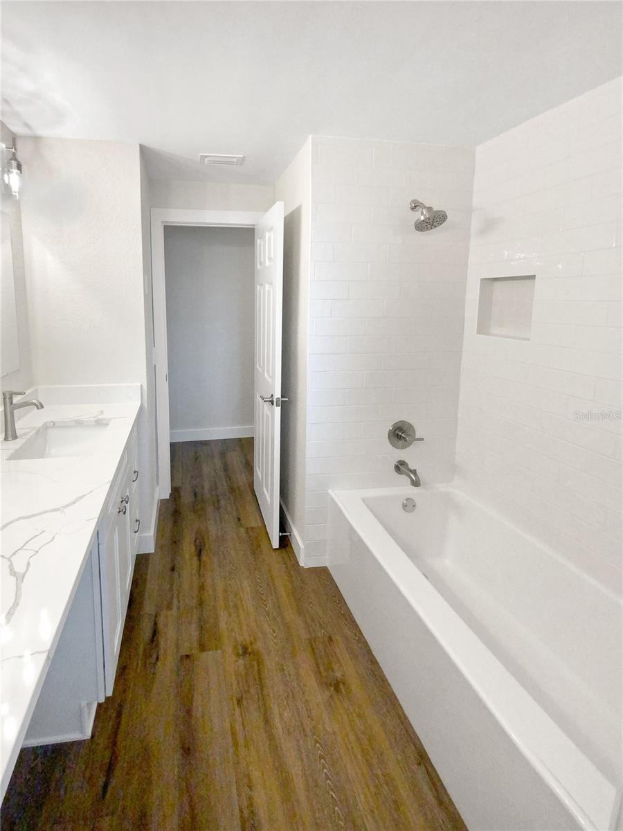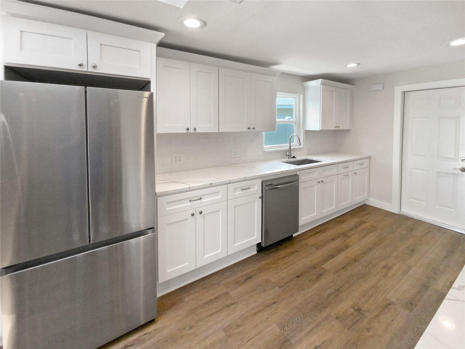 Welcome to a beautifully updated home boasting a range of tasteful upgrades. Upon entering, the elegant neutral color paint scheme creates a calming ambiance that flows throughout the entire home. The fresh interior and exterior paint enhances the property's overall appeal, providing a move-in-ready appeal. The trade marked feature in the living room is a handsome fireplace, a perfect centerpiece to create a warm and inviting atmosphere. The remodeled kitchen steals the show with an appealing accent backsplash, complementing the new appliances and amplifying the overall aesthetic of the area.Step to the primary bedroom's bathroom, where you will find double sinks, making morning routines a breeze. The entire home is decked with new flooring, depicting a blend of sophistication and comfort. Stepping outside, an inviting covered patio awaits, ideal for entertaining or simply lounging on peaceful afternoons. An added bonus to the property is the newly installed HVAC system, ensuring comfort year-round. Experience a perfect blend of style, comfort, and convenience in this exquisite property that awaits to become your haven.