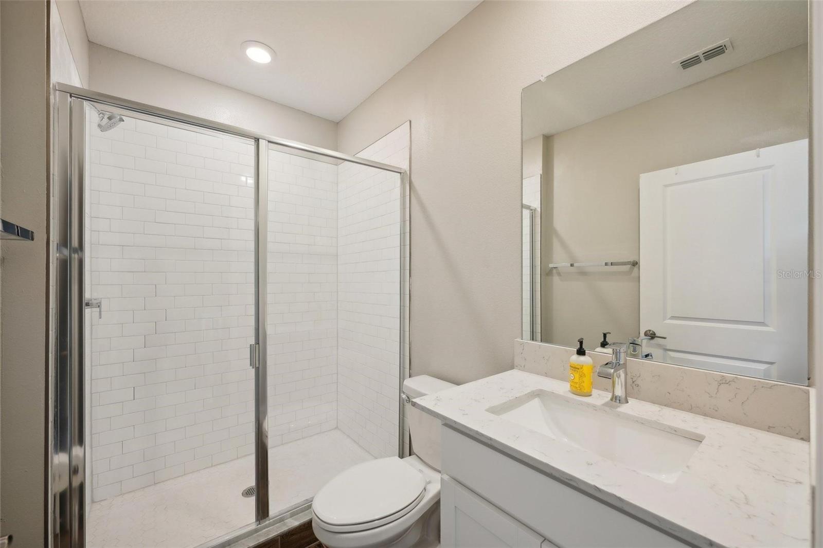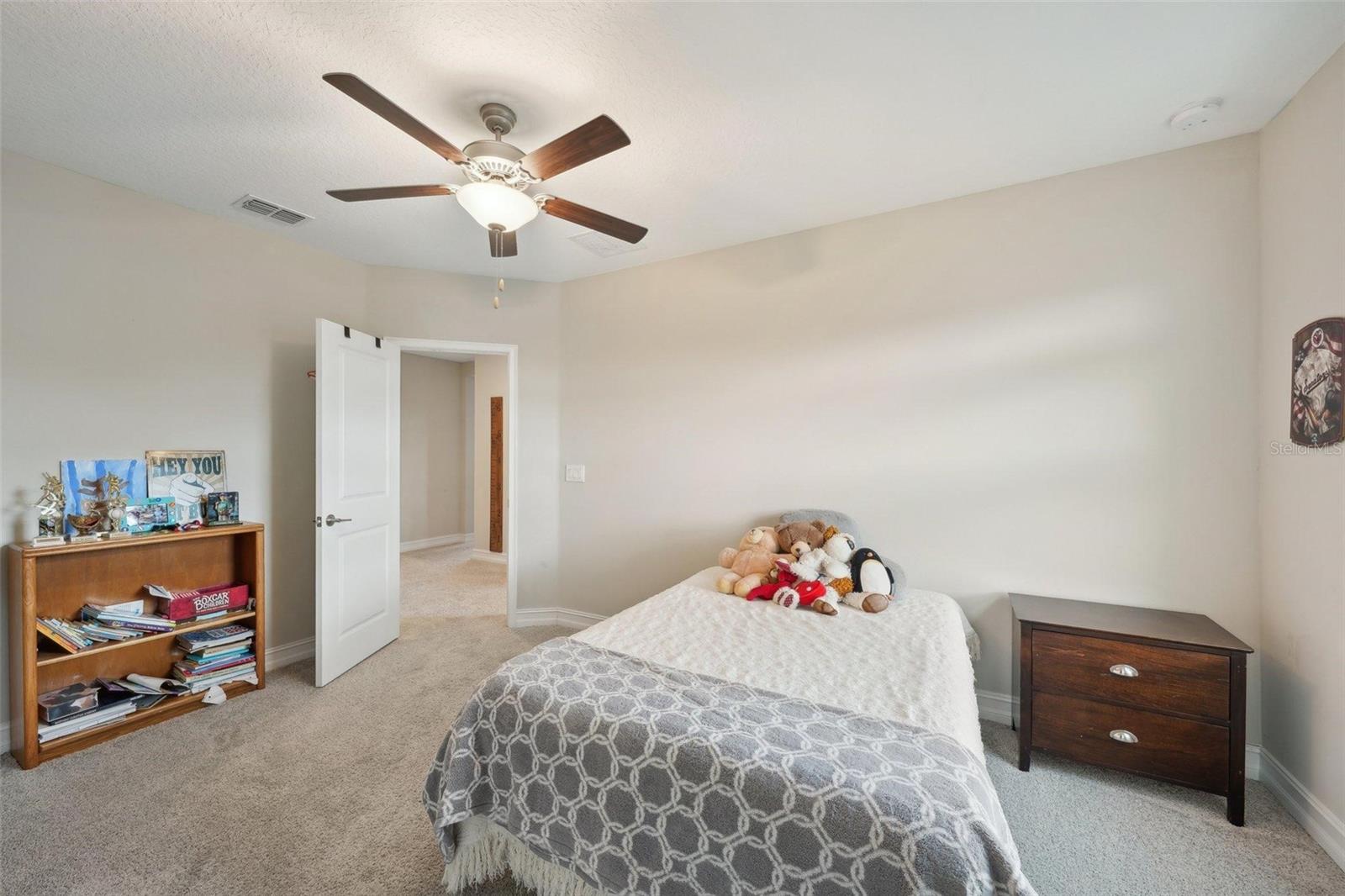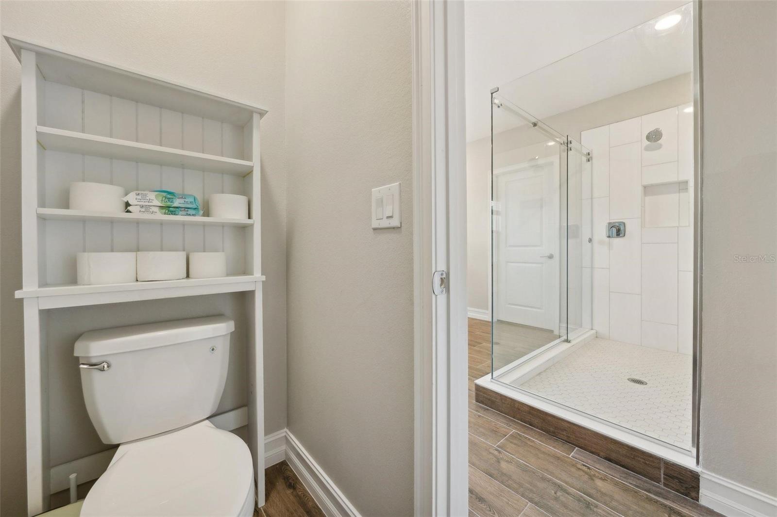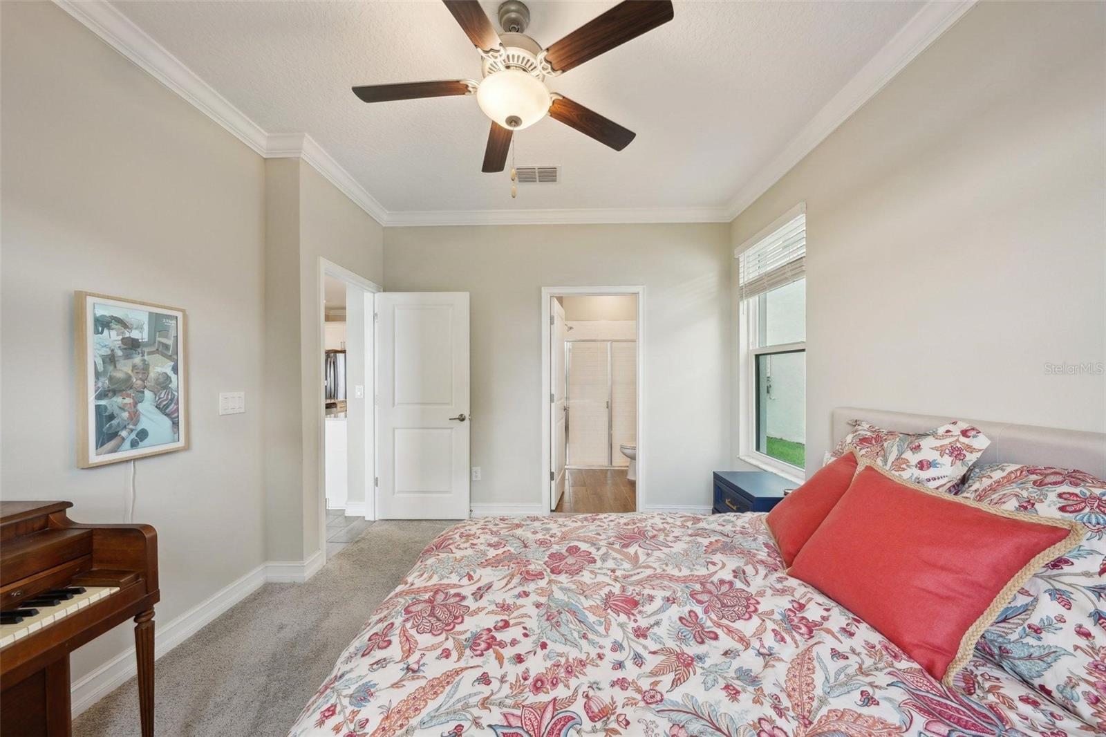 Welcome to your new beautiful spacious home in Bryant Square Estates. This 2022 home itself is stunning, and the location takes it to the next level. Situated on a premium lot with CONSERVATION and LAKE VIEWS, you can expect to see deer, otter, turtles, and bald eagles as you enjoy the SUNSET each night from the upgraded screened-in-lanai. The huge back yard allows for a pool if desired (ask for info on luxury plans with enclosure that have already been designed for this specific model). The home is within walking/golf cart distance to restaurants, grocery stores, multiple fitness facilities, and other great shopping. Not to mention, the neighborhood has its own designated walkway to the middle school and high school. Bryant Square also has 2 LARGE RESORT-LIKE POOLS and a playground with young families, food trucks, and many seasonal community events. Living at the center of Trinity, you are ideally located in the Tampa Bay area, making it easy to drive to Orlando, Tampa, St Pete, the airports, beaches, and many other popular spots. Now let's talk about the inside of this amazing home. The beautiful details of the interior begin in the foyer - vaulted ceilings, WOOD PLANK TILE throughout, and crown molding. Where the home really shows off is in the kitchen. The massive island doubles as a breakfast bar with room for four. Enjoy quartz countertops, GAS STOVE, double oven (microwave doubles as a convection oven), new Samsung fridge, and more cabinet space than you’ll know what to do with. LED lighting throughout with opportunity for pendant lights over the island and dining. Between the kitchen and garage is a separate mail/coffee area and massive WALK IN PANTRY. The living and dining rooms are right off the kitchen for an inviting, connected living space with large windows to let the outside in. Off the kitchen is a carpeted room with full bath and walk in closet, an exceptional en-suite for guests or in-laws. There is a half bath on your way upstairs. Coming to the second level, you'll walk into an incredible spacious entertaining space in the loft, complete with WET BAR, mini fridge, and quartz countertops. Upstairs you’ll also find the primary bedroom, laundry, and 3 bedrooms and 3 more baths. The primary bedroom is massive, with plenty of room for an office, home gym, or lounging area. The breathtaking bathroom is luxurious with large glass shower and SOAKING TUB, split sinks, with a separate toilet room. You can bird watch from the bathtub for the ultimate spa-like experience. The walk in closet is off the bathroom, providing nice separation from the bedroom. Walk through the laundry room to the other 3 bedrooms, one of which includes an en-suite bath and double closets (Yes, this home has THREE EN-SUITE BEDROOMS). It’s so hard to find a 3 CAR GARAGE with a large driveway and this house has it! HURRICANE IMPACT RESISTANT WINDOWS! After Helene AND Milton, the only damage was a slightly bent For-Sale sign out front. Low HOA. This smart home, has ring doorbell, app/voice control, UNLIMITED HOT WATER with the tankless GAS water heater and is turn key!