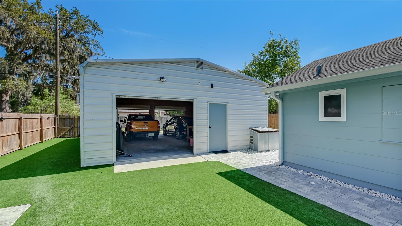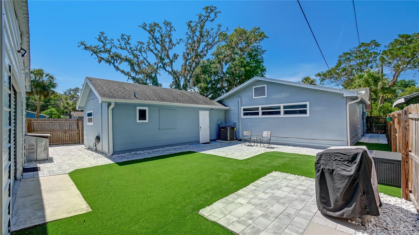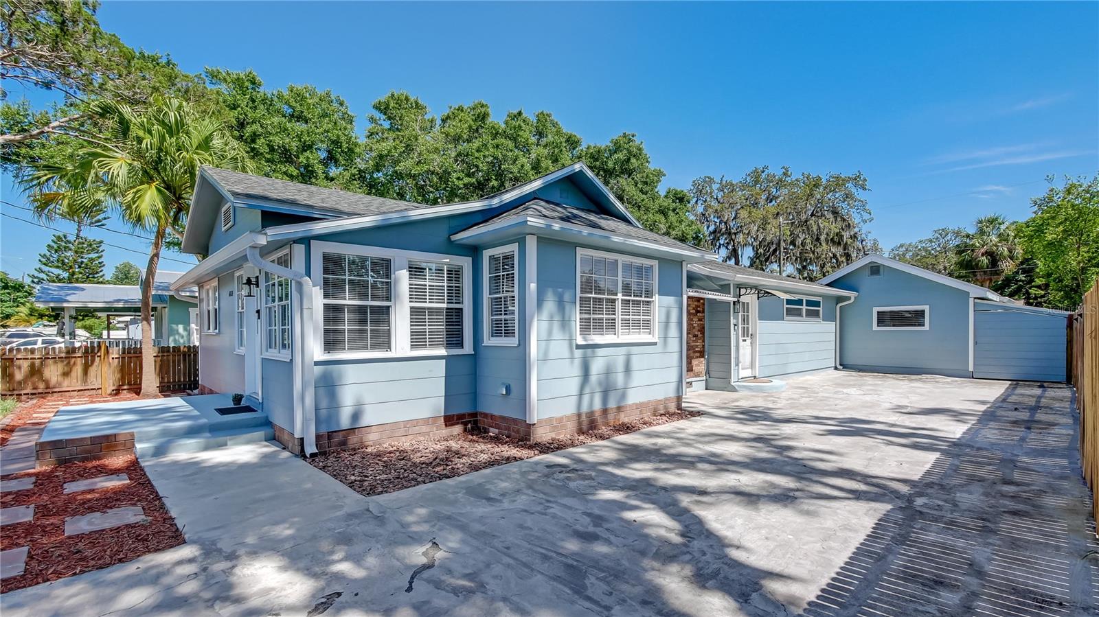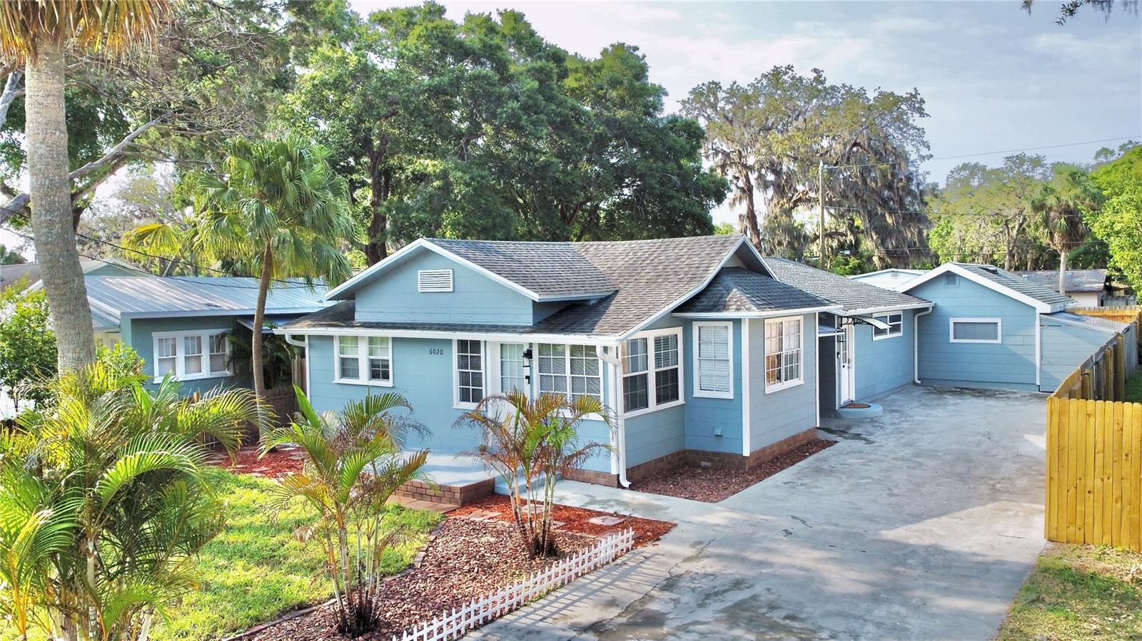 Unique Downtown New Port Richey Gem with Oversized Garage and Endless Possibilities Welcome to this spectacular and fully renovated 3-bedroom, 2-bathroom home located in the heart of Downtown New Port Richey. With 1,700 square feet of updated living space and a 750 sq. ft. climate-controlled metal garage, this property offers the perfect blend of charm, functionality, and versatility. The home fronts Illinois Avenue and features convenient alley access at the rear, providing entry to the expansive garage and additional gated parking. The garage includes three roll-up doors—one facing the home and two opening to the alley—making it ideal for car enthusiasts, hobbyists, or anyone needing serious workspace. Behind the fenced area, there’s ample room to park RVs, boats, trailers, and extra vehicles. Inside, you'll find a beautifully remodeled interior with brand-new flooring, a spacious split-bedroom layout, and a stunning kitchen with solid wood cabinetry and stainless steel appliances. The home also includes an indoor laundry room, oversized living area, formal dining space, and a generously sized primary suite with sliding barn door, updated en-suite bath, solid-surface vanity, contemporary tile shower, and built-in cabinetry. The oversized driveway easily accommodates up to six vehicles and leads to a covered nook—perfect for motorcycles, bikes, or golf cart storage. The fully fenced backyard features a peaceful sitting area with stone pathways, and extra storage space on both sides of the garage. The garage is heated and cooled and includes a bonus room that can serve as an office or workshop. With its versatility and size, this property is a rare find for creatives, collectors, or anyone needing extra space to live, work, and play. Located in a golf cart-friendly community just minutes from the vibrant heart of Downtown New Port Richey—less than a mile to Sims Park Boat Ramp, Riverfront Park & Riverwalk, and the Recreation & Aquatic Center. Enjoy year-round events, music in the park, holiday and boat parades, and a vibrant dining and entertainment scene all within walking or biking distance.