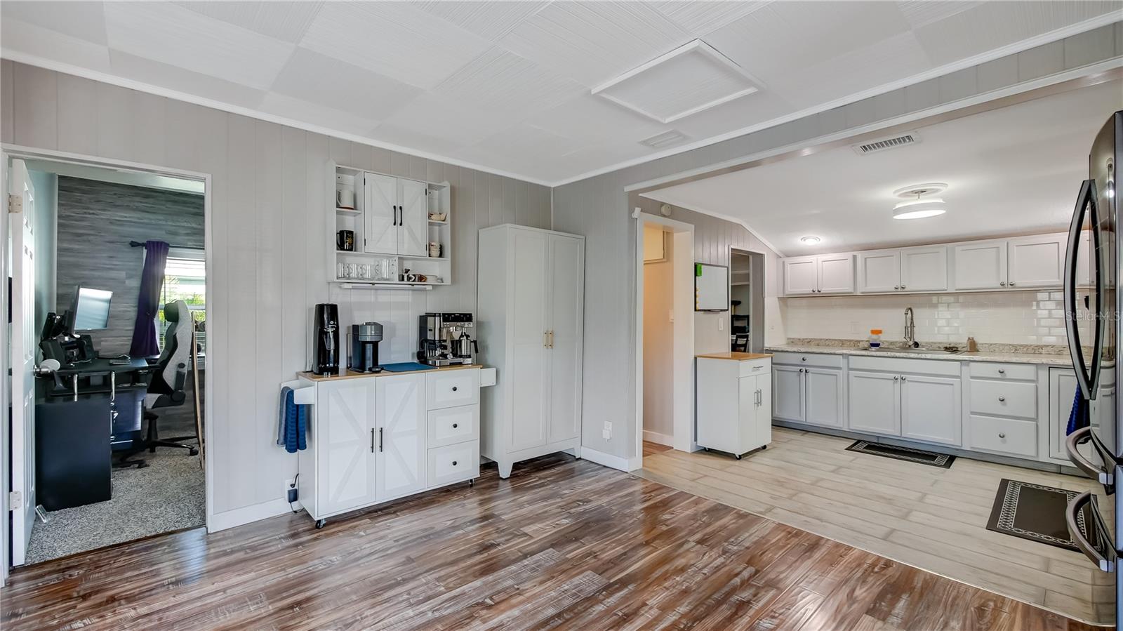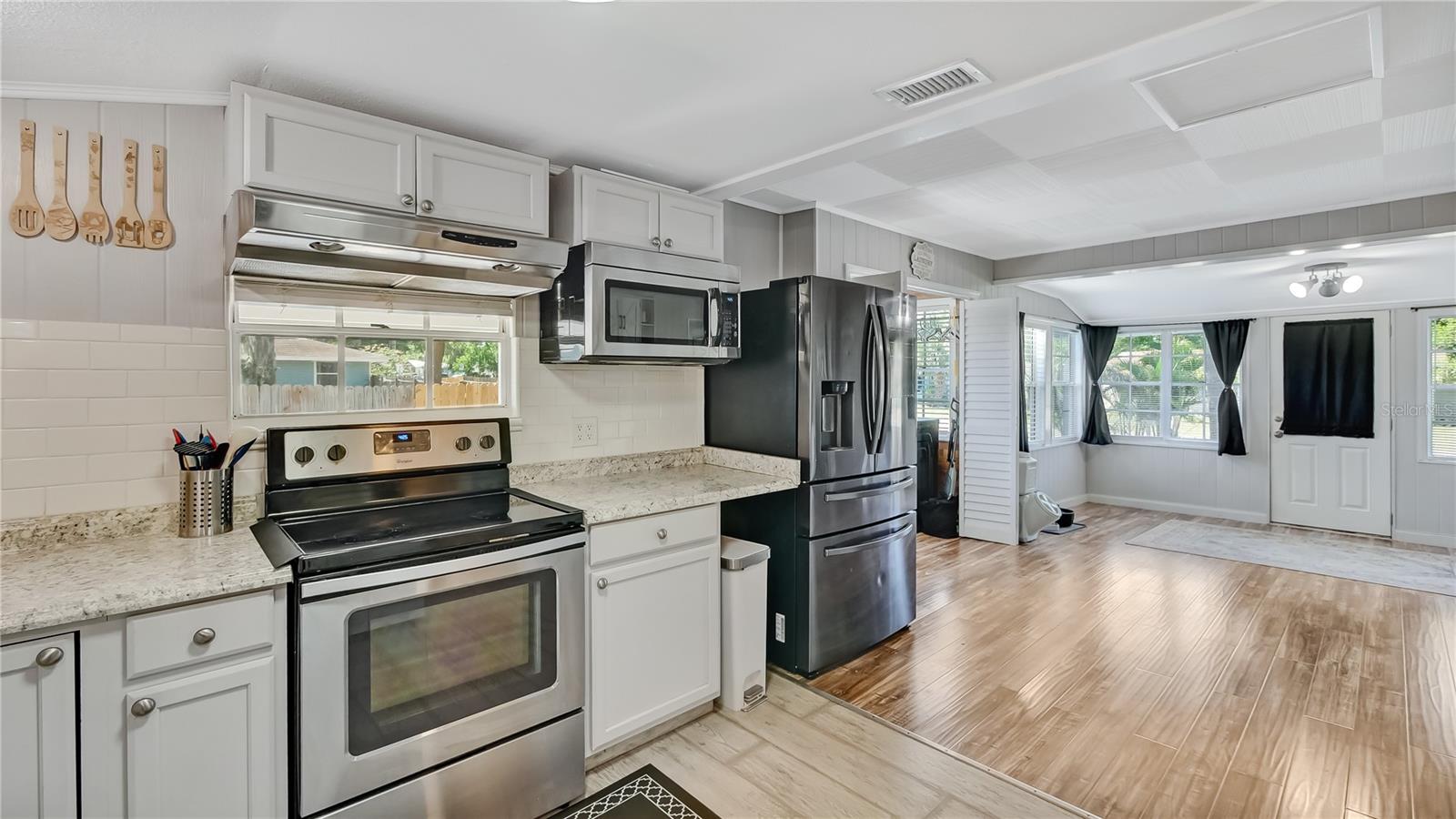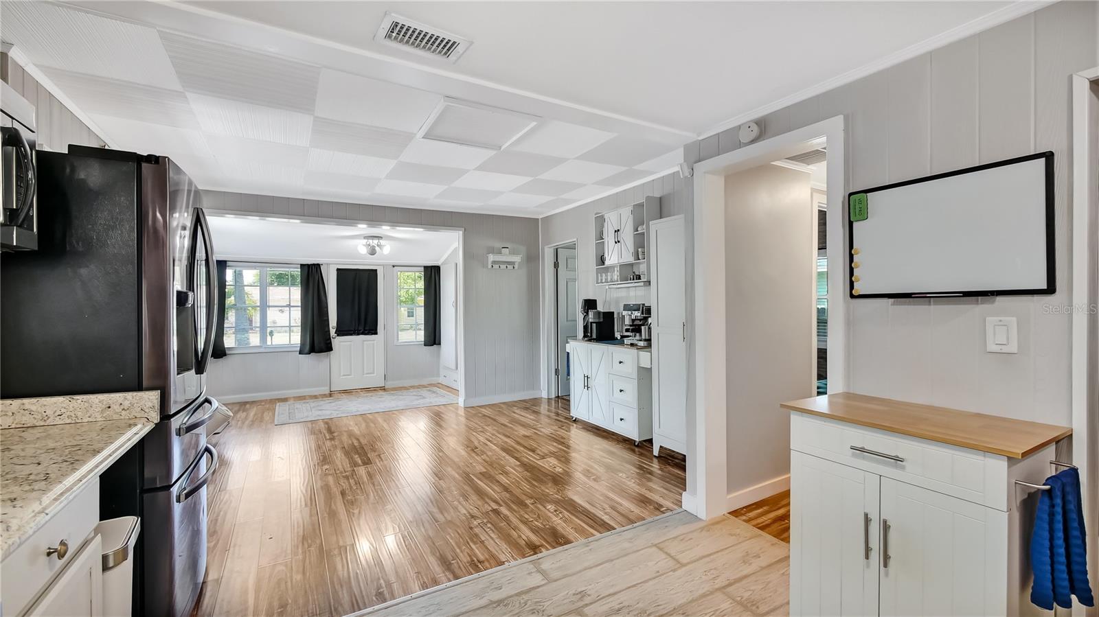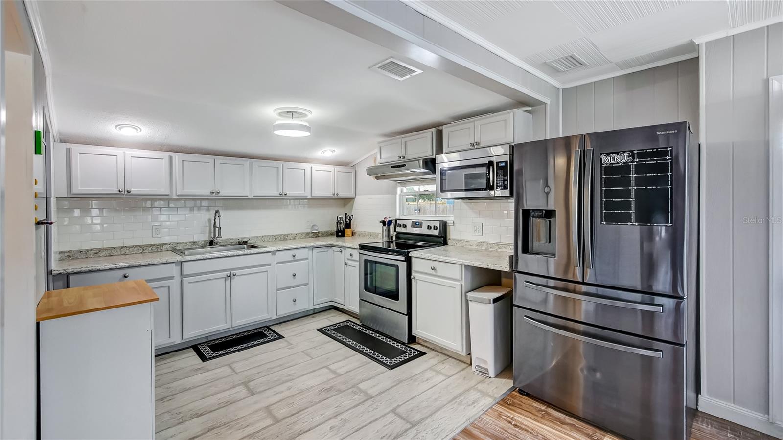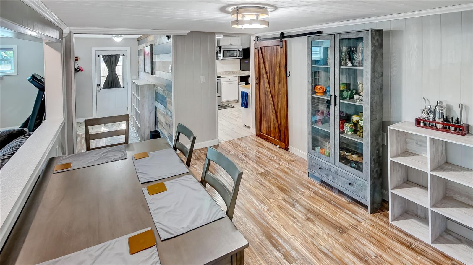 Unique Downtown New Port Richey Gem with Oversized Garage and Endless Possibilities Welcome to this spectacular and fully renovated 3-bedroom, 2-bathroom home located in the heart of Downtown New Port Richey. With 1,700 square feet of updated living space and a 750 sq. ft. climate-controlled metal garage, this property offers the perfect blend of charm, functionality, and versatility. The home fronts Illinois Avenue and features convenient alley access at the rear, providing entry to the expansive garage and additional gated parking. The garage includes three roll-up doors—one facing the home and two opening to the alley—making it ideal for car enthusiasts, hobbyists, or anyone needing serious workspace. Behind the fenced area, there’s ample room to park RVs, boats, trailers, and extra vehicles. Inside, you'll find a beautifully remodeled interior with brand-new flooring, a spacious split-bedroom layout, and a stunning kitchen with solid wood cabinetry and stainless steel appliances. The home also includes an indoor laundry room, oversized living area, formal dining space, and a generously sized primary suite with sliding barn door, updated en-suite bath, solid-surface vanity, contemporary tile shower, and built-in cabinetry. The oversized driveway easily accommodates up to six vehicles and leads to a covered nook—perfect for motorcycles, bikes, or golf cart storage. The fully fenced backyard features a peaceful sitting area with stone pathways, and extra storage space on both sides of the garage. The garage is heated and cooled and includes a bonus room that can serve as an office or workshop. With its versatility and size, this property is a rare find for creatives, collectors, or anyone needing extra space to live, work, and play. Located in a golf cart-friendly community just minutes from the vibrant heart of Downtown New Port Richey—less than a mile to Sims Park Boat Ramp, Riverfront Park & Riverwalk, and the Recreation & Aquatic Center. Enjoy year-round events, music in the park, holiday and boat parades, and a vibrant dining and entertainment scene all within walking or biking distance.