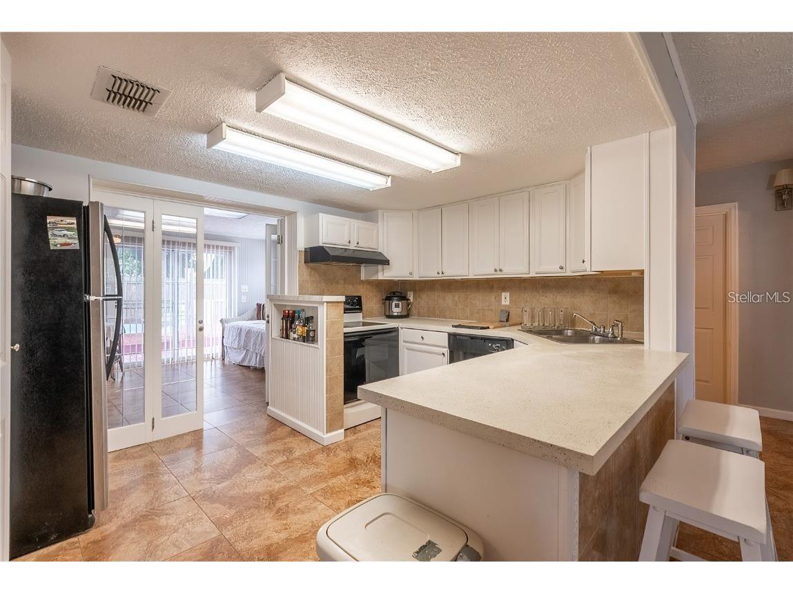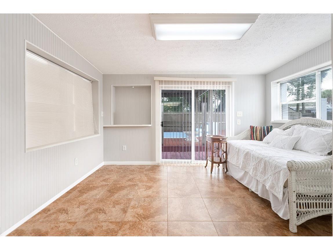 NO FLOOD INSURANCE REQUIRED!!! Stylish and solidly built, this 3-bedroom, 2-bath home offers 1,305 sq ft of thoughtfully designed living space. Constructed with 9" concrete walls, wrapped in Tyvek, and finished with maintenance-free vinyl siding, this home is as durable as it is attractive. The roof—built with all-plywood decking and dimensional shingles—is only 4.5 years old. Enjoy Florida living with a private concrete pool featuring a new pump and skimmer, a sprawling wood deck, and a fully fenced backyard ideal for entertaining. Inside, you'll find cathedral ceilings, recessed lighting, new plush carpeting in two bedrooms, and elegant ceramic tile throughout the rest of the home. The kitchen features warm oak cabinetry, a raised dining room, and an oversized living area filled with natural light. A detached utility building with electric and shelving adds versatility. Located just 1 mile from charming downtown New Port Richey—an area quickly emerging as the next Dunedin.
