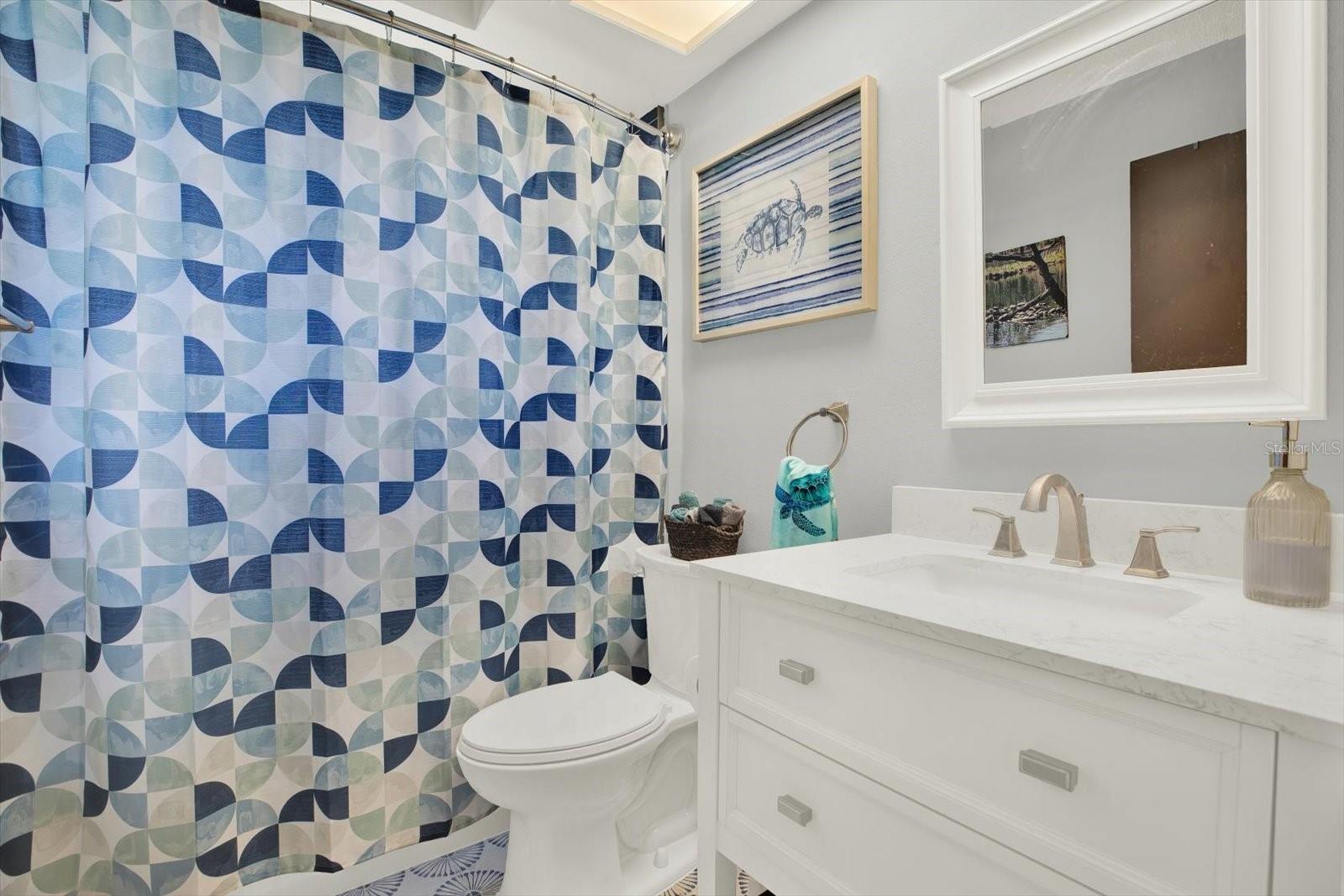 Welcome to this beautifully renovated 2-bedroom, 2-bathroom home in a sought-after deed-restricted, 55+ community in New Port Richey! Every inch of this home has been updated in 2022, ensuring modern comfort and peace of mind. NEW ROOF: 2022 with all new plywood - Electrical Panel: 2022 - A/C: 2022 - Flooring: 2022 - Both bathrooms totally improved: 2022 - Interior/Exterior paint: 2022 - New lighting and hardware throughout.New metal door and exterior lights. Your eyes will follow the same luxury sterling oak waterproof vinyl plank floors throughout the dwelling. Fall in LOVE with the breathtaking, modern kitchen with all new features and hardware. Step inside and fall in love with the stunning modern kitchen, featuring brand-new soft-close cabinets & pantry, quartz countertops, and a suite of top-rated 2022 stainless steel appliances, including a Samsung refrigerator, a smart stove with a storage/warmer drawer, a remote-controlled Thor range hood, a dishwasher, and a garbage disposal. The bright and spacious back room offers endless possibilities—perfect as a home office, den, craft room, or relaxing retreat. Golf cart or walk to the clubhouse, just a few blocks away, where you'll enjoy resort-style amenities, including: A beautiful lakefront clubhouse, Heated pool & spa,Tennis & pickleball courts, Shuffleboard & billiards. This move-in-ready gem won’t last long—schedule your showing today and experience the best of 55+ living in New Port Richey!