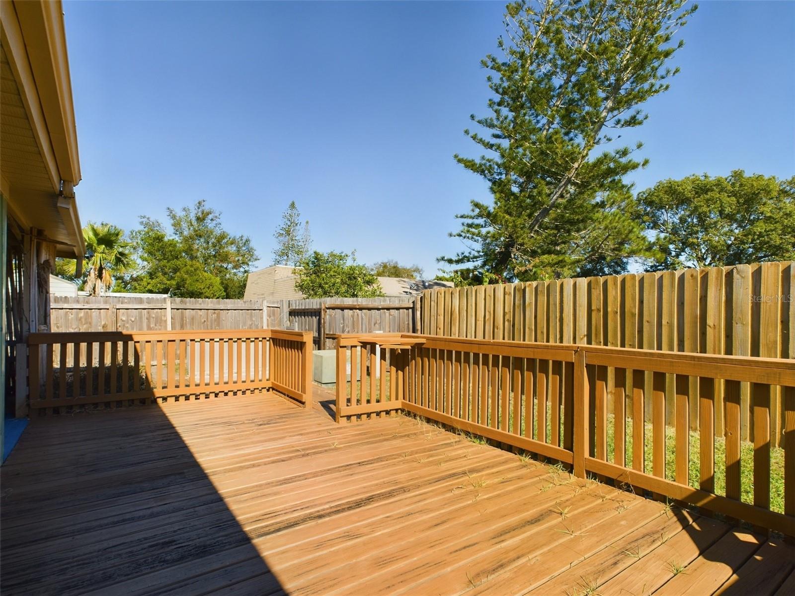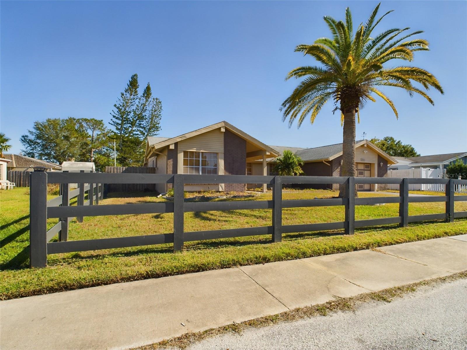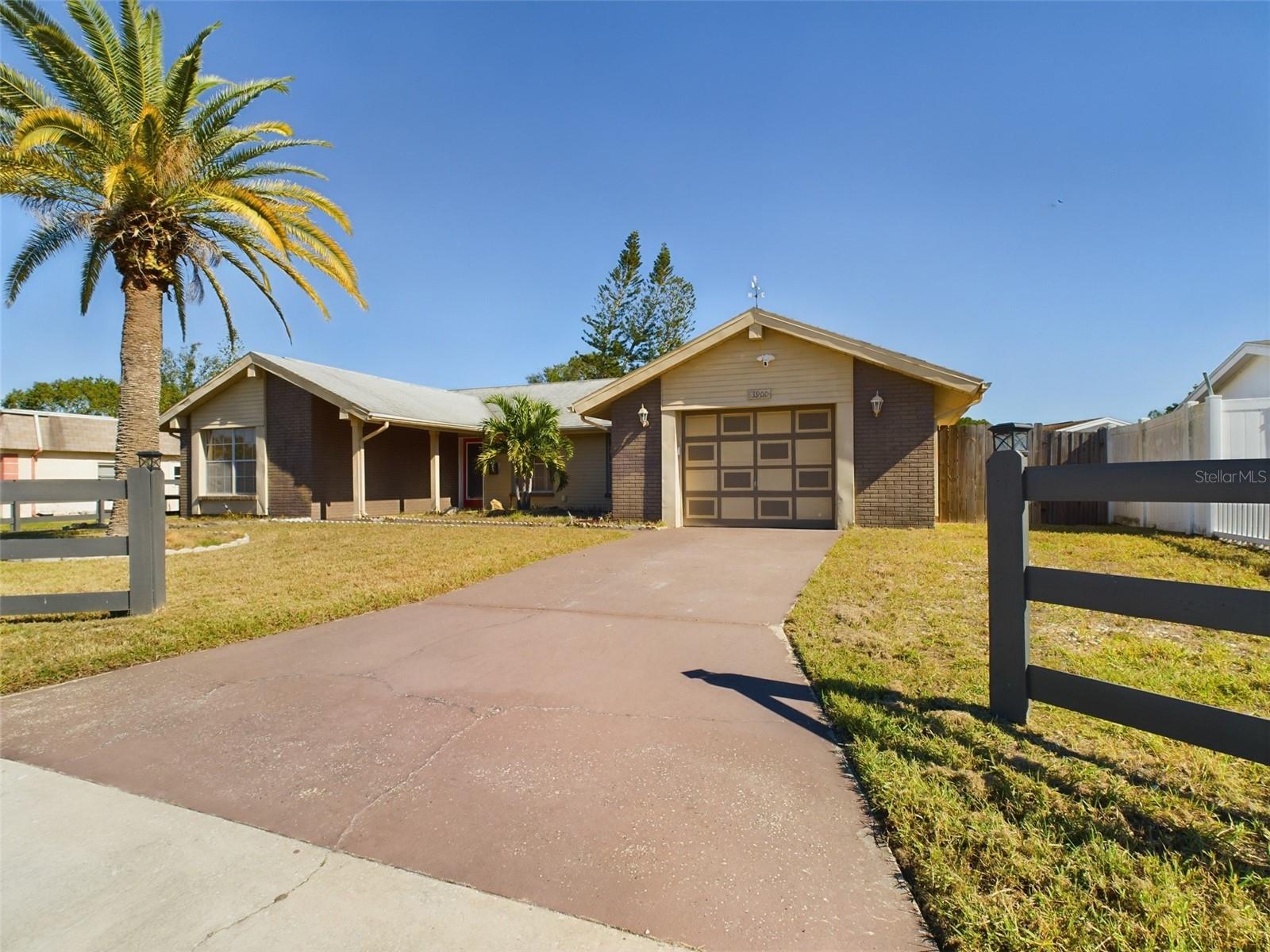 NO HOA! Discover the charm of this New Port Richey gem! Featuring two bedrooms and two and a half bathrooms, this home has everything you need for comfortable living. The main living room greets you upon entering, offering a versatile space for relaxation or entertaining. The kitchen, centrally located, is perfect for cooking and gathering with a gorgeous backsplash, ample light cabinets for storage, and sleek stainless steel appliances. A second living area with a cozy wood-burning fireplace and stone accent wall is just off the kitchen, creating the perfect spot for family time during cooler Florida evenings. The spacious primary suite easily fits a king-sized bed and comes with a private bath and walk-in closet. Step through the French doors from the dining room into the covered, screened-in Florida room, or enjoy the outdoor space with a jacuzzi on the covered deck. The fenced backyard is a true retreat with a large deck and a pavered grilling area. This home is located near Pasco Palms Reserve State Park, shopping, and major highways. Seller financing available. 3D tour here: https://tour.giraffe360.com/faee4e99f8664791b8fbd7771093b22d/