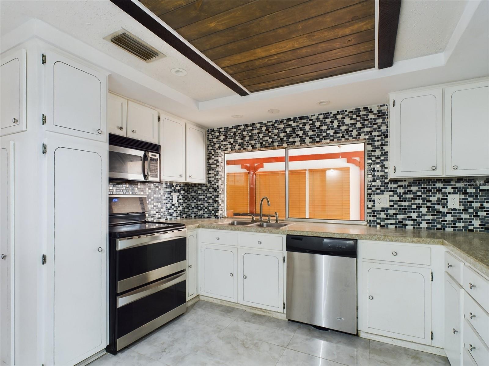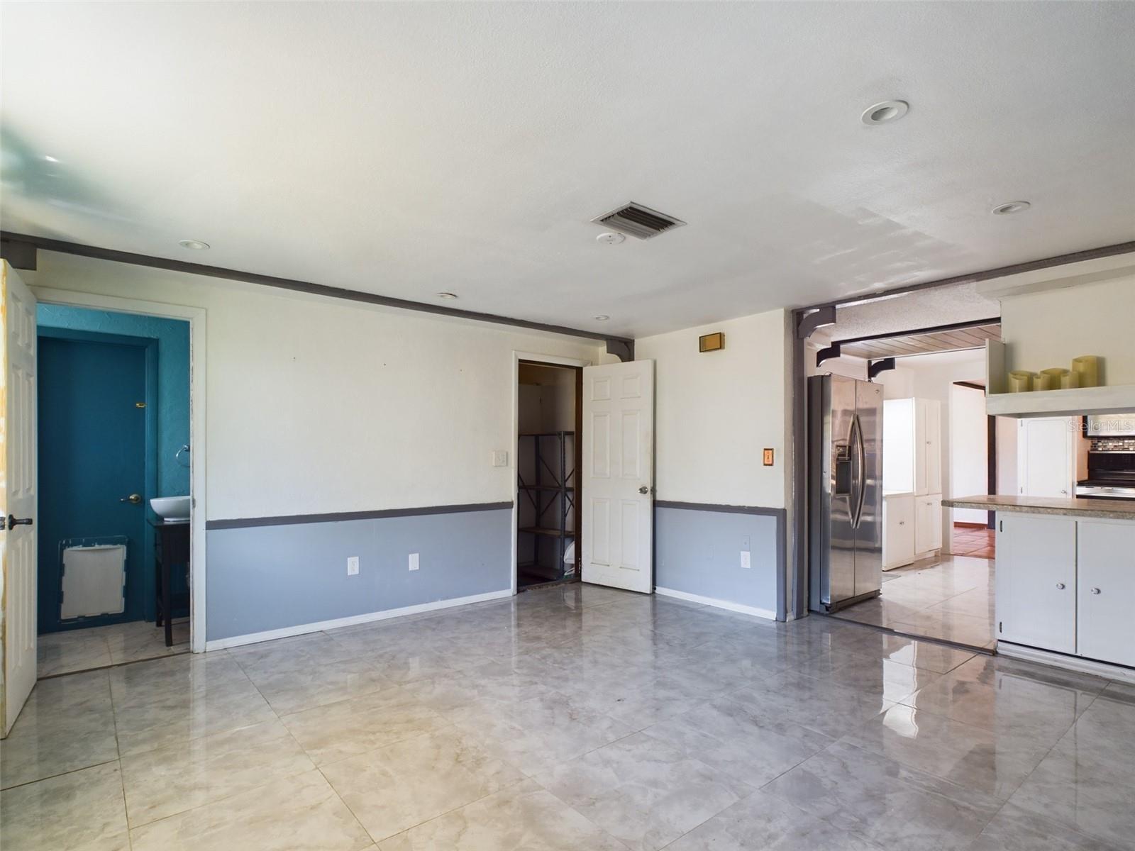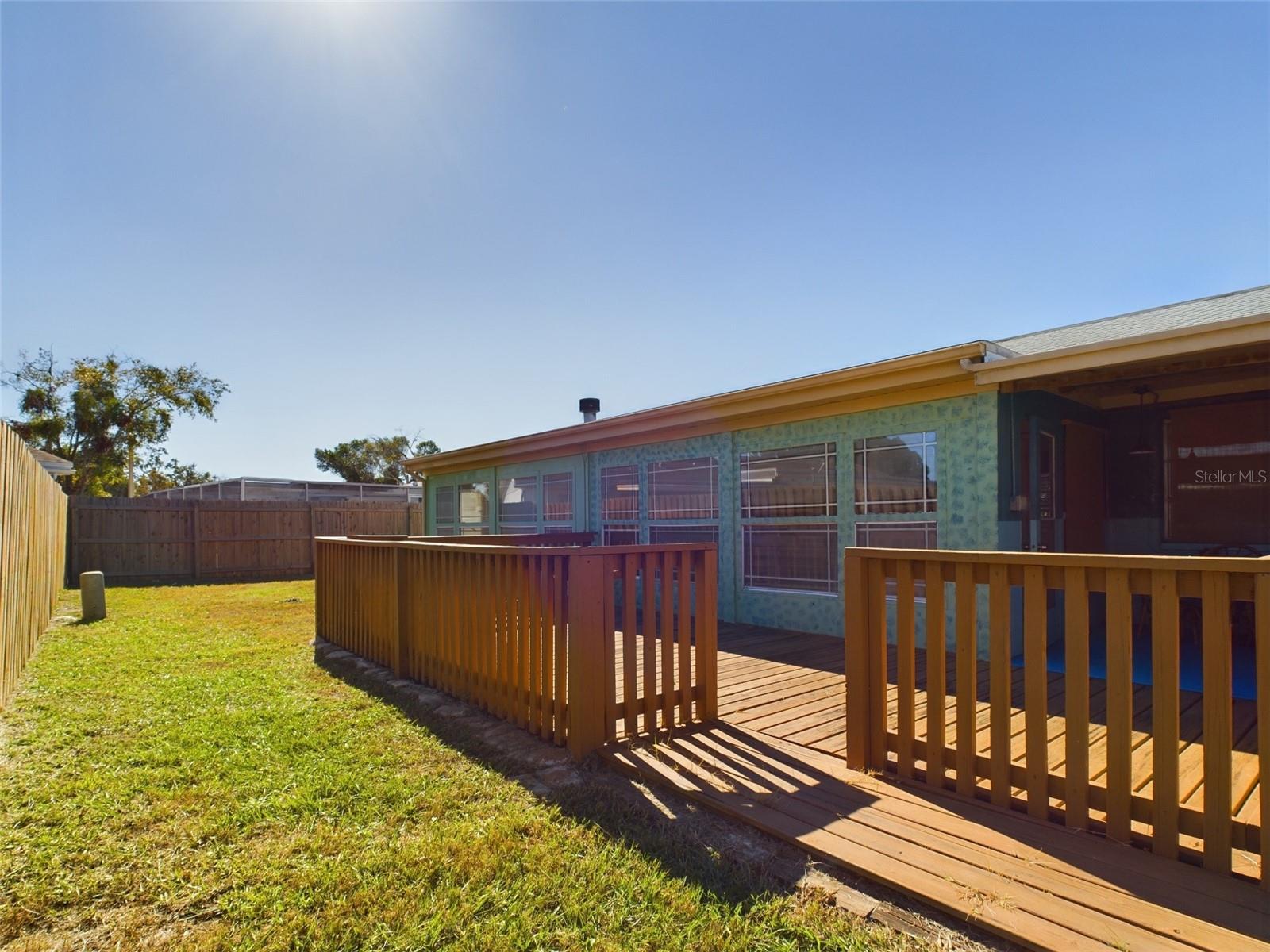 NO HOA! Discover the charm of this New Port Richey gem! Featuring two bedrooms and two and a half bathrooms, this home has everything you need for comfortable living. The main living room greets you upon entering, offering a versatile space for relaxation or entertaining. The kitchen, centrally located, is perfect for cooking and gathering with a gorgeous backsplash, ample light cabinets for storage, and sleek stainless steel appliances. A second living area with a cozy wood-burning fireplace and stone accent wall is just off the kitchen, creating the perfect spot for family time during cooler Florida evenings. The spacious primary suite easily fits a king-sized bed and comes with a private bath and walk-in closet. Step through the French doors from the dining room into the covered, screened-in Florida room, or enjoy the outdoor space with a jacuzzi on the covered deck. The fenced backyard is a true retreat with a large deck and a pavered grilling area. This home is located near Pasco Palms Reserve State Park, shopping, and major highways. Seller financing available. 3D tour here: https://tour.giraffe360.com/faee4e99f8664791b8fbd7771093b22d/