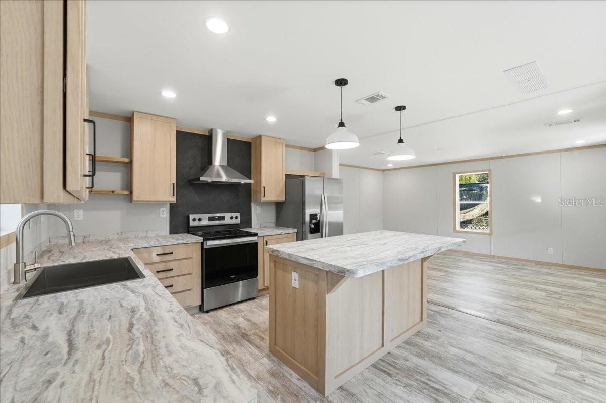 Your dream home awaits with this BRAND-NEW manufactured home, offering 3 bedrooms, 2 bathrooms, with an open floor plan ideal for modern living. From the moment you arrive, you'll be charmed by the spacious front porch, a perfect spot to enjoy your morning coffee! Step inside and immediately appreciate the high-quality finishes and attention to detail, from the 4-panel board and batten accent wall or the luxury linoleum flooring throughout, to the open-concept layout that effortlessly connects the living, dining, and kitchen areas-ideal for entertaining. The chef-inspired kitchen is a true highlight, featuring brand-new stainless steel appliances, a sleek chimney range hood, stainless steel sink with a gooseneck faucet, 42" shaker-style cabinets, floating wooden shelves, and canopy-style pendant lighting hanging over the center with a breakfast bar. The primary bedroom offers a serene retreat, complete with a large walk-in closet and a luxurious en-suite bathroom featuring a 60" shower, linen closet, and dual sink vanity with cubby holes and a bank of drawers-perfect for keeping all your essentials organized. The two additional bedrooms provide comfortable space for family or guests, while the second full bathroom includes a linen closet and a tub/shower combo, perfect for letting guests soak the day away! Additional upgrades include drywall, a dedicated laundry room for added convenience, LED recessed lighting, Energy Star Certified w/ R-13 Wall; R-22 Floor, R-38 Roof, cobra ridge venting system with algae-resistant shingles, and craftsman-style trim. Located in the Sunshine Park neighborhood of New Port Richey, FL you'll have easy access to a variety of local amenities, including shopping centers and restaurants. This home is at a prime location with no HOA and no lot rent! Don't miss out on this incredible opportunity to make this brand-new home yours! Schedule your viewing today and experience the best of Florida living!