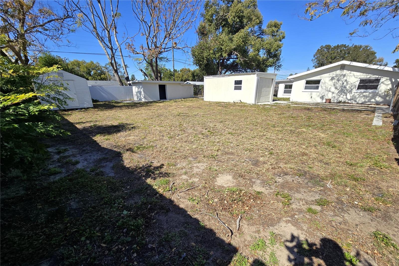 Fenced DOUBLE LOT. Room to store your cars, RV, AND boat, all inside the huge, fenced backyard. Multiple sheds for storage. There is no electricity running to the back sheds, despite the outlets and air conditioner you'll find back there. If you've got a big family, there's a fourth room in the main house that's functionally a bedroom but missing a closet. Roof 2019, AC 2022, Water Heater 2019.