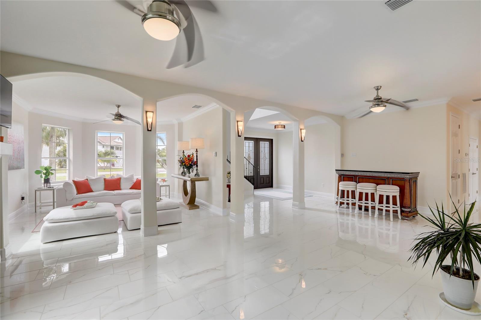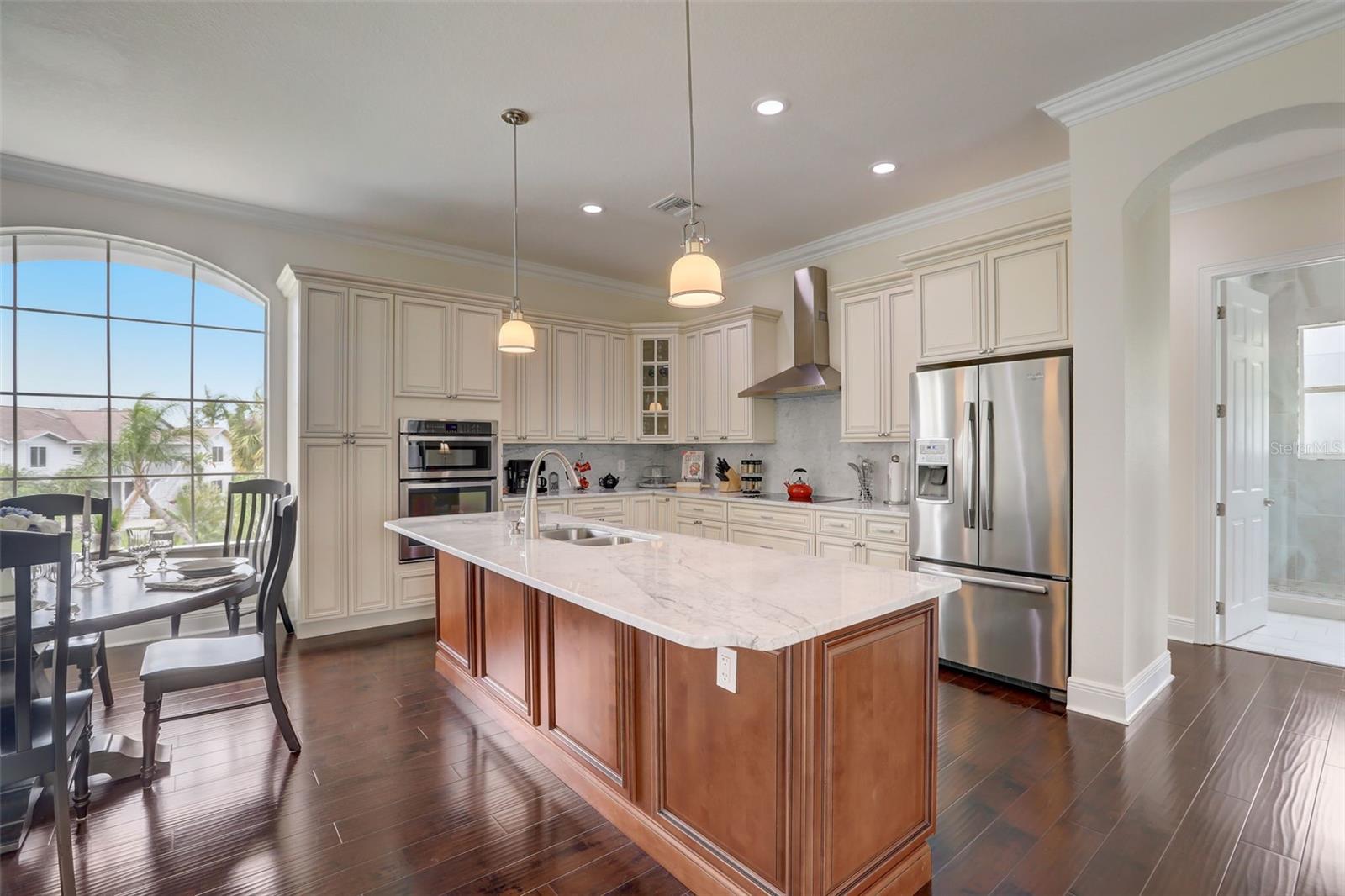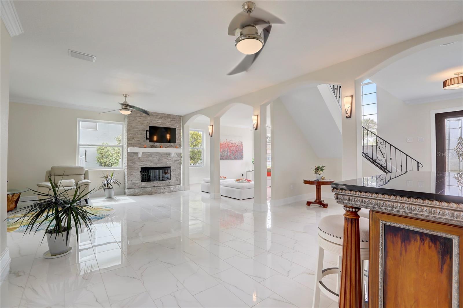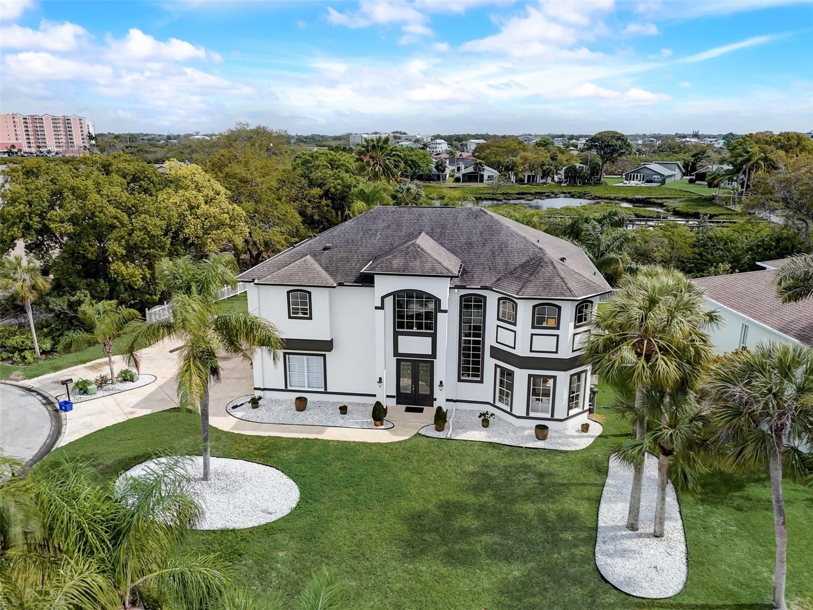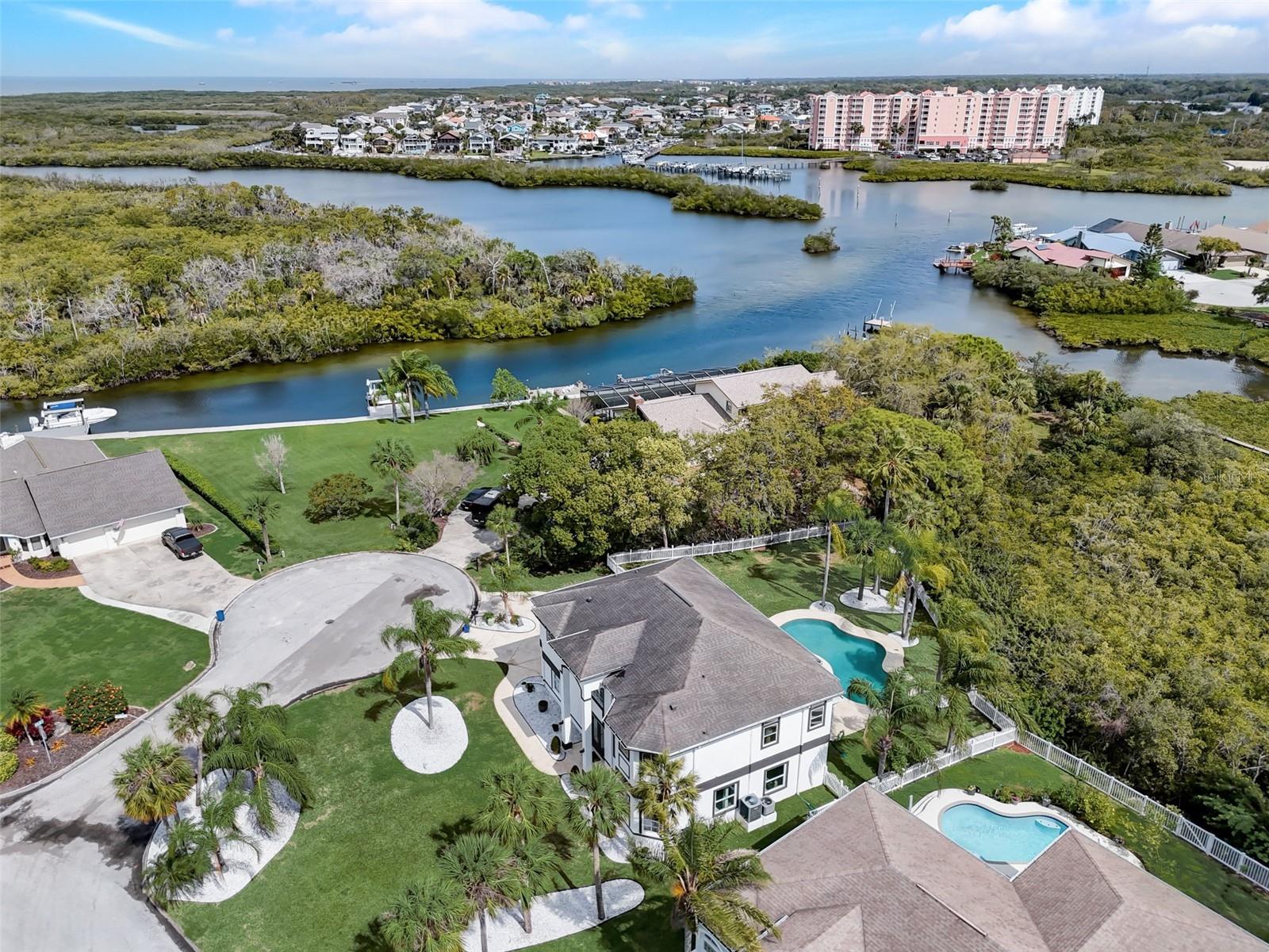 New price. This stunning home offers an expansive bonus space, over 4,000 total sqft. A must see! Nestled on over a third of an acre. Location is key! This Gulf Harbors residence boasts a serene, breezy, & peaceful atmosphere. Extra large driveway in a cul-de-sac. Updated manicured landscape and custom outdoor lighting set the tone for the elegance within. Step inside to discover a meticulous design. The large downstairs area provides newer large porcelain tile flooring making it an inviting atmosphere that seamlessly guides you through the custom French Doors that leads to the spacious screened lanai overlooking the large heated pool & backyard. The heart of this home lies on the second floor, where a wrought iron staircase leads to a beautifully appointed kitchen, family room, and dining area. The kitchen is a chef's dream, featuring custom cabinets with soft-close doors and drawers, marble counters, and backsplash. Stainless steel appliances complete this gourmet space with hood vent. Escape to the master bedroom retreat, boasting two large walk-in closets and a spa-like master bath. Pamper yourself in the double walk-through shower or relax in the free-standing tub. Double vanities add a touch of luxury to this private oasis. Entertain effortlessly in your backyard paradise, complete with a salt-water heated pool, custom landscape lighting, and LED pool lighting. Enjoy access to an optional private beach and yacht club, featuring tennis courts, a pool, a full bar, and a restaurant. Launch your boat conveniently from the private community boat ramp. This home is not just a residence; it's a lifestyle. Live moments away from the Gulf of Mexico beaches and relish in the exclusivity of the Gulf Harbors community. Don't miss the opportunity to make this dream home yours! Schedule your private showing today and experience the epitome of Florida living. Bedroom Closet Type: Walk-in Closet (Primary Bedroom).