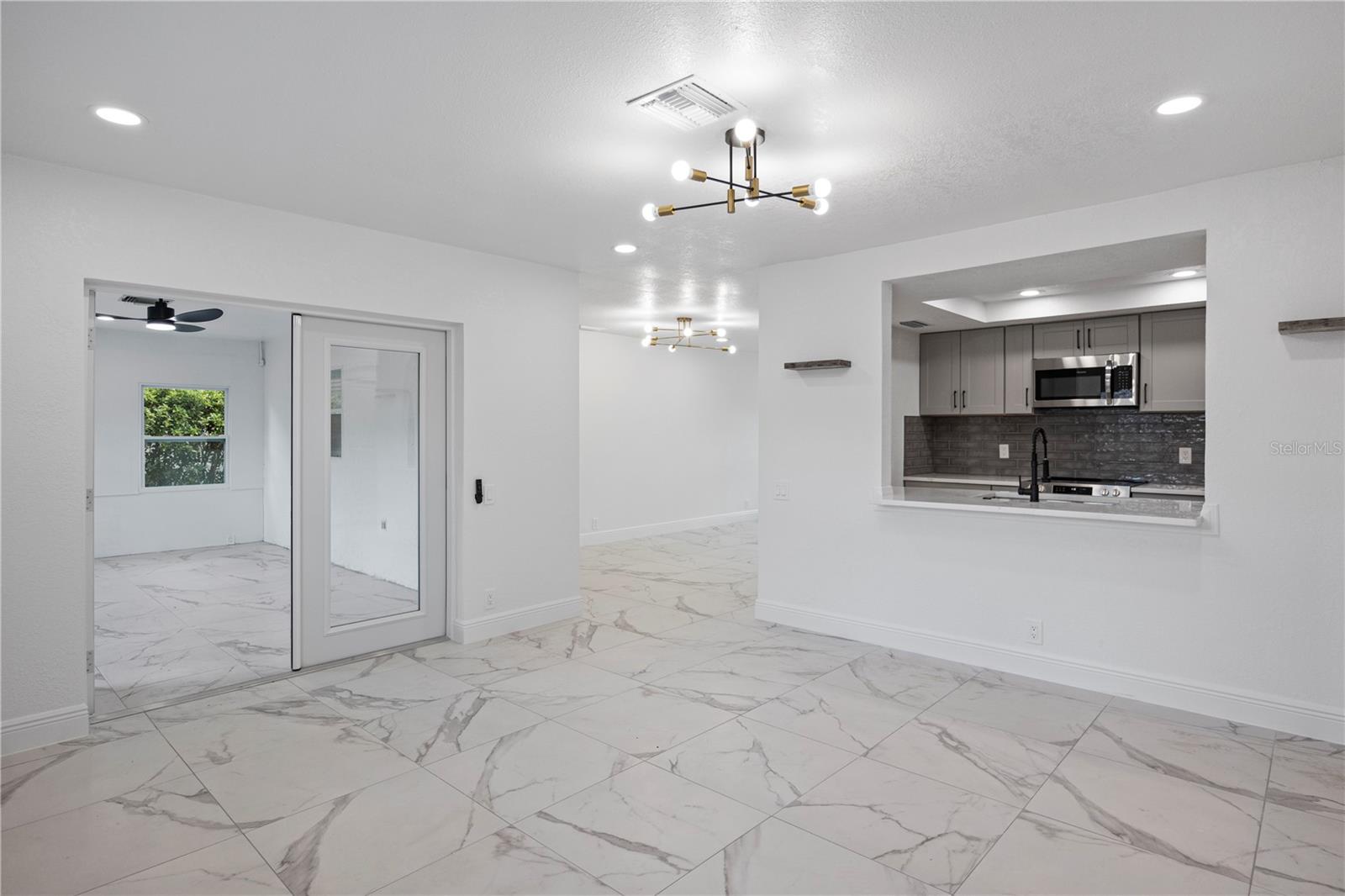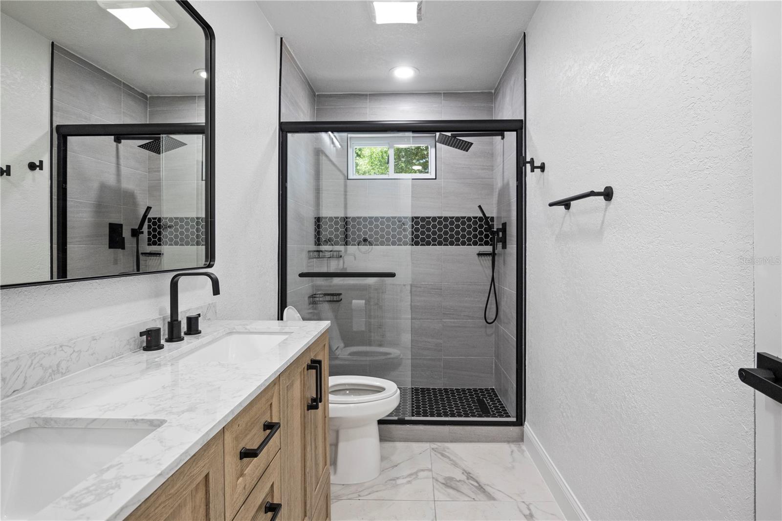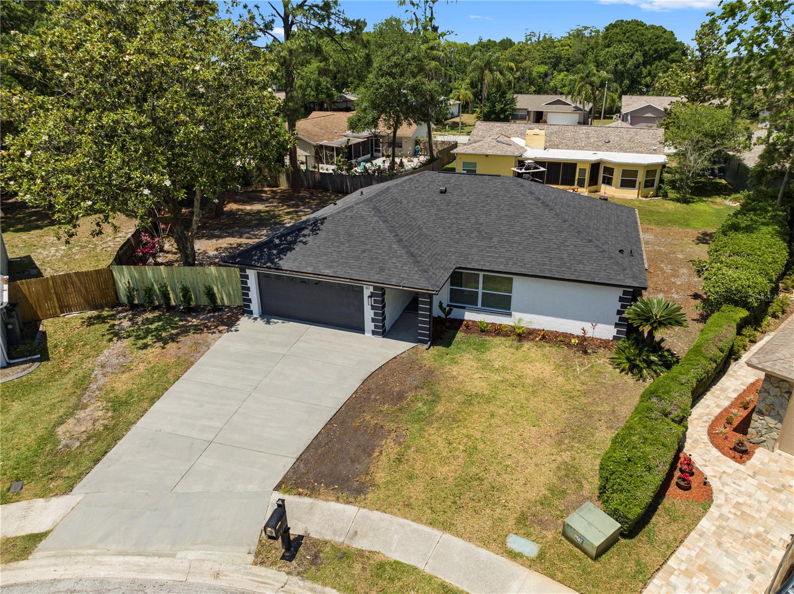 Welcome to this amazing home located in the sought after Fairway Springs in the Trinity/Newport Richey area. This beautiful home is on a large lot in a cul-de-sac. This home has been tastefully remodeled throughout. New Roof (2024), New driveway/walkway, New Windows and window treatments, All New interior and exterior doors. Trimmed and cut large trees that were overcrowding the backyard. Brand new AC system (2024) and AC Ducts. As you walk through the house, you will notice the freshly textured, and painted walls and ceiling, updated light fixtures, outlets, and switches. Beautiful 24x24 porcelain tile floor and 5” baseboards. The bathrooms are a dream, beautiful vanities, new plumbing, new toilets, glass shower doors, and beautiful fixtures. The open concept kitchen features brand new cabinets, luxurious quartz countertop, large undermount sink, garbage disposal, brand new appliances, and updated fixtures. Custom built closets, brand new doors on all closets, and pantry. All new electric brakers, updated electric wiring, and new tankless water heater. The Florida room has AC. The garage has updated lighting, and freshly epoxied floors. The laundry room has tiled floor, and it has updated plumbing.