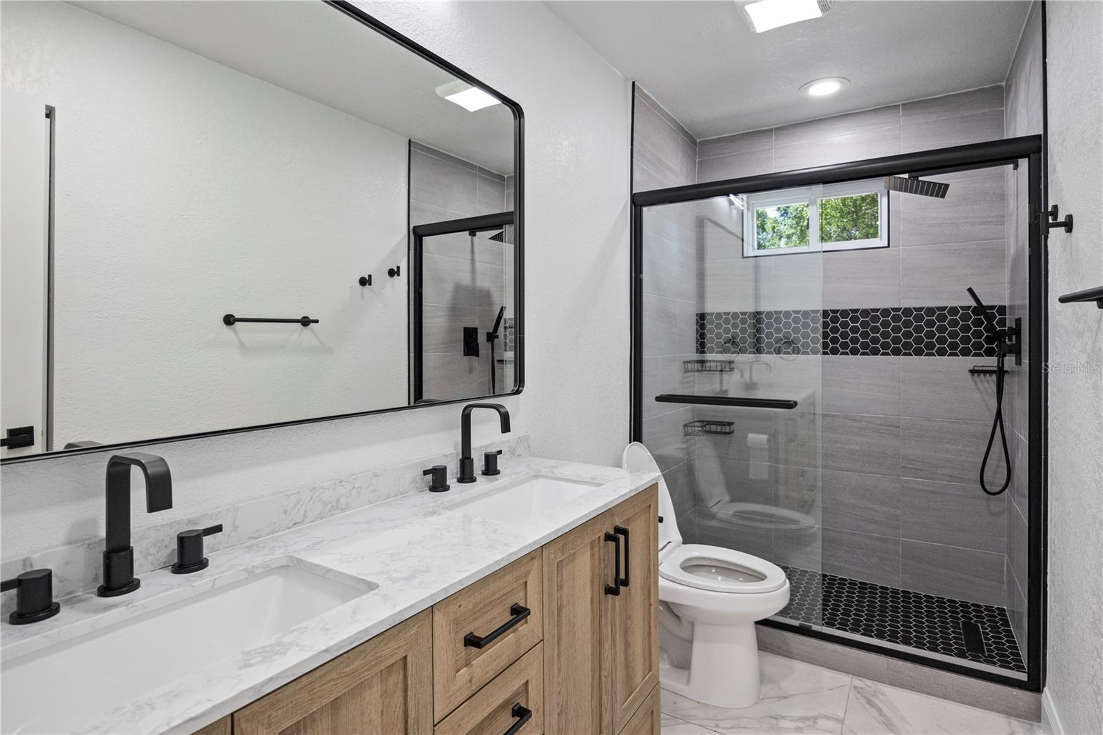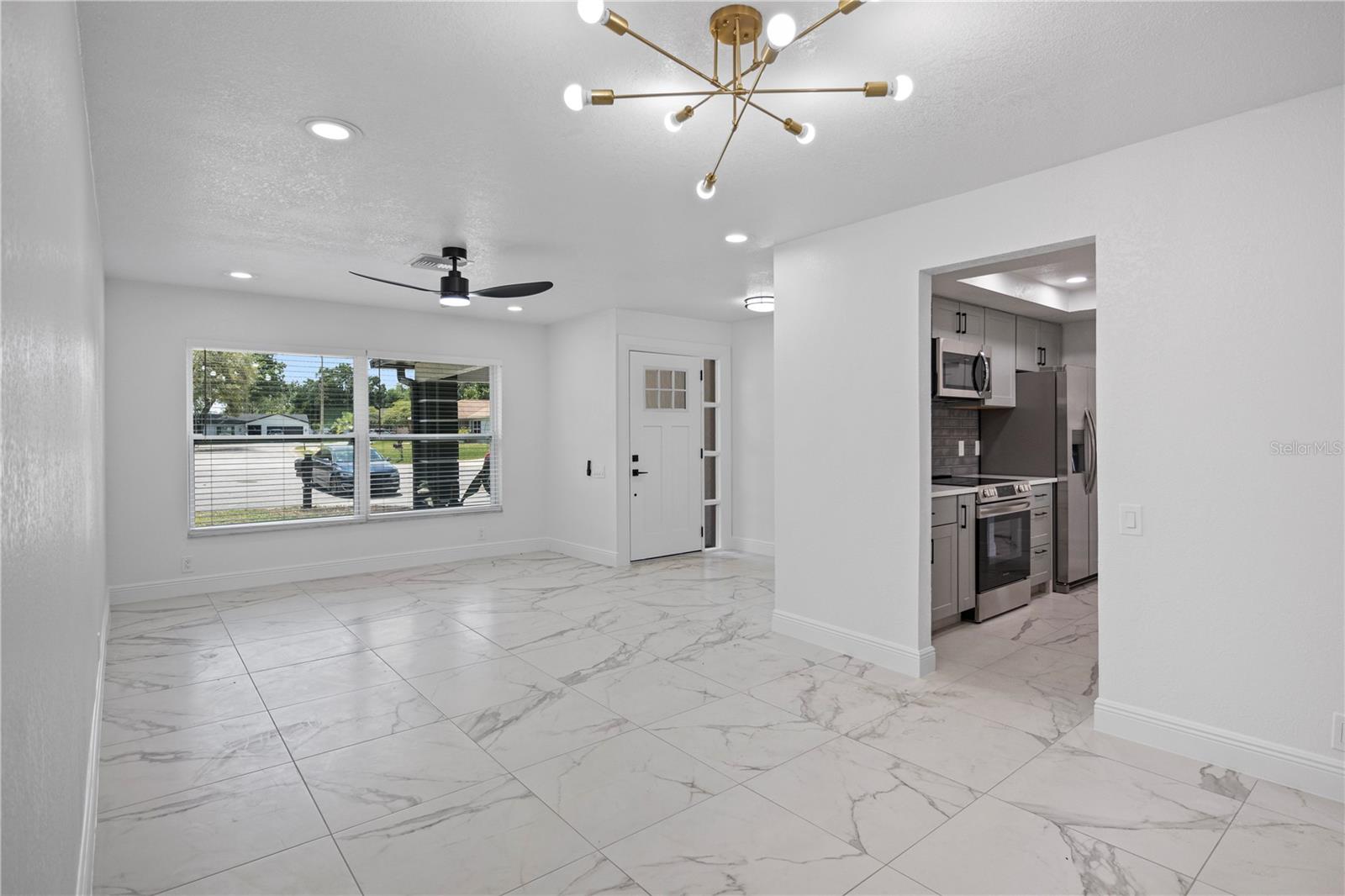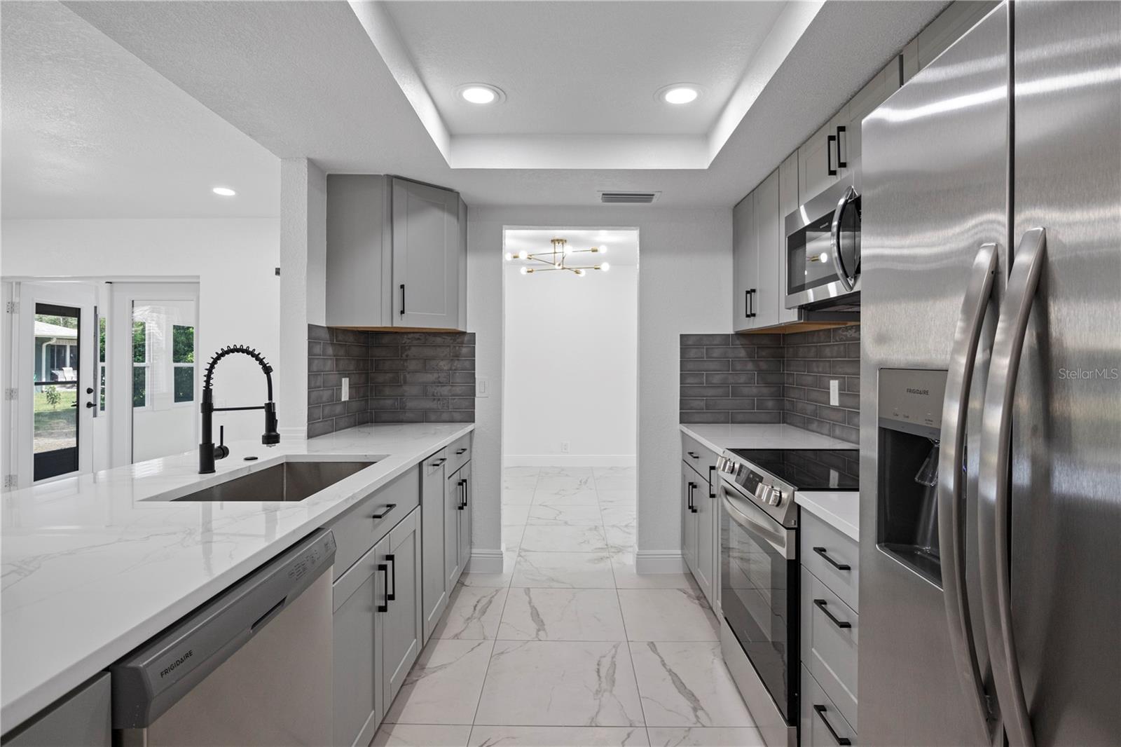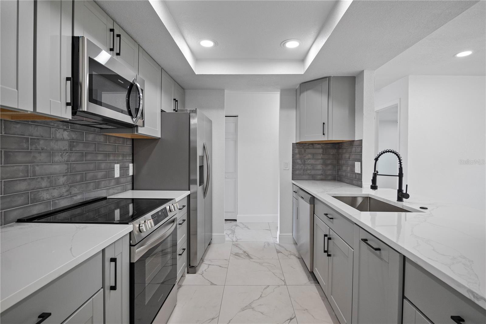 Welcome to this amazing home located in the sought after Fairway Springs in the Trinity/Newport Richey area. This beautiful home is on a large lot in a cul-de-sac. This home has been tastefully remodeled throughout. New Roof (2024), New driveway/walkway, New Windows and window treatments, All New interior and exterior doors. Trimmed and cut large trees that were overcrowding the backyard. Brand new AC system (2024) and AC Ducts. As you walk through the house, you will notice the freshly textured, and painted walls and ceiling, updated light fixtures, outlets, and switches. Beautiful 24x24 porcelain tile floor and 5” baseboards. The bathrooms are a dream, beautiful vanities, new plumbing, new toilets, glass shower doors, and beautiful fixtures. The open concept kitchen features brand new cabinets, luxurious quartz countertop, large undermount sink, garbage disposal, brand new appliances, and updated fixtures. Custom built closets, brand new doors on all closets, and pantry. All new electric brakers, updated electric wiring, and new tankless water heater. The Florida room has AC. The garage has updated lighting, and freshly epoxied floors. The laundry room has tiled floor, and it has updated plumbing.