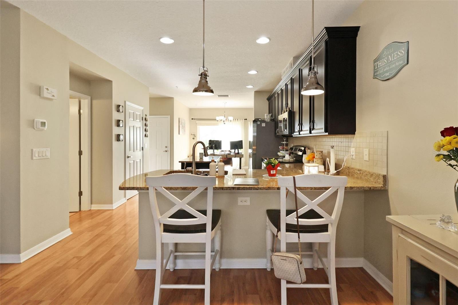 Welcome home to this turn-key townhome offering 2 bedrooms, 2.5 baths and a one car garage. Up the private elevator, you'll be wowed by the open-concept main living area. Featuring updated stainless steel appliances, granite countertops, and a tile backsplash. Upstairs is the owner's retreat as well as a guest bedroom and bathroom. This no-maintenance townhome offers plenty of storage and outdoor space to relax and enjoy the Florida lifestyle. The gated community offers no maintenance, low hoa, 2 pools, dog park, gym, and a private beach!