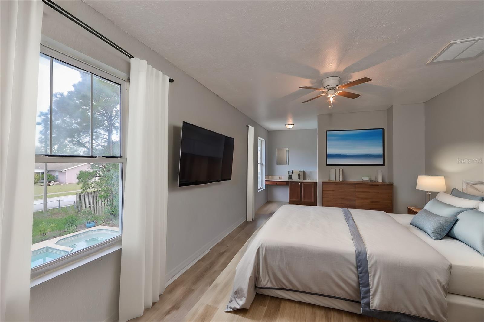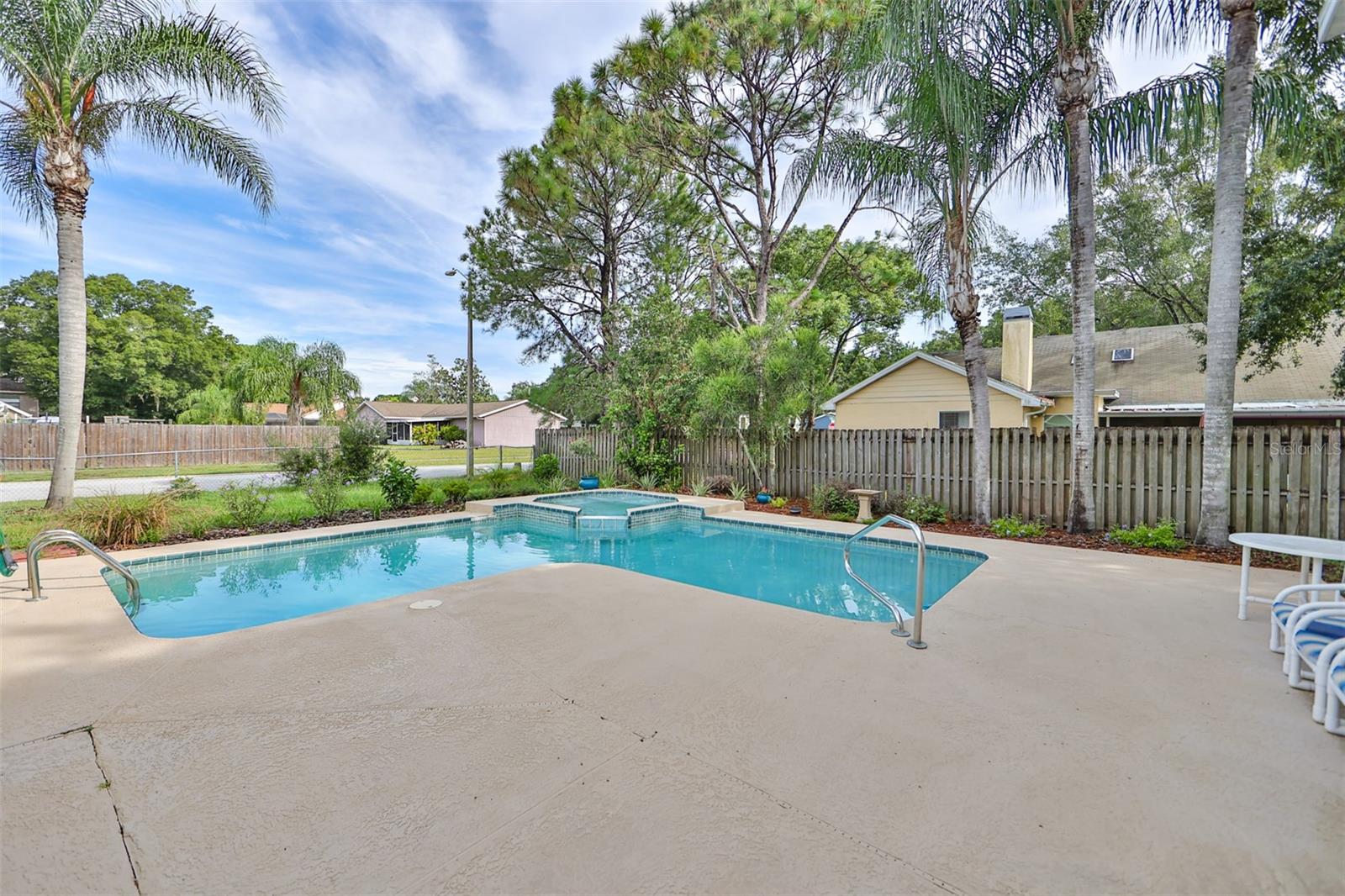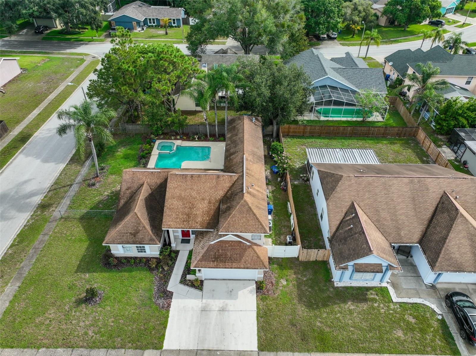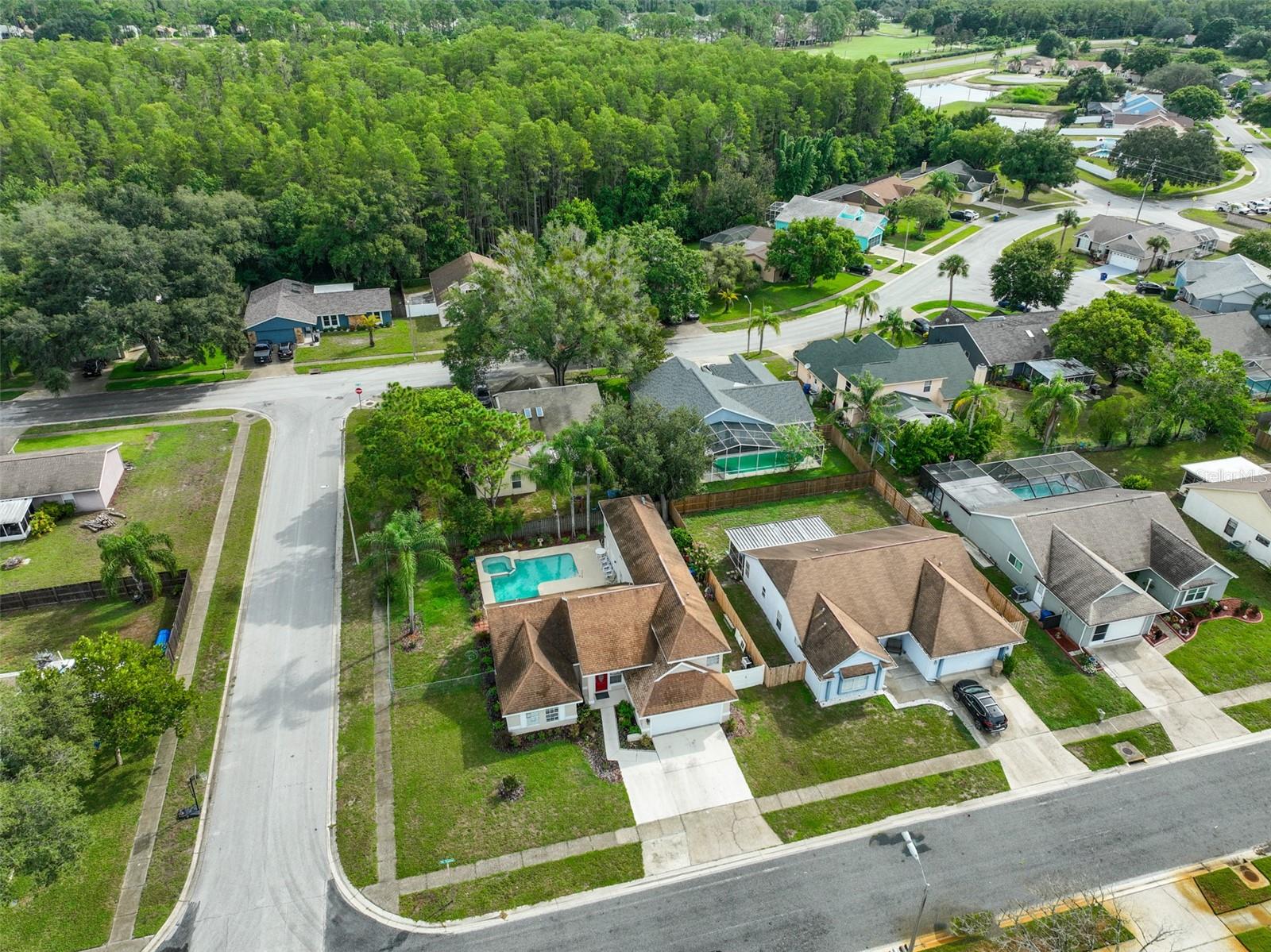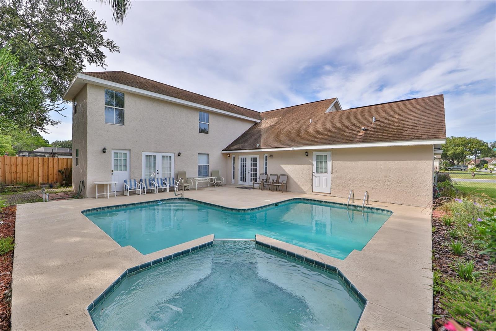 One or more photo(s) has been virtually staged. Come and enjoy the warmth of the Florida sun while relaxing in your very own in-ground pool and jacuzzi at this gorgeous corner lot home! Conveniently located in the New Port Richey suburb, this gorgeous home is located in the much sought-after Hunters Ridge subdivision. This lovely property has no lease restrictions, no CDD fees, affordable annual HOA dues, and is not located in a flood zone. For the comfort and privacy of your family, an open floor plan featuring five bedrooms, four bathrooms, and two separate upper living areas is provided. The kitchen is equipped with stainless steel appliances, ample natural light, and spacious cabinetry. The pool was resurfaced in 2023, and the house's exterior and interior were recently painted. This lovely home provides both indoor and outdoor living spaces that are comfortable. Ideally situated near eateries, medical facilities, dog parks, the Starkey Wilderness Preserve, and top-notch schools. Robert K. Rees Park Beach, the nearest beach, is located within the Tampa, St. Petersburg, and Clearwater metropolitan area and is 7.0 miles from the house. The house currently have some damages on the roof.