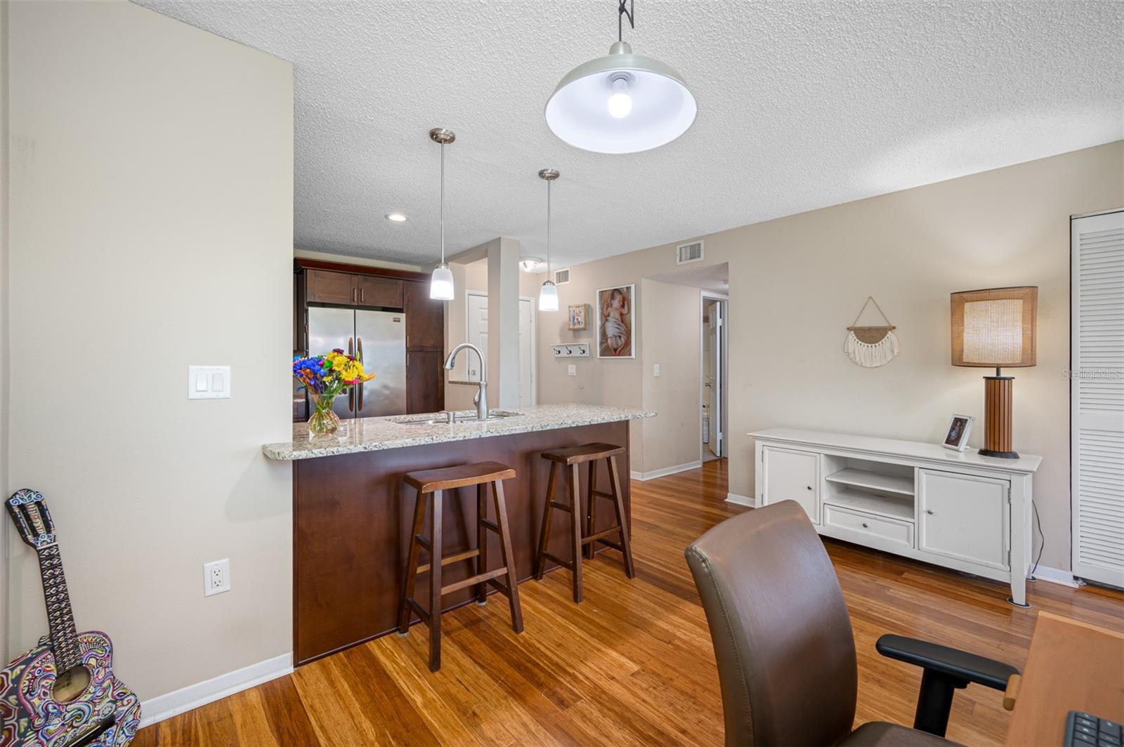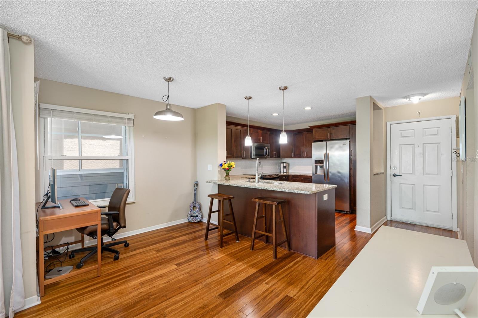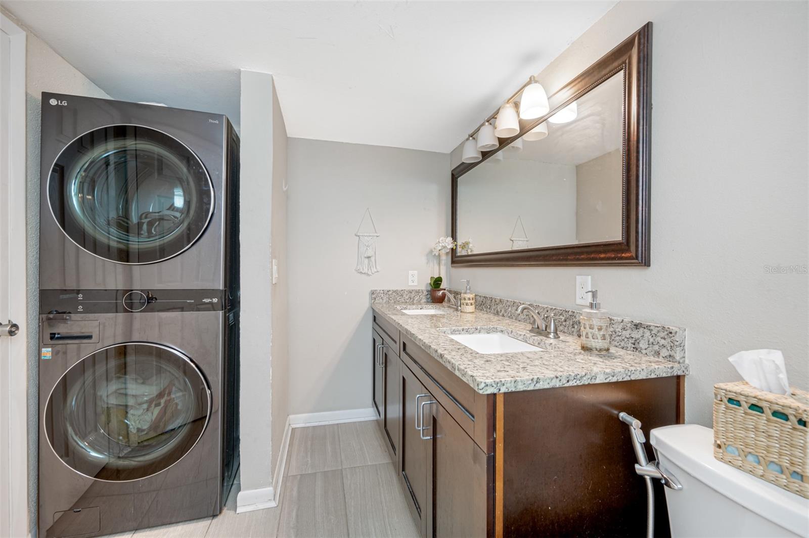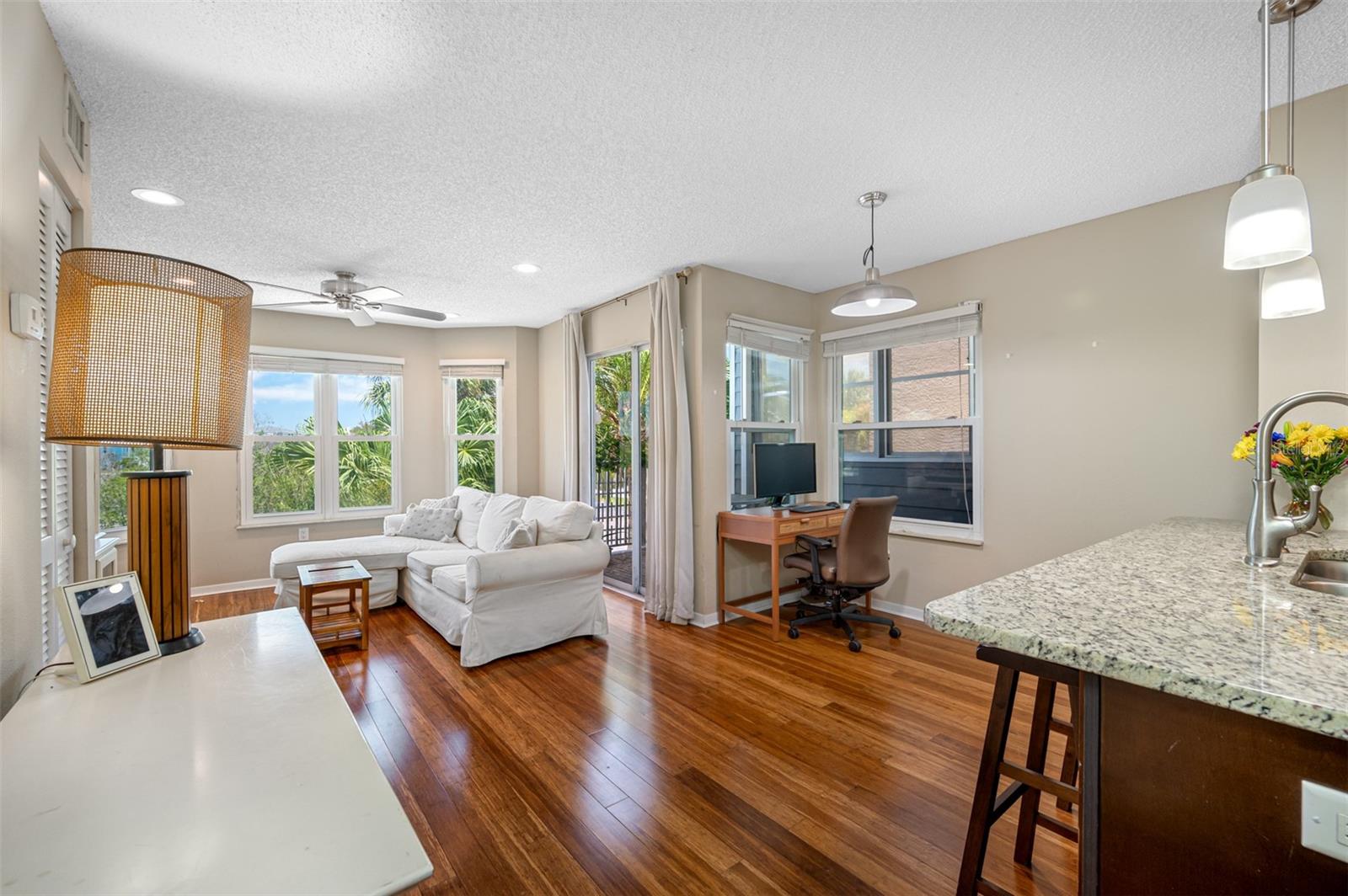 Stunning, elevated, waterfront home in the community of Mariners Way. Waterfront living without the worry about flooding! The best of both worlds! This home features an open floorplan with an abundance of natural light. The kitchen has been updated with solid wood cabinets, granite counters, a breakfast bar and stainless-steel appliances. The living room features a large bay window and sliding glass doors to your private balcony. The primary bedroom has a second private balcony you can enjoy the waterfront view from. The primary bedroom also has its own access to updated bathroom featuring a double vanity, granite countertops and the washer and dryer closet. Use the building elevator for ease of accessing the home. This elevated first floor home is great for flood mitigation as well as covered parking and kayak or bike storage under the building. This community has it all with two pools, a private boat launch, tennis and pickleball courts and Gulf Harbors Private Beach Club for access to the pristine, private, gulf beach. The city of New Port Richey has an amazing waterfront downtown, parks, restaurants and nightlife.