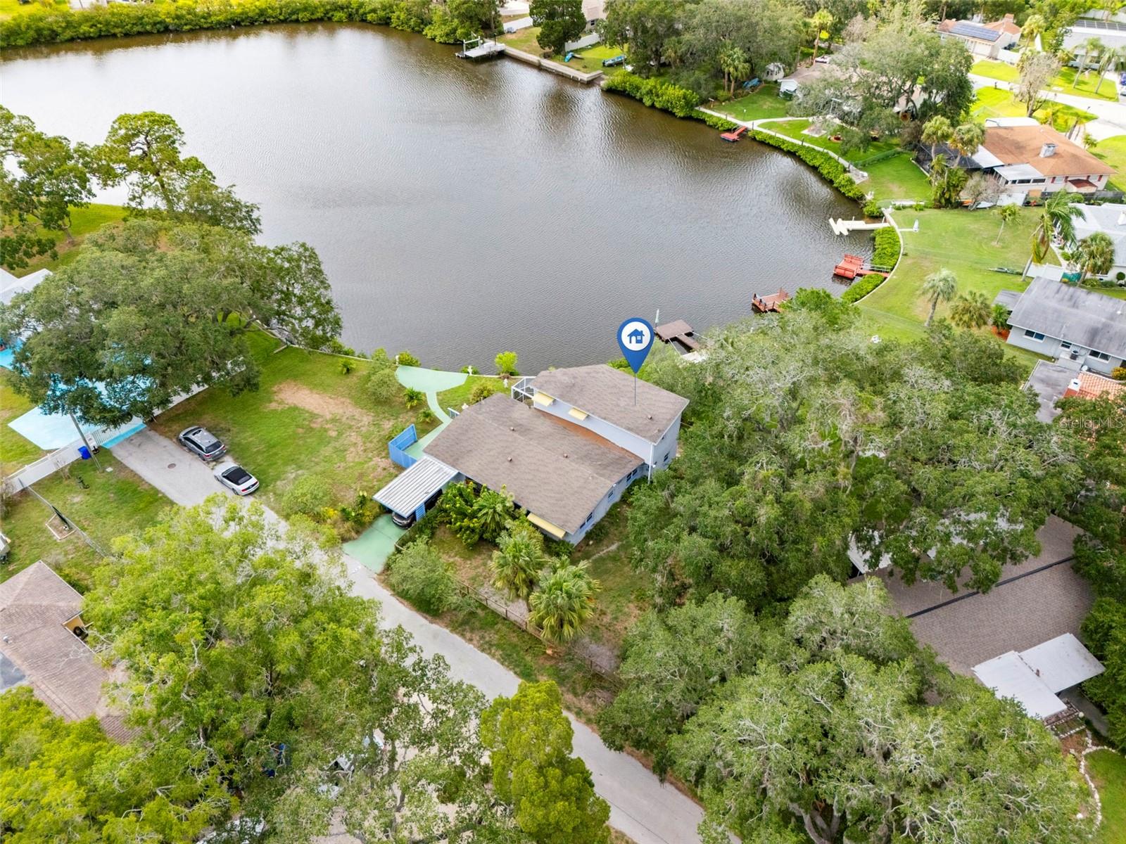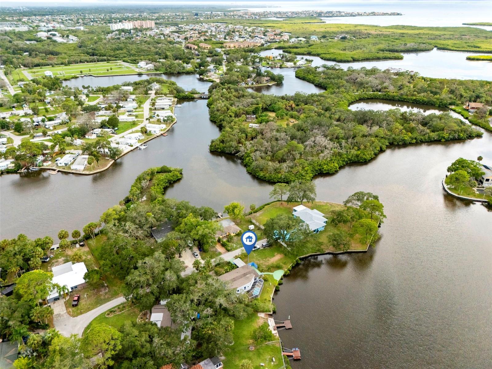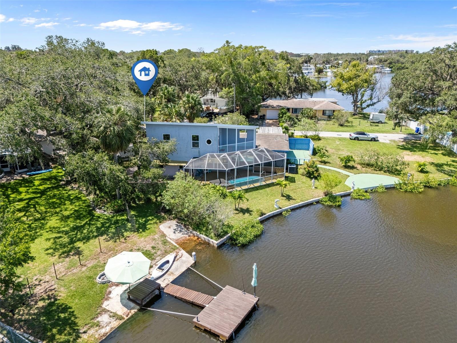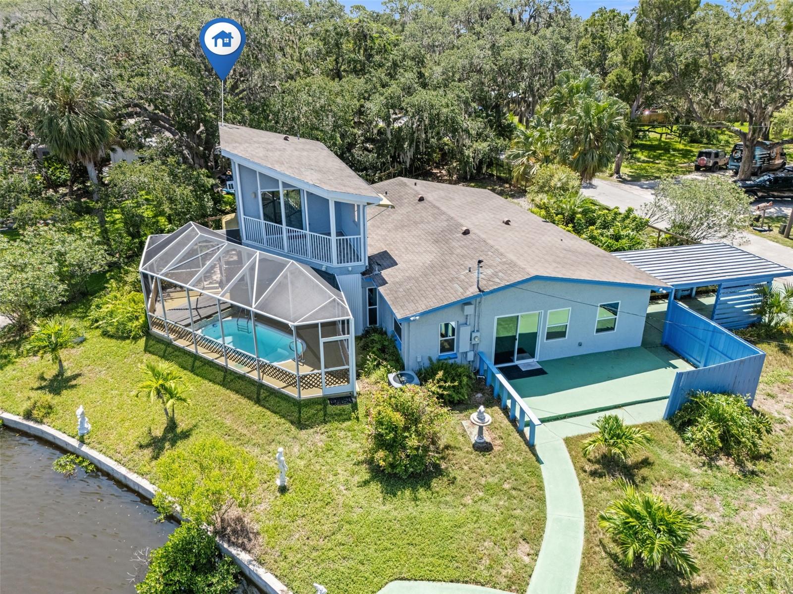 Experience serene living in this uniquely-built home nestled on a full 1/3 acre lot. This stunning 3-bedroom, 3-full-bath, 1,943 sq ft waterfront gem is just minutes from the Gulf of Mexico with direct access. As you arrive, the extended driveway leads you to a welcoming classic art deco-styled home, exuding rich colors perfect for an ultimate waterfront lifestyle. Step inside to an open-concept floor plan and be captivated by spectacular water views, an original floating staircase, and beautiful Pergo floors throughout. The entire back wall boasts picturesque windows and access to a large enclosed screened patio, featuring a fiberglass pool and raised hot tub. Enjoy breathtaking water views, host events, or relax during a colorful sunset. The open kitchen offers like-new stainless steel appliances, floor-to-ceiling tile backsplash, and ample cabinet space. The pantry is conveniently located in the oversized laundry room, perfect for extra storage. The main floor features a large formal living room, a spacious family room, and a Florida room with double sliding doors leading to an additional fenced patio. This patio also provides access to a shared boat ramp, ideal for kayaking to the Gulf of Mexico. The oversized owner's suite includes its own sitting room, ensuite bathroom, and detailed tile work from ceiling to floor. The second floor offers a large bedroom with a full ensuite bath, walk-in closet, additional sitting space, and a balcony with spectacular waterfront views. This home isn't just a paradise for personal living—it's also a fantastic short-term rental option. Its prime location and luxurious amenities make it a highly attractive choice for vacationers looking for a waterfront retreat. This dream home in paradise offers everything you've been looking for and more! Must see—don't hesitate. Call to schedule your private showing today!