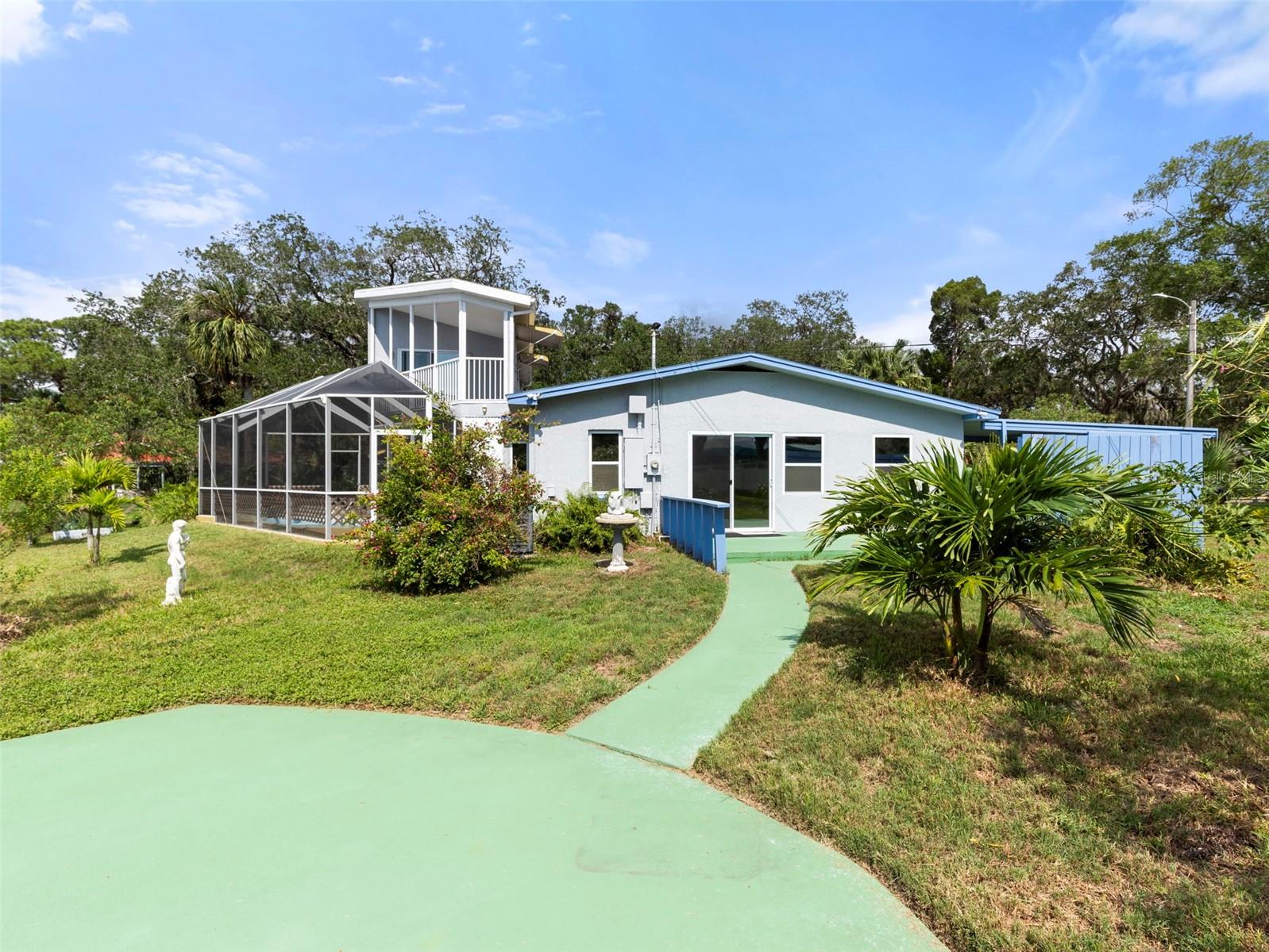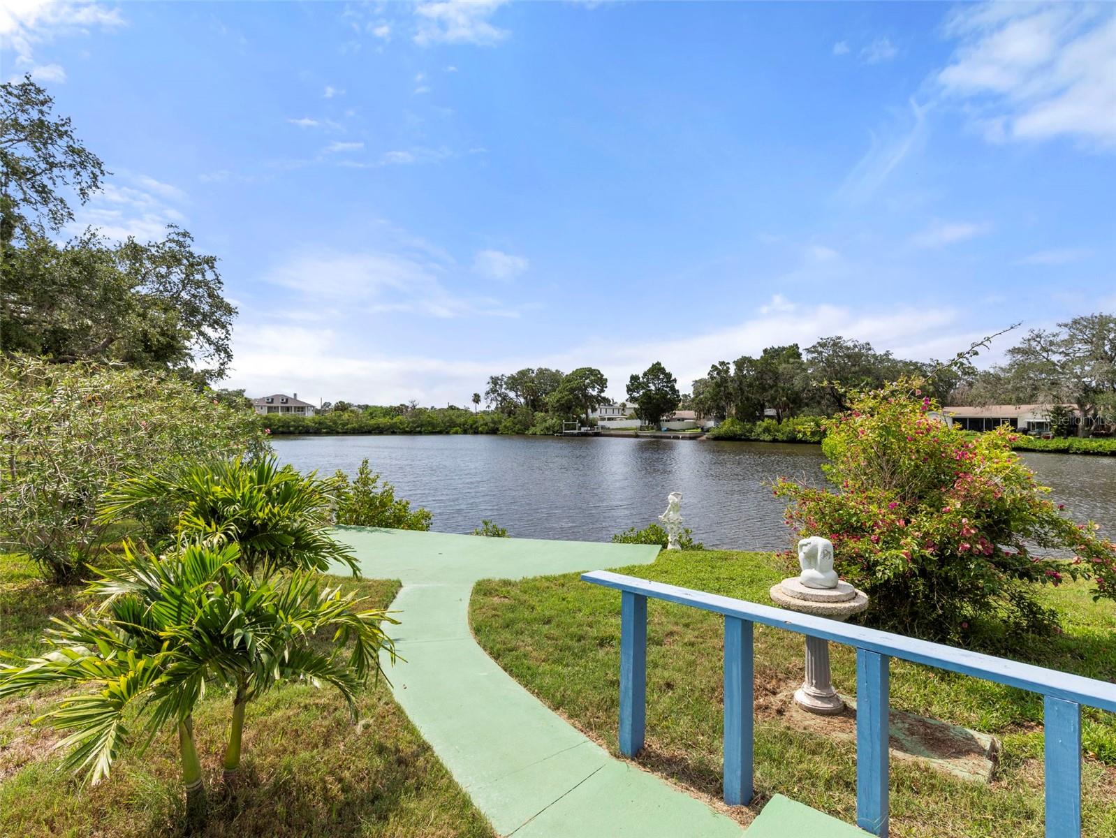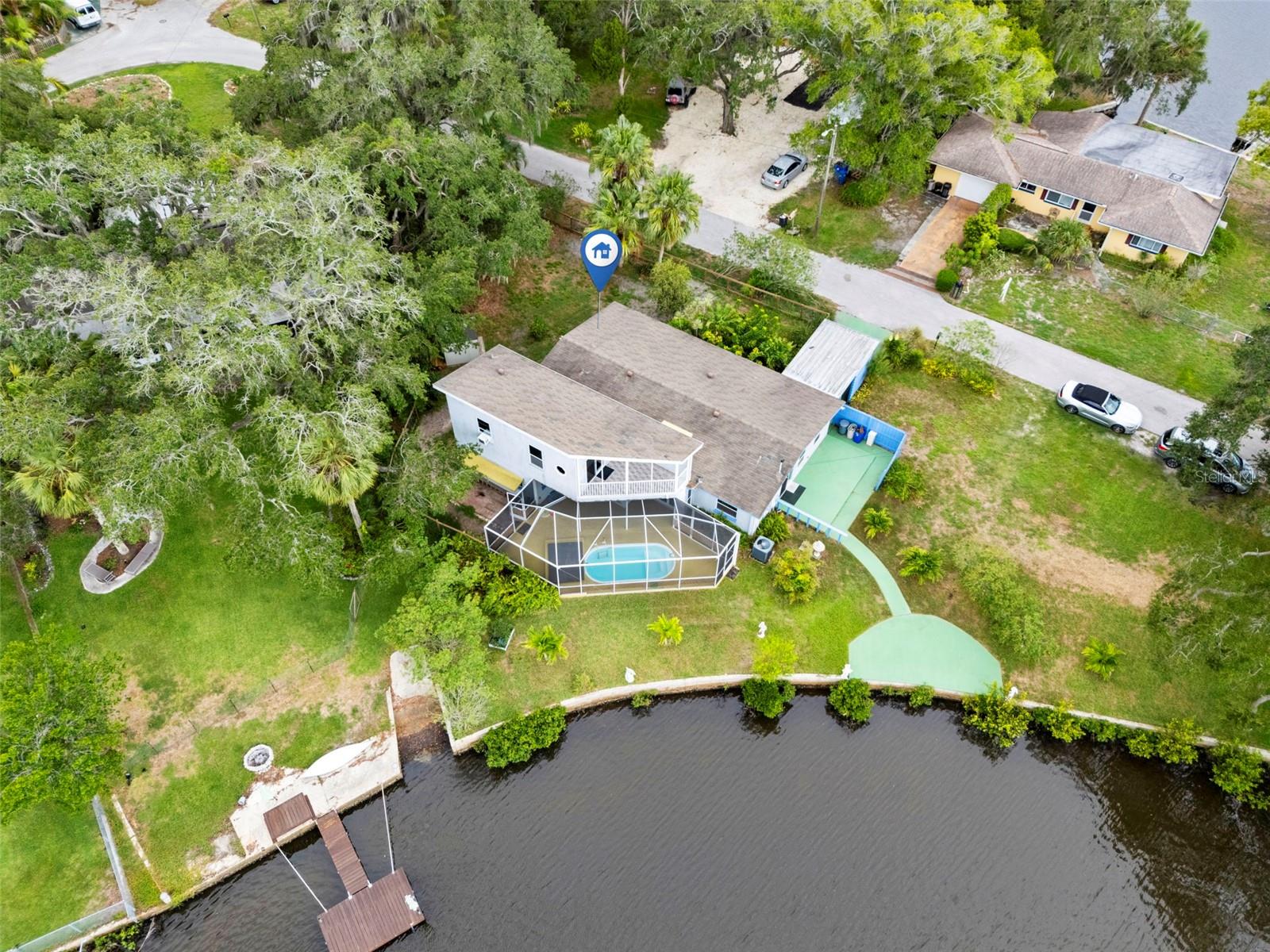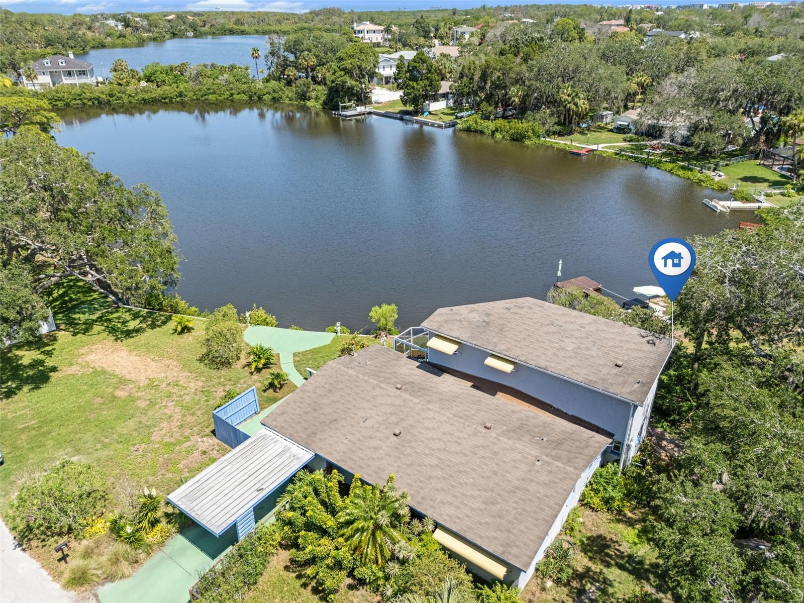 Experience serene living in this uniquely-built home nestled on a full 1/3 acre lot. This stunning 3-bedroom, 3-full-bath, 1,943 sq ft waterfront gem is just minutes from the Gulf of Mexico with direct access. As you arrive, the extended driveway leads you to a welcoming classic art deco-styled home, exuding rich colors perfect for an ultimate waterfront lifestyle. Step inside to an open-concept floor plan and be captivated by spectacular water views, an original floating staircase, and beautiful Pergo floors throughout. The entire back wall boasts picturesque windows and access to a large enclosed screened patio, featuring a fiberglass pool and raised hot tub. Enjoy breathtaking water views, host events, or relax during a colorful sunset. The open kitchen offers like-new stainless steel appliances, floor-to-ceiling tile backsplash, and ample cabinet space. The pantry is conveniently located in the oversized laundry room, perfect for extra storage. The main floor features a large formal living room, a spacious family room, and a Florida room with double sliding doors leading to an additional fenced patio. This patio also provides access to a shared boat ramp, ideal for kayaking to the Gulf of Mexico. The oversized owner's suite includes its own sitting room, ensuite bathroom, and detailed tile work from ceiling to floor. The second floor offers a large bedroom with a full ensuite bath, walk-in closet, additional sitting space, and a balcony with spectacular waterfront views. This home isn't just a paradise for personal living—it's also a fantastic short-term rental option. Its prime location and luxurious amenities make it a highly attractive choice for vacationers looking for a waterfront retreat. This dream home in paradise offers everything you've been looking for and more! Must see—don't hesitate. Call to schedule your private showing today!