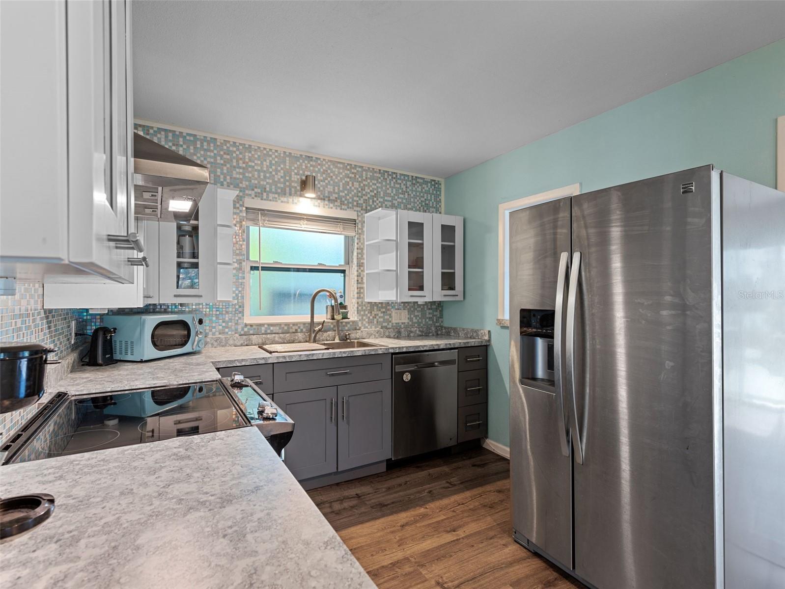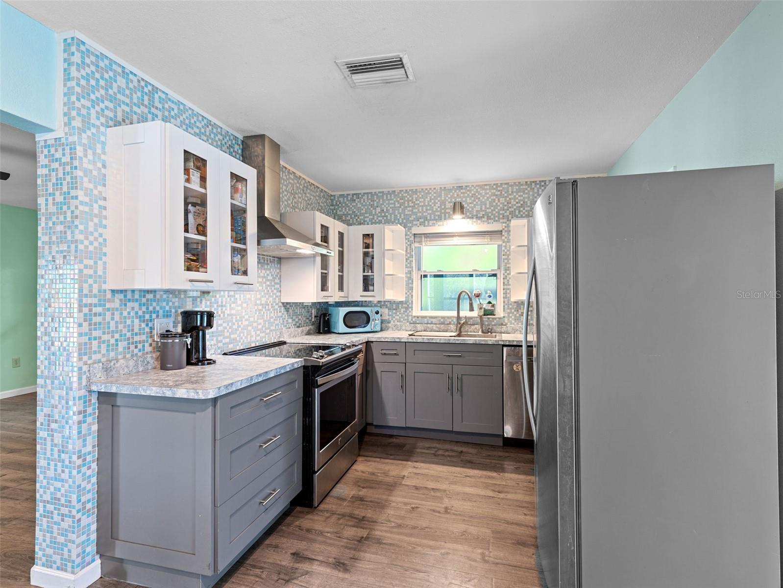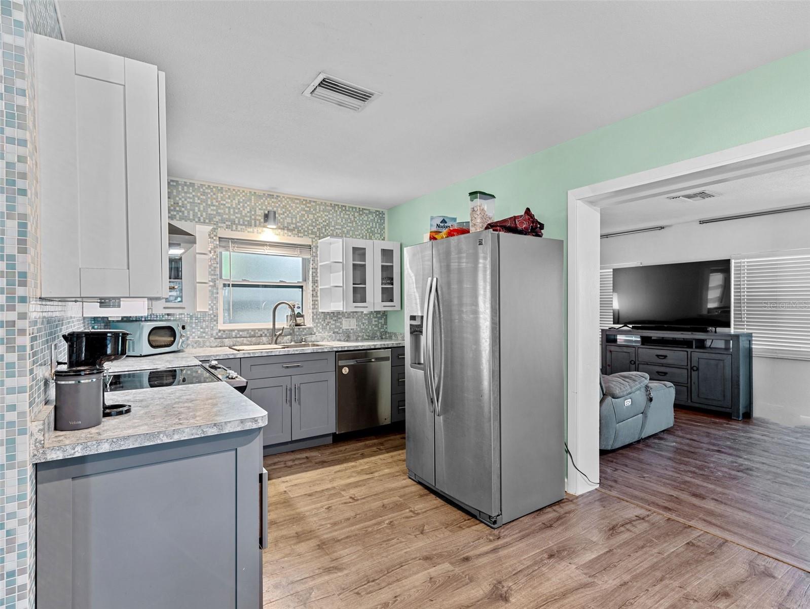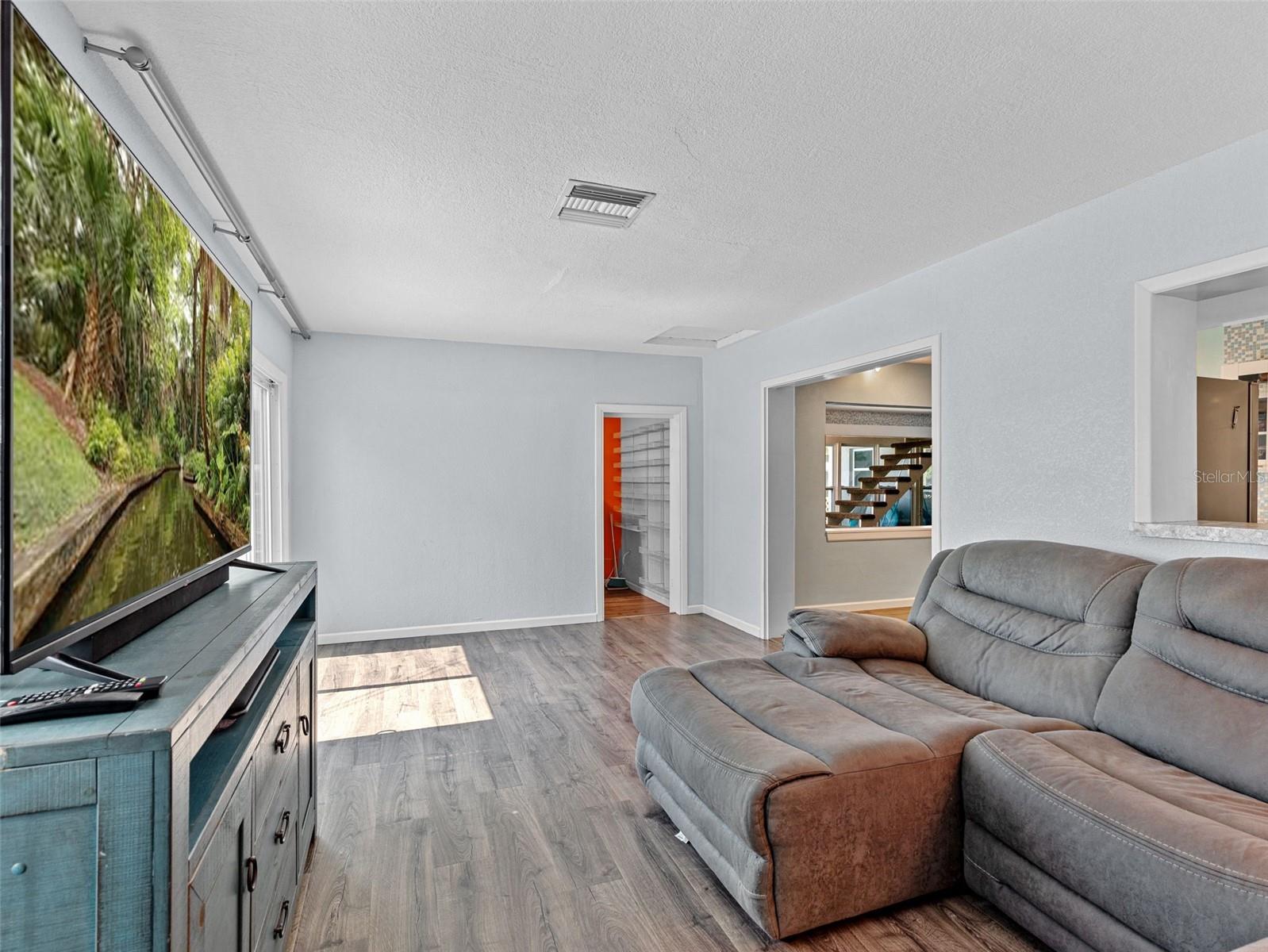 Experience serene living in this uniquely-built home nestled on a full 1/3 acre lot. This stunning 3-bedroom, 3-full-bath, 1,943 sq ft waterfront gem is just minutes from the Gulf of Mexico with direct access. As you arrive, the extended driveway leads you to a welcoming classic art deco-styled home, exuding rich colors perfect for an ultimate waterfront lifestyle. Step inside to an open-concept floor plan and be captivated by spectacular water views, an original floating staircase, and beautiful Pergo floors throughout. The entire back wall boasts picturesque windows and access to a large enclosed screened patio, featuring a fiberglass pool and raised hot tub. Enjoy breathtaking water views, host events, or relax during a colorful sunset. The open kitchen offers like-new stainless steel appliances, floor-to-ceiling tile backsplash, and ample cabinet space. The pantry is conveniently located in the oversized laundry room, perfect for extra storage. The main floor features a large formal living room, a spacious family room, and a Florida room with double sliding doors leading to an additional fenced patio. This patio also provides access to a shared boat ramp, ideal for kayaking to the Gulf of Mexico. The oversized owner's suite includes its own sitting room, ensuite bathroom, and detailed tile work from ceiling to floor. The second floor offers a large bedroom with a full ensuite bath, walk-in closet, additional sitting space, and a balcony with spectacular waterfront views. This home isn't just a paradise for personal living—it's also a fantastic short-term rental option. Its prime location and luxurious amenities make it a highly attractive choice for vacationers looking for a waterfront retreat. This dream home in paradise offers everything you've been looking for and more! Must see—don't hesitate. Call to schedule your private showing today!