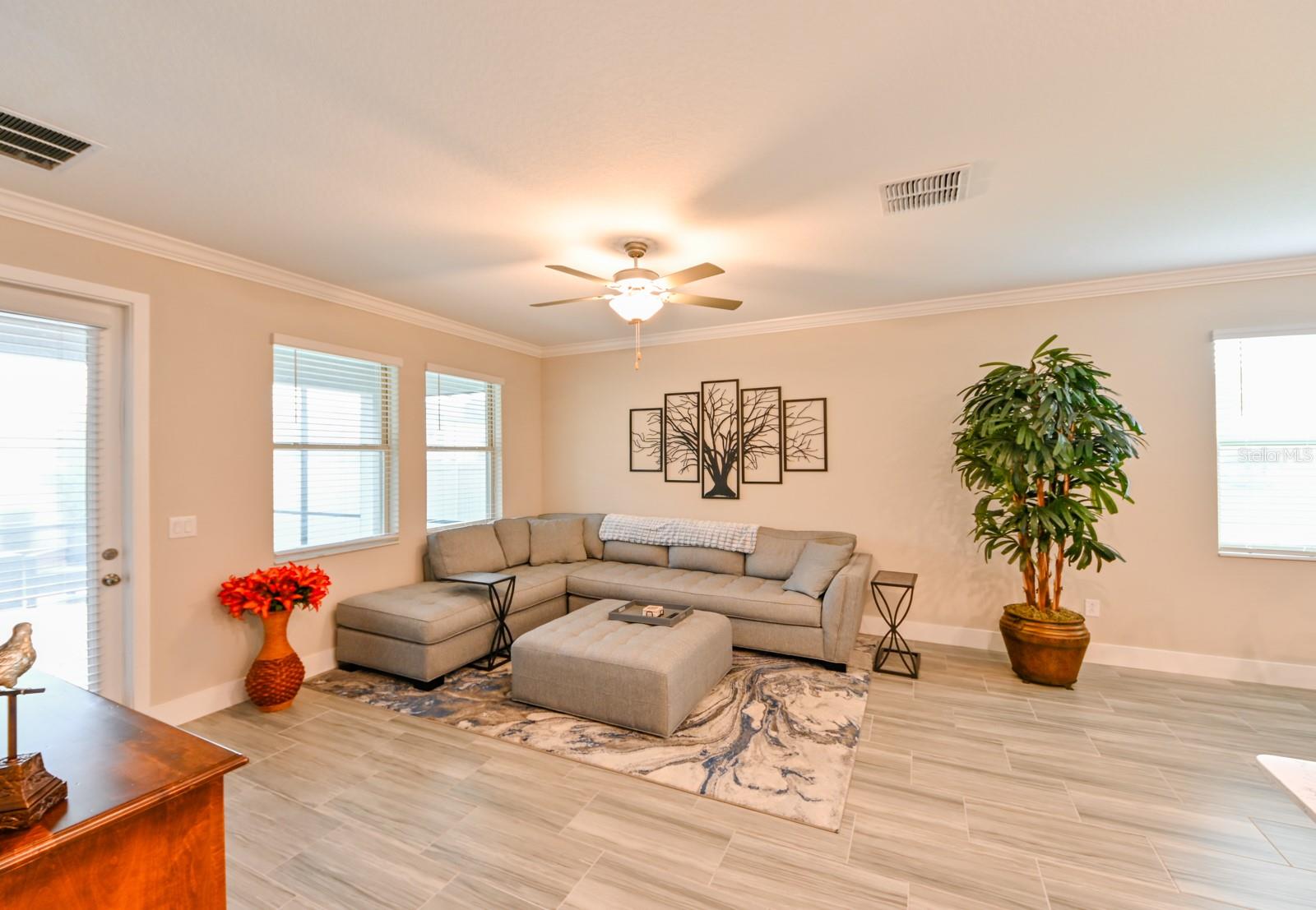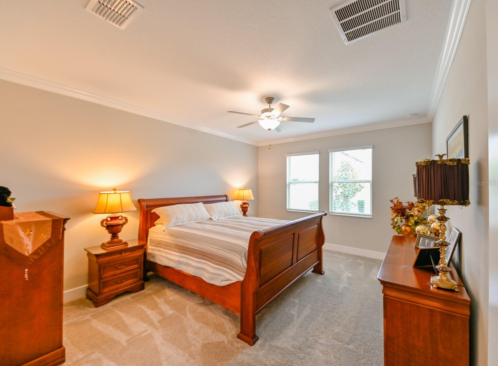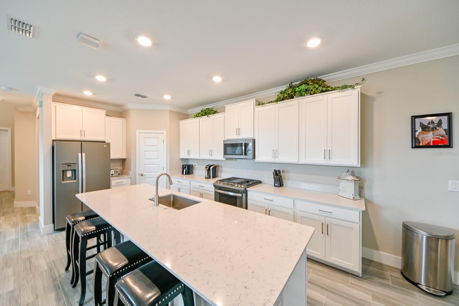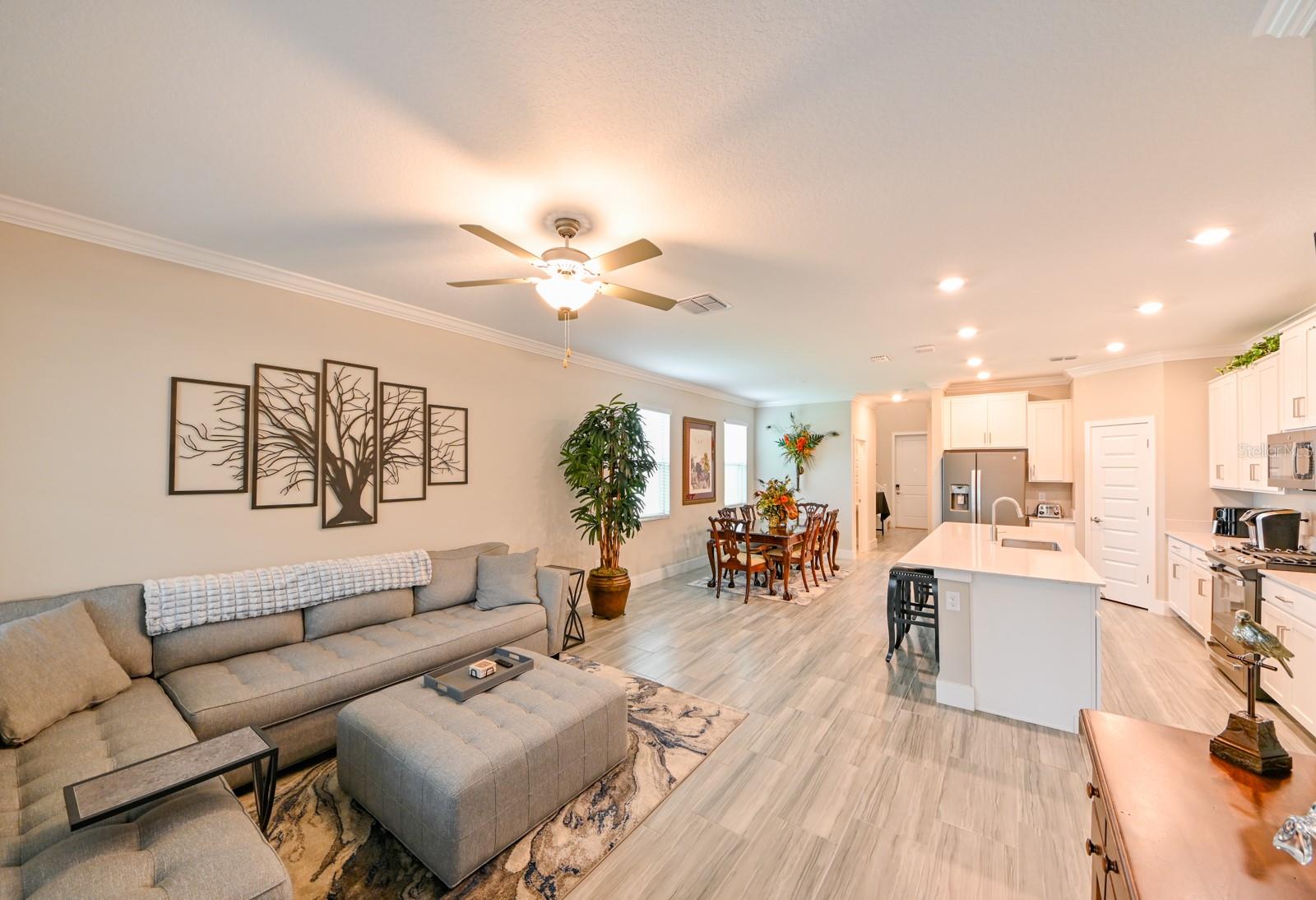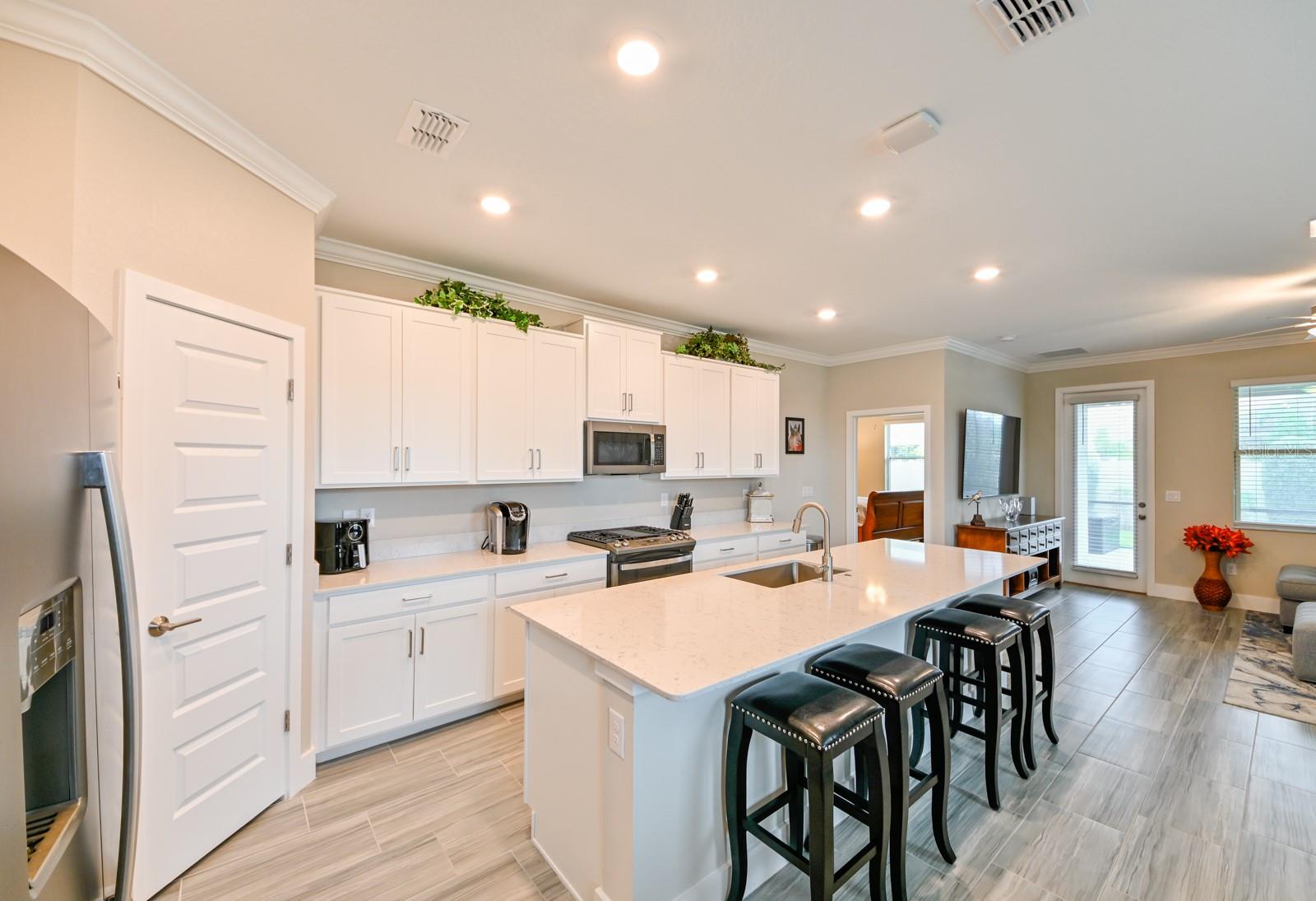 SELLER OFFERING $5000 CREDIT FOR MORTGAGE RATE BUYDOWN OR CLOSING COST ASSISTANCE! **MAKE SURE TO VIEW THE ATTACHED AMAZING FLY THROUGH VIDEO OF THIS PROPERTY & THE AMENITY CENTER!** This stunning 5 bedroom plus loft, 3.5 bath, 2 car garage home is located on a corner lot in Bryant Square, a master planned community in the Trinity area. Built in 2021, this two story home is completely move-in ready and offers numerous upgrades. Downstairs an open concept floorplan features a spacious kitchen, cozy living room, and separate dining space. The living room opens to a large paved and screened lanai that overlooks the fully fenced and landscaped backyard (full irrigation system included). The gourmet kitchen features quartz countertops, solid wood cabinetry, an oversized island, a walk-in pantry, and upgraded stainless steel appliances (all come with the home), including a gas range. The Primary Bedroom is on the first floor and has an ensuite bathroom with a walk-in shower, double vanity, and a large walk-in closet. The laundry room is conveniently located off the Primary Suite. There is also a powder bathroom downstairs. Upstairs is a large bonus loft area, four generously sized bedrooms, and two full baths. Three bedrooms have walk-in closets, with two sharing a Jack-and-Jill bathroom. The other full bathroom is off the hallway. Both bathrooms have tub/shower combos and spacious vanities. Additional features include crown molding throughout the first floor, all kitchen appliances and washer and dryer included, ceiling fans in all upstairs bedrooms, and smart home technology with a Ring doorbell, Schlage wireless front door lock, app-controlled garage door opener, and Honeywell wireless programmable thermostat. The home also has a whole house water softener and purification system. This home is conveniently located just down the street from the community pool. Bryant Square amenities include trails, parks, and a modern swimming pool with cabana. Close to shopping, restaurants, and Gulf Coast Beaches, this home is move-in ready and a short drive to Tampa International Airport, Downtown Tampa, and St. Petersburg. Community amenities feature two pools with lounge chairs, dining tables, and gas grills, playgrounds, and miles of hiking trails. The community borders the highly-rated Seven Springs Middle School and JW Mitchell High School, with a private entrance allowing easy access for community residents.