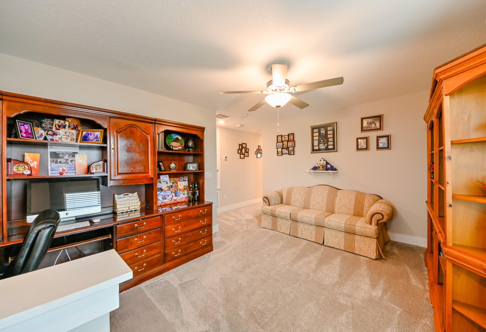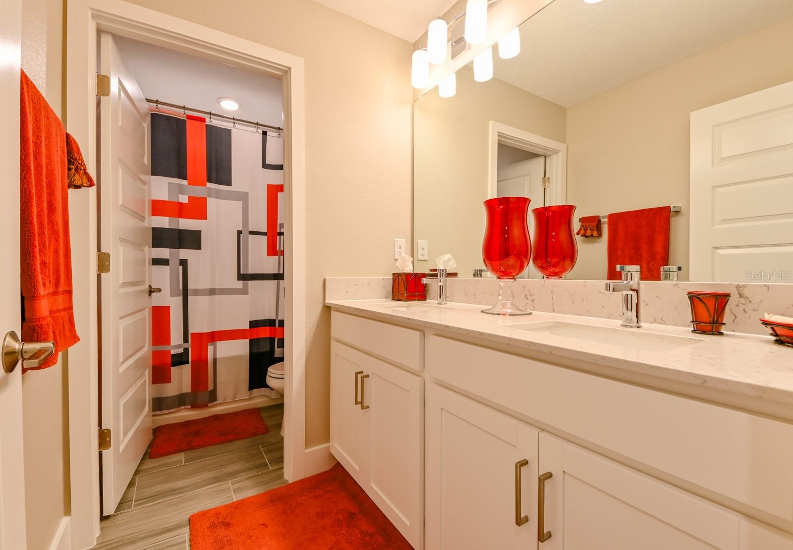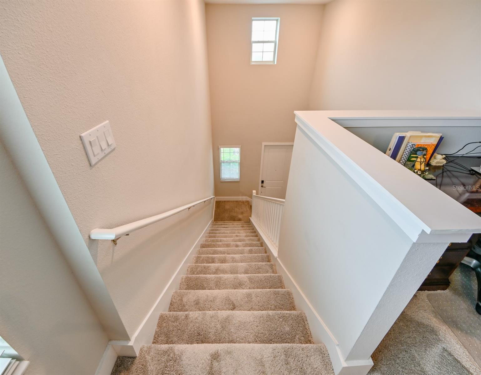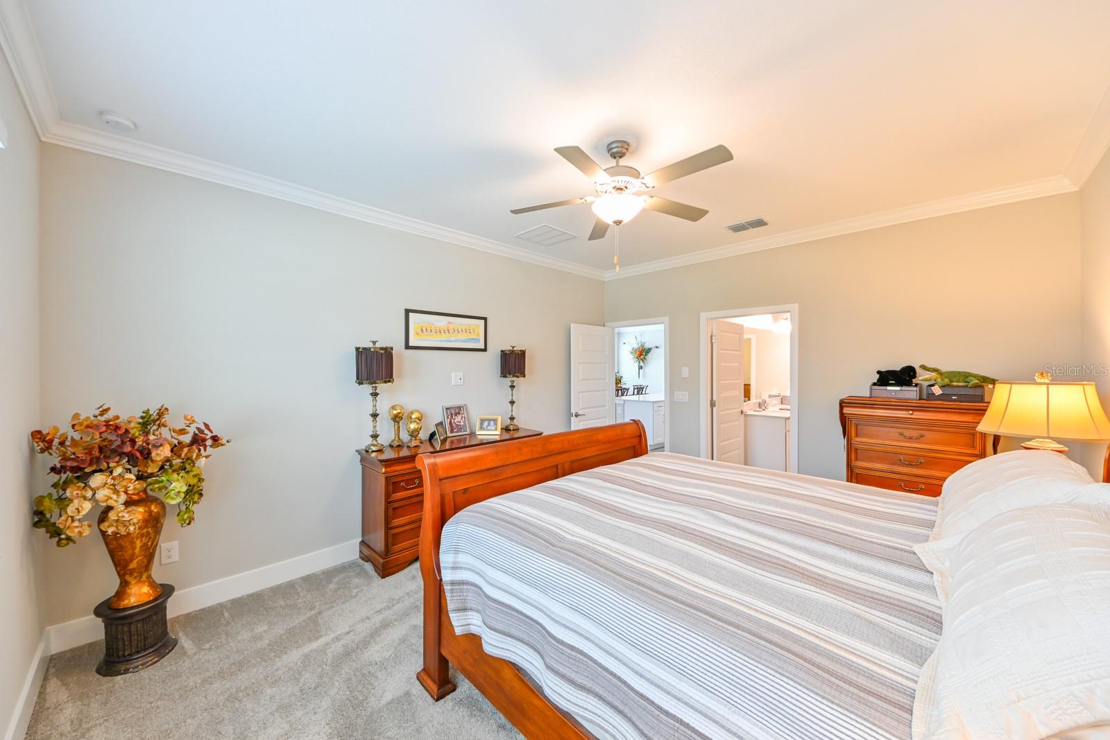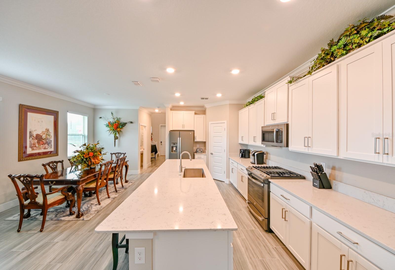 SELLER OFFERING $5000 CREDIT FOR MORTGAGE RATE BUYDOWN OR CLOSING COST ASSISTANCE! **MAKE SURE TO VIEW THE ATTACHED AMAZING FLY THROUGH VIDEO OF THIS PROPERTY & THE AMENITY CENTER!** This stunning 5 bedroom plus loft, 3.5 bath, 2 car garage home is located on a corner lot in Bryant Square, a master planned community in the Trinity area. Built in 2021, this two story home is completely move-in ready and offers numerous upgrades. Downstairs an open concept floorplan features a spacious kitchen, cozy living room, and separate dining space. The living room opens to a large paved and screened lanai that overlooks the fully fenced and landscaped backyard (full irrigation system included). The gourmet kitchen features quartz countertops, solid wood cabinetry, an oversized island, a walk-in pantry, and upgraded stainless steel appliances (all come with the home), including a gas range. The Primary Bedroom is on the first floor and has an ensuite bathroom with a walk-in shower, double vanity, and a large walk-in closet. The laundry room is conveniently located off the Primary Suite. There is also a powder bathroom downstairs. Upstairs is a large bonus loft area, four generously sized bedrooms, and two full baths. Three bedrooms have walk-in closets, with two sharing a Jack-and-Jill bathroom. The other full bathroom is off the hallway. Both bathrooms have tub/shower combos and spacious vanities. Additional features include crown molding throughout the first floor, all kitchen appliances and washer and dryer included, ceiling fans in all upstairs bedrooms, and smart home technology with a Ring doorbell, Schlage wireless front door lock, app-controlled garage door opener, and Honeywell wireless programmable thermostat. The home also has a whole house water softener and purification system. This home is conveniently located just down the street from the community pool. Bryant Square amenities include trails, parks, and a modern swimming pool with cabana. Close to shopping, restaurants, and Gulf Coast Beaches, this home is move-in ready and a short drive to Tampa International Airport, Downtown Tampa, and St. Petersburg. Community amenities feature two pools with lounge chairs, dining tables, and gas grills, playgrounds, and miles of hiking trails. The community borders the highly-rated Seven Springs Middle School and JW Mitchell High School, with a private entrance allowing easy access for community residents.
