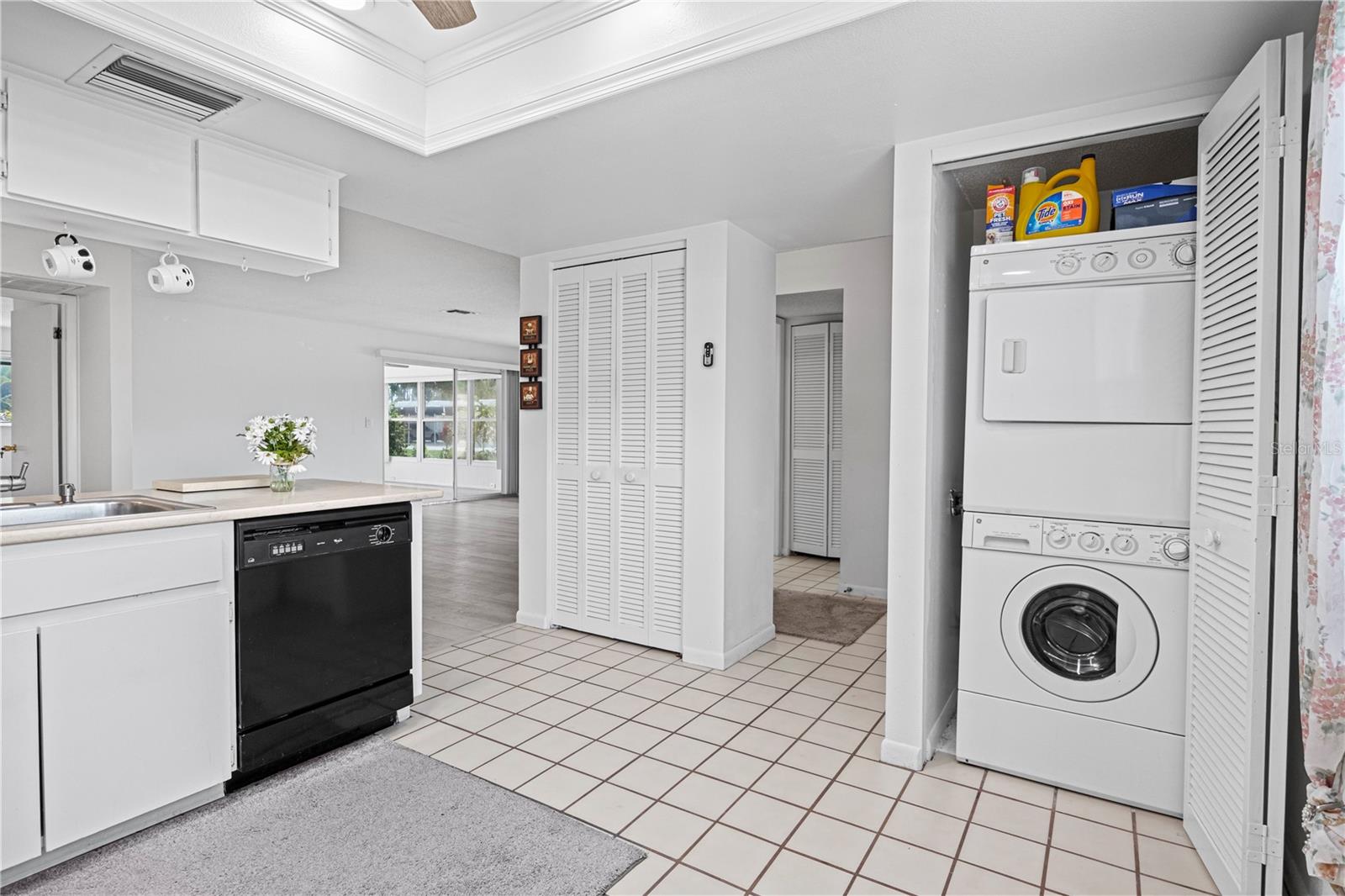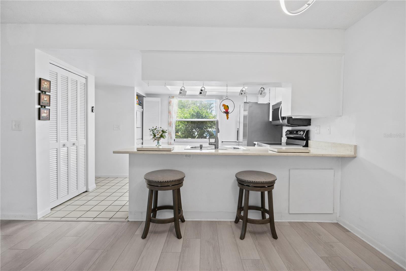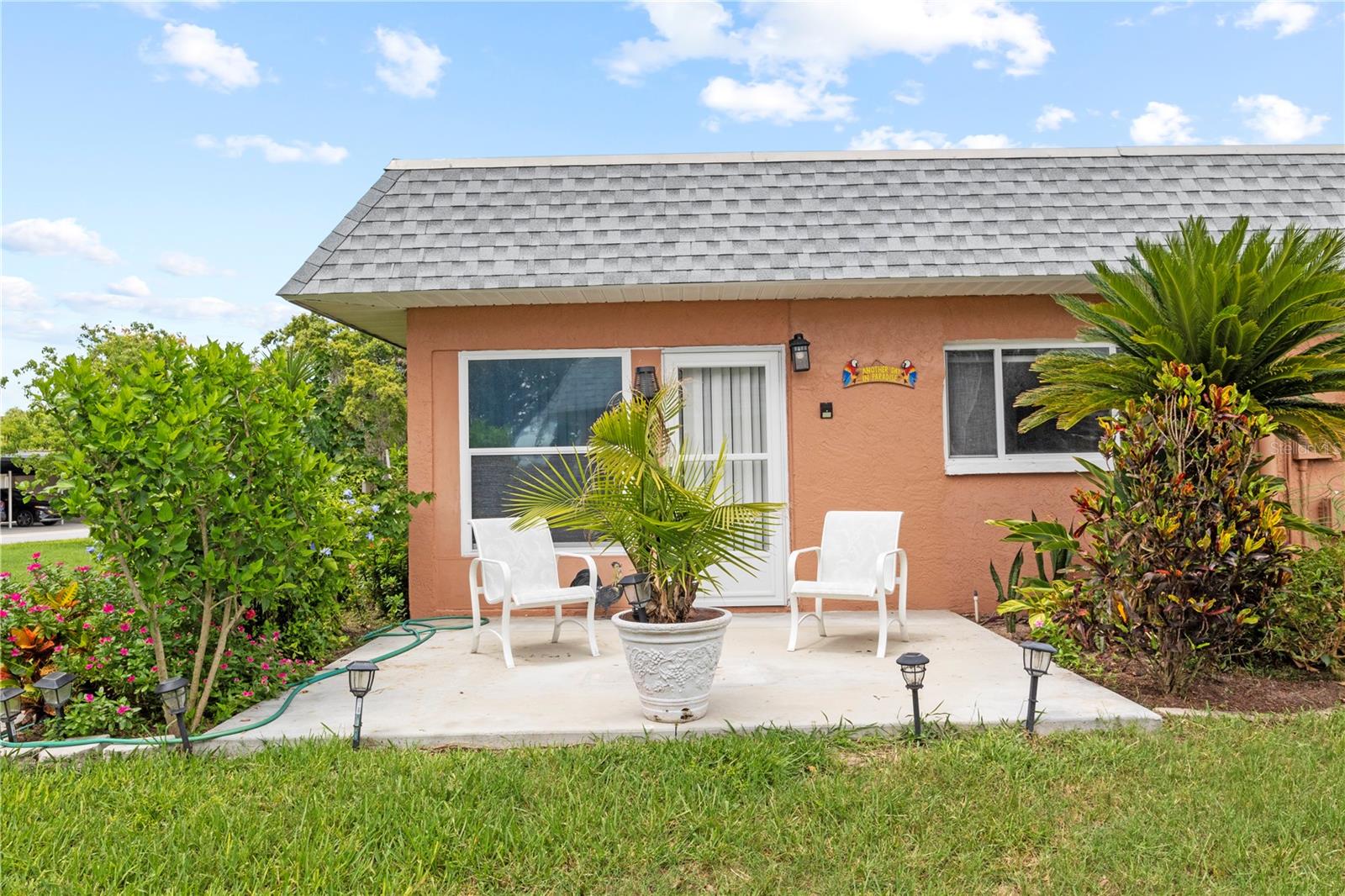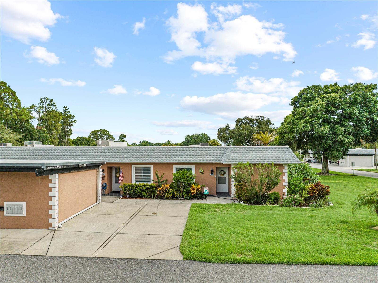 Charming 2-Bedroom, 2-Bathroom End Unit Condo – Act Fast! Roof 2024 AC 2024 - Brand New Welcome to this delightful end unit condo that won’t last long! Featuring a well-designed split floor plan, this home offers a spacious living experience with two bedrooms and two bathrooms. Key Features: Modern Kitchen: Double sink island quartz counter with newer appliances, overlooking a generous dining area and laundry closet with stacked washer and dryer. Spacious Living: Enjoy a bright living room with easy access to the Florida Room through sliding glass doors. Florida Room: A relaxing space with access to a private back patio, ideal for savoring beautiful sunsets. Master Suite: Includes a walk-in closet and direct access to the Florida Room. Versatile Second Bedroom: Perfect for guests or use as an office. Second Bathroom: Equipped with a tub/shower combo. Interior Details: New Upgraded Waterproof laminate floors throughout with tile in the kitchen and bathrooms. Community Amenities: Gated Community: 24-hour guard for added security. Recreational Options: Swimming, golf, bocce ball, a restaurant, and a lounge. Location Perks: Close to Trinity Shopping Plaza and Trinity Hospital, with easy access to Hillsborough and Pinellas counties. Additional Information: Maintenance Fee: Covers water, trash, cable, roof, exterior paint, yard maintenance, and escrow reserves for repairs. Non-Age Restricted: Suitable for all ages. Each unit has a private storage unit. Don’t miss out on this fantastic opportunity to live in a vibrant community with plenty of amenities. Schedule a viewing today!