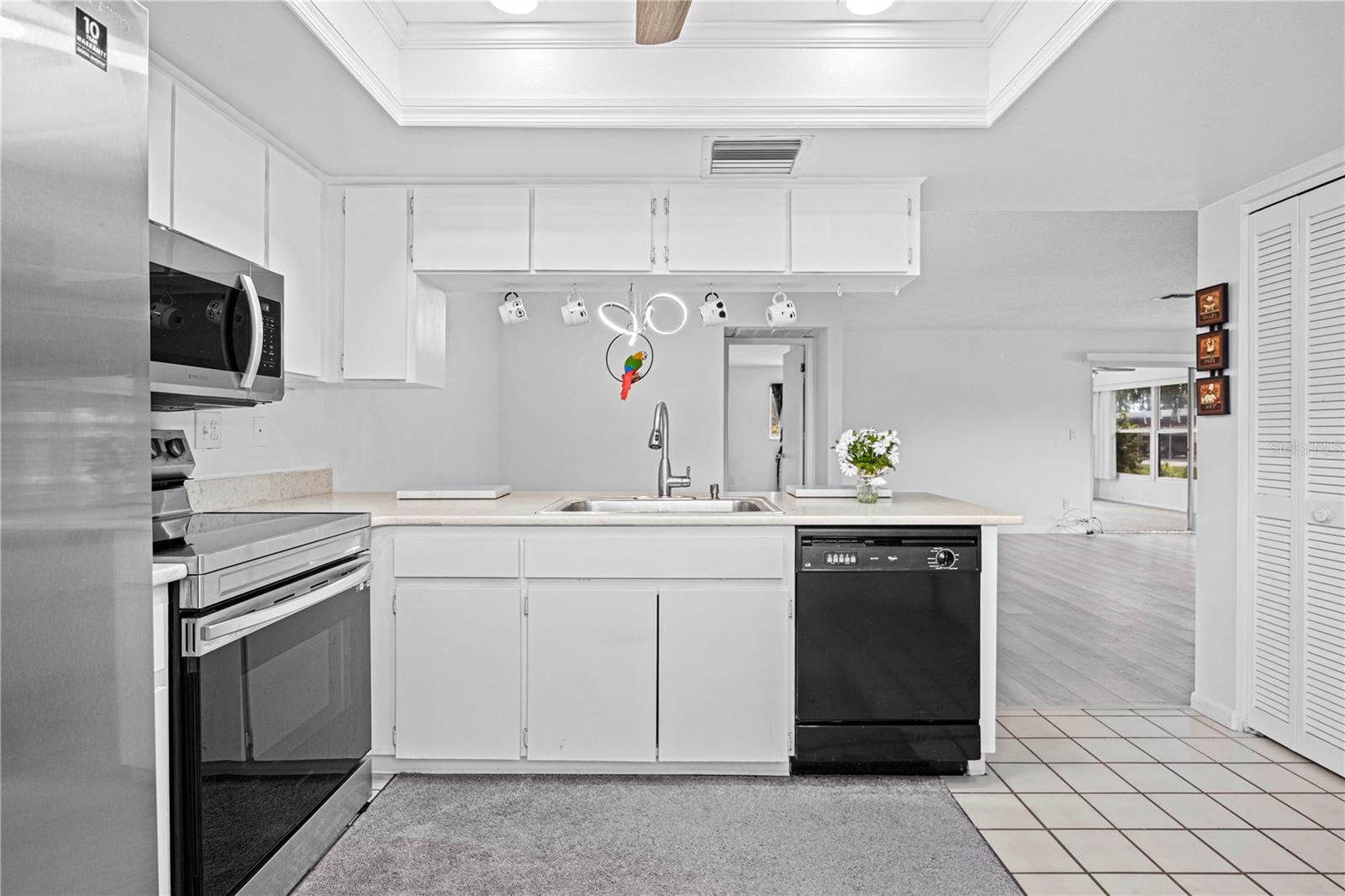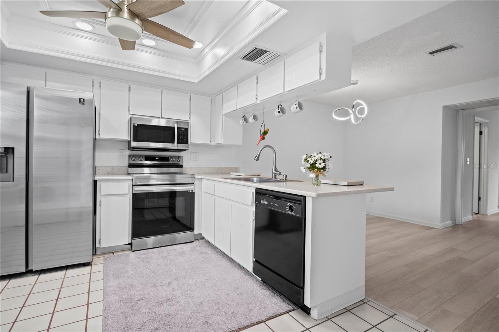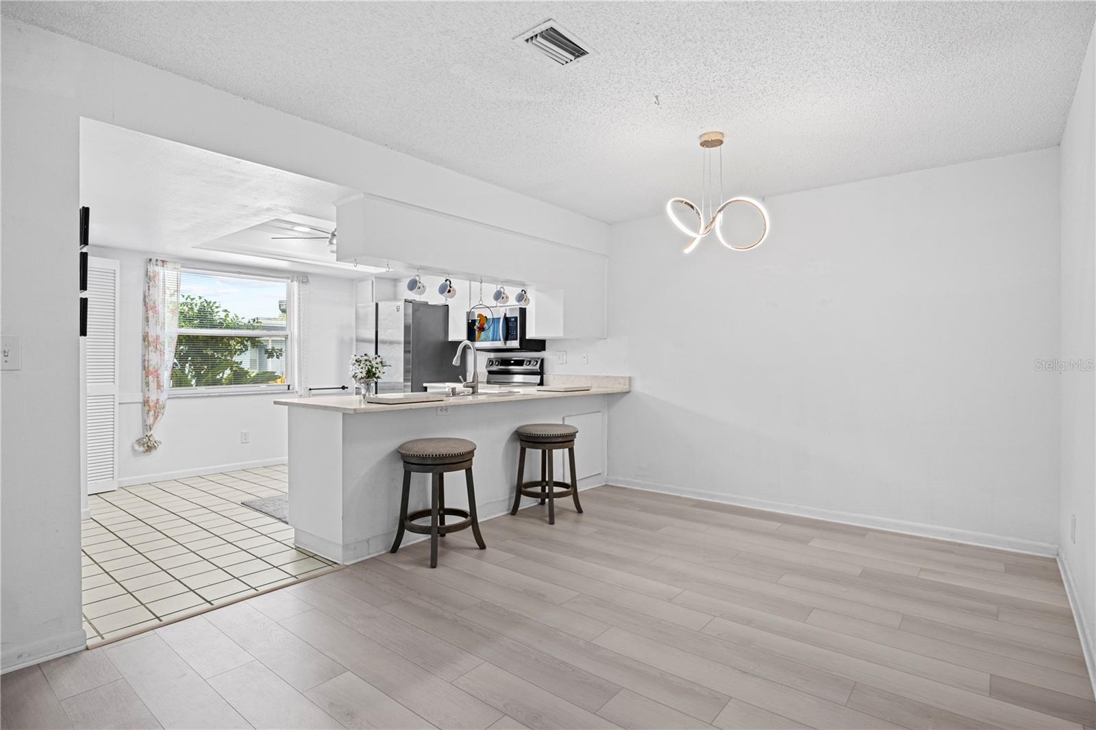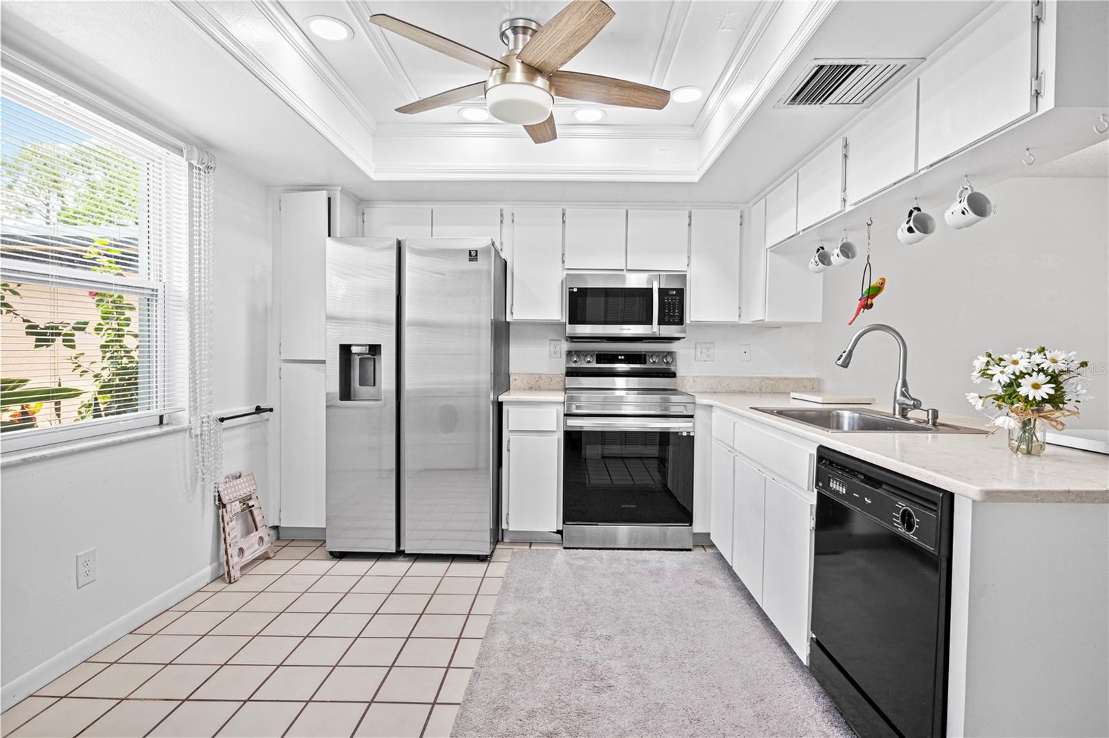 Charming 2-Bedroom, 2-Bathroom End Unit Condo – Act Fast! Roof 2024 AC 2024 - Brand New Welcome to this delightful end unit condo that won’t last long! Featuring a well-designed split floor plan, this home offers a spacious living experience with two bedrooms and two bathrooms. Key Features: Modern Kitchen: Double sink island quartz counter with newer appliances, overlooking a generous dining area and laundry closet with stacked washer and dryer. Spacious Living: Enjoy a bright living room with easy access to the Florida Room through sliding glass doors. Florida Room: A relaxing space with access to a private back patio, ideal for savoring beautiful sunsets. Master Suite: Includes a walk-in closet and direct access to the Florida Room. Versatile Second Bedroom: Perfect for guests or use as an office. Second Bathroom: Equipped with a tub/shower combo. Interior Details: New Upgraded Waterproof laminate floors throughout with tile in the kitchen and bathrooms. Community Amenities: Gated Community: 24-hour guard for added security. Recreational Options: Swimming, golf, bocce ball, a restaurant, and a lounge. Location Perks: Close to Trinity Shopping Plaza and Trinity Hospital, with easy access to Hillsborough and Pinellas counties. Additional Information: Maintenance Fee: Covers water, trash, cable, roof, exterior paint, yard maintenance, and escrow reserves for repairs. Non-Age Restricted: Suitable for all ages. Each unit has a private storage unit. Don’t miss out on this fantastic opportunity to live in a vibrant community with plenty of amenities. Schedule a viewing today!