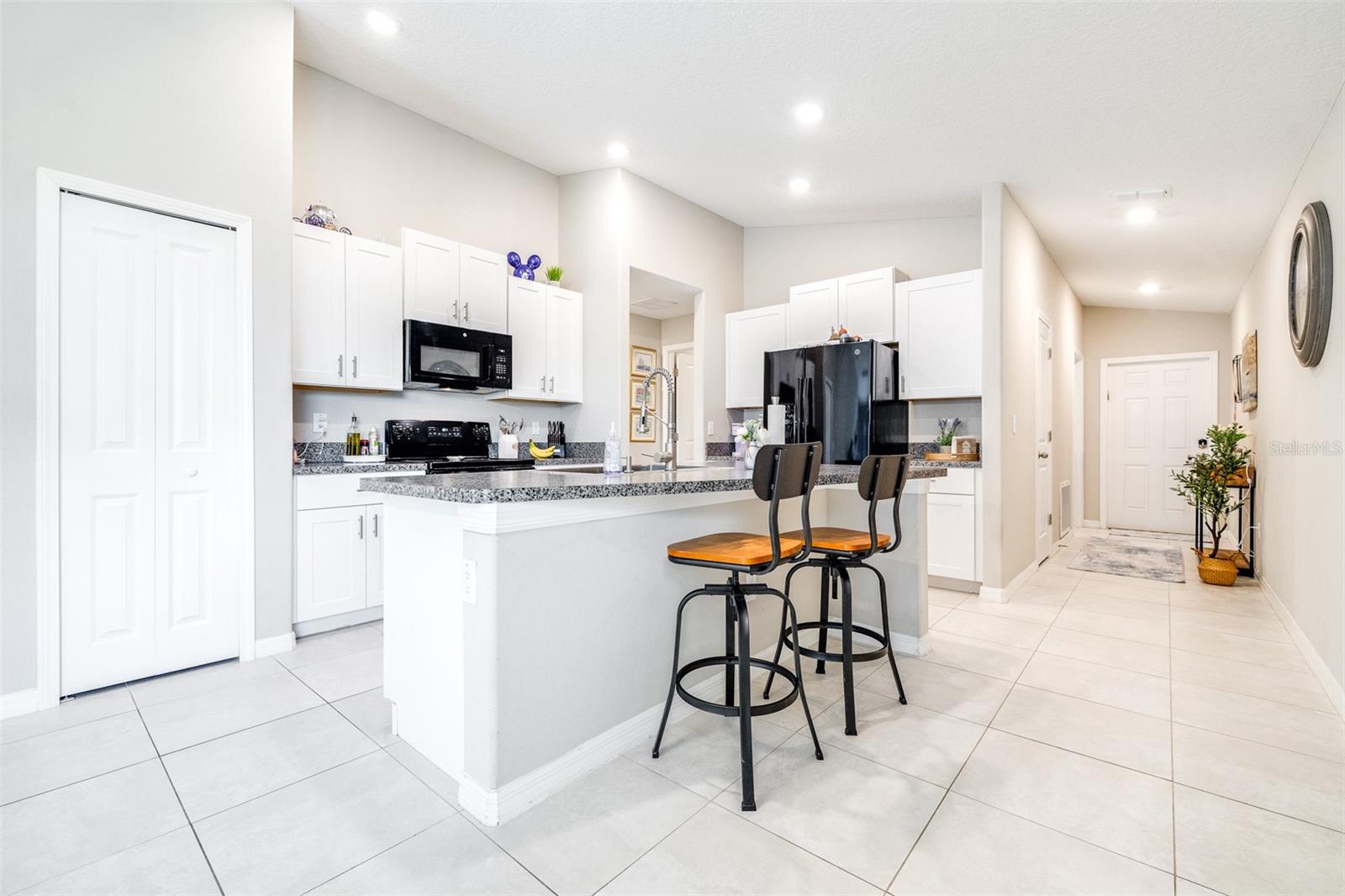 Welcome to this beautiful, like-new, 3-bedroom, 2-bathroom, 2-car garage, 1,448 square foot home located in the Copperspring community with a low quarterly HOA! This Annapolis model, built by Lennar in 2022, is situated on a tranquil dead-end/cul-de-sac street with no thru traffic. With 8 years remaining on the builder's 10-year structural warranty and metal hurricane shutters, you can move in with peace of mind and a sense of security. As you enter, you'll be greeted by a cozy covered front porch, perfect for relaxing mornings or evenings. The home's interior boasts an open-concept design, seamlessly blending the kitchen, dining, and living areas. The living room and kitchen feature tall ceilings, enhancing the spacious feel of the home. The kitchen is equipped with newer GE appliances, an oversized Kraus stainless steel sink, white shaker cabinets, and a convenient breakfast bar. Enjoy the durability of tile flooring throughout the common living spaces and bathrooms, with the comfort of carpet in the bedrooms. The master suite features an ensuite bathroom with a spacious walk-in closet. Step outside through the sliding glass door to the fully fenced backyard, complete with vinyl fencing for privacy and an expanded concrete slab, ideal for outdoor entertaining. The Coppersping community is one of the newest communities in New Port Richey and offers a gorgeous community pool and a playground. The community is conveniently located on State Road 54 with convenient access to US 19 for trips to the Gulf beaches to the south and the Nature Coast to the north. A short drive east takes you to the Suncoast Parkway which offers direct access to all things Tampa. This home combines modern amenities, stylish design, a serene setting, and a fabulous location, making it the perfect starter home or smaller home for those looking to downsize. Don't miss the opportunity to own this gem — schedule your private showing today!