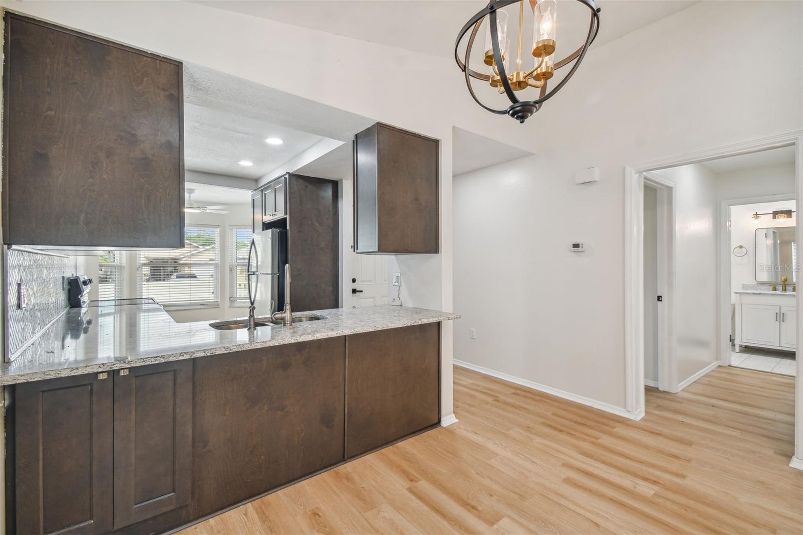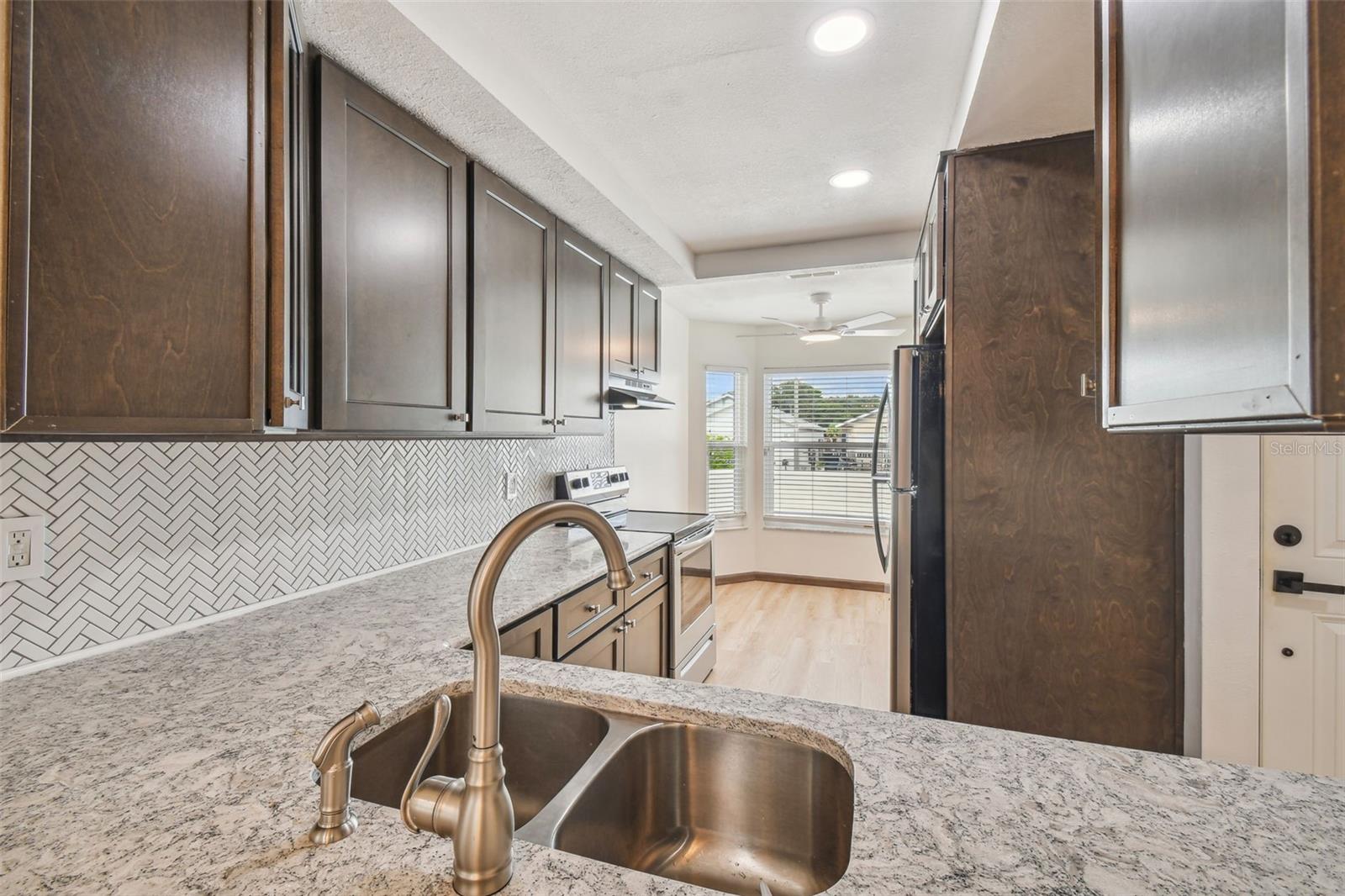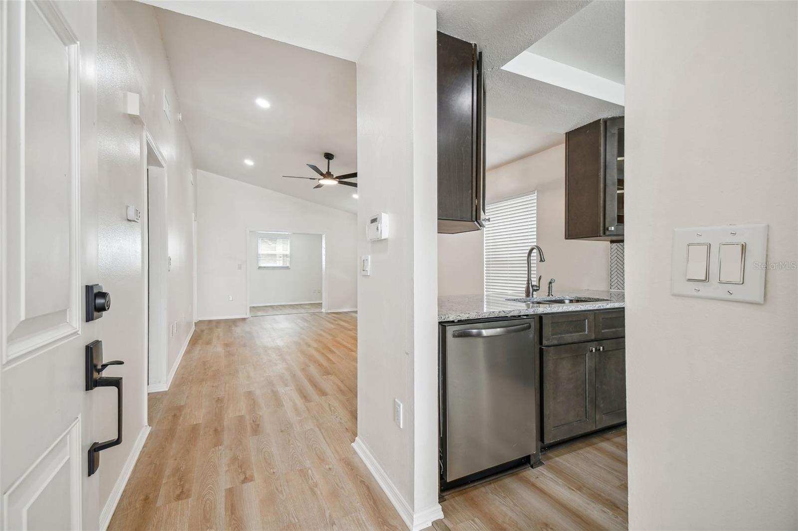 IMMACULATELY REFRESHED HOME in the heart of booming NEW PORT RICHEY! Featuring a SPACIOUS FLOOR PLAN that offers 2 bedrooms, 2 baths, 1,186 sq ft of living space, inside utility, and 1 car garage! Upon entry, you are greeted by a cozy family room area with tons of natural light and new luxury vinyl flooring that sprawls throughout! An updated DREAM KITCHEN awaits you with sleek counter tops, stainless steel appliances, trending cabinets, and tile backsplash. The large primary suite is a great escape with a nicely sized walk-in closet & enough room for any sized furniture. While the Primary bath offers a modern vanity, beautiful large shower with glass, & designer fixture. The secondary bedroom is a great size with ample closet space. Enjoy the outdoors with your FRONT & REAR patio that is perfect for entertaining friends and family! Home also features: ROOF 2021, WATER SOFTNER 2024, UPDATED WINDOWS 2018, HVAC 2017, FRESH PAINT, ALL NEW VINYL FLOORING, NEW LIGHT FIXTURES/FANS, WASHER & DRYER, & SO MUCH MORE! This location checks all the boxes with great schools, shopping, trendy dining options, medical, and a short drive to the Award-Winning beaches! Call for your appointment today!