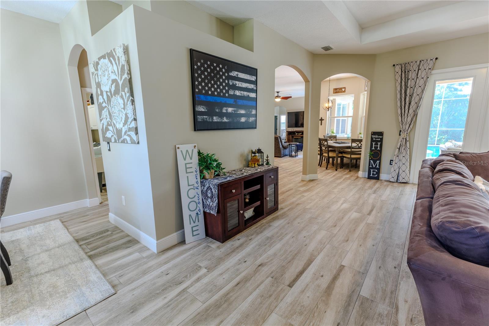 No water intrusion or home damage from the recent storms! Discover the epitome of Florida riverfront living with this exquisite home nestled in the highly sought after & privately gated Riviera community, featuring only 37 homes. This meticulously maintained 4-bedroom, 3-bath, oversized 3 car garage residence offers a perfect blend of luxury, comfort, & tranquility on a sprawling riverfront 1.47-acre lot. $180,000 in recent updates & upgrades! As you approach this remarkable property, you’ll be greeted by its lushly landscaped yard & striking curb appeal. Set back gracefully from the cul-de-sac, the home promises a sense of seclusion & serenity, providing a true slice of paradise. Step inside to find an inviting open floor plan adorned w/ wood-look tile throughout & elegant arched passageways. The formal dining area & living room w/ tray ceilings set the stage for special gatherings. French doors seamlessly connect the core living areas to the pool area, enhancing indoor-outdoor living. The spacious family room is perfect for casual relaxation. The kitchen has the chef's kitchen upgrade & is central in the home, featuring painted wood cabinets, granite countertops, a breakfast bar, & a cozy breakfast nook. Modern amenities include can lighting, a double oven, a cooktop, & a stylish tile backsplash. The primary suite is a luxurious retreat w/ ample space for a sitting area, a tray ceiling, double walk-in closets, & serene views of the pool, pond, & river. It also boasts direct access to the pool area. The ensuite bathroom has a Jacuzzi jetted tub, a full pass-through double shower, & double vanities. Three generously sized secondary bedrooms ensure plenty of space for family or guests. The dedicated office w/ French doors offers a quiet workspace. Additional features include a laundry room w/ extra cabinets & a laundry tub. Step outside to your personal paradise-a screened pool area with paver deck, offering breathtaking views of the pond, fountain, & river. Enjoy the heated spa with a cascading waterfall into the pool & entertain guests in the large under-roof outdoor living space. The backyard is fenced & sprinklers are fed by a well for irrigation. Experience nature like never before w/ your own wooden boardwalk that meanders through a serene nature area, ending at a firepit & riverside entertainment area. The floating boat dock provides full Anclote River access for fishing, boating, water activities & marveling at dolphins, manatees, & stunning sunsets. The Gulf of Mexico & fun places on the way there or back are just a pleasurable boat ride away! The property also includes a massive 30x36 side entry 3-car garage w/ ample space for cars, boats, jet skis, & more. One of the garage bays opens extra tall. 2024-NEW ROOF, NEW WATER HEATER. 2023-NEW WATER SOFTENER. 2022-NEW KITCHEN COUNTERS & CABINETS PAINTED, NEW KITCHEN SINK, DISHWASHER, MICROWAVE, NEW SEPTIC TANKS. 2021-POOL RESURFACED & NEW PAVERS, NEW GENERATOR HOOKUP, WELL & SPRINKLERS REFRESHED, OUTSIDE LIGHTING ADDED, EXTERIOR PAINTED. 2019-REMODELED SECONDARY BATHROOMS, NEW POOL/SPA HEATER. 2017-NEW FLOORING THROUGHOUT BUT PRIMARY BATHROOM. The community offers a boat ramp & is just minutes from Tarpon Springs Sponge Docks, renowned restaurants, & the Gulf of Mexico. Low HOA fees & no CDDs, w/ abundant land & aquatic wildlife to enrich your daily life. Don’t miss this rare opportunity to own a slice of Florida paradise where adventure, luxury & nature coexist in perfect harmony.
