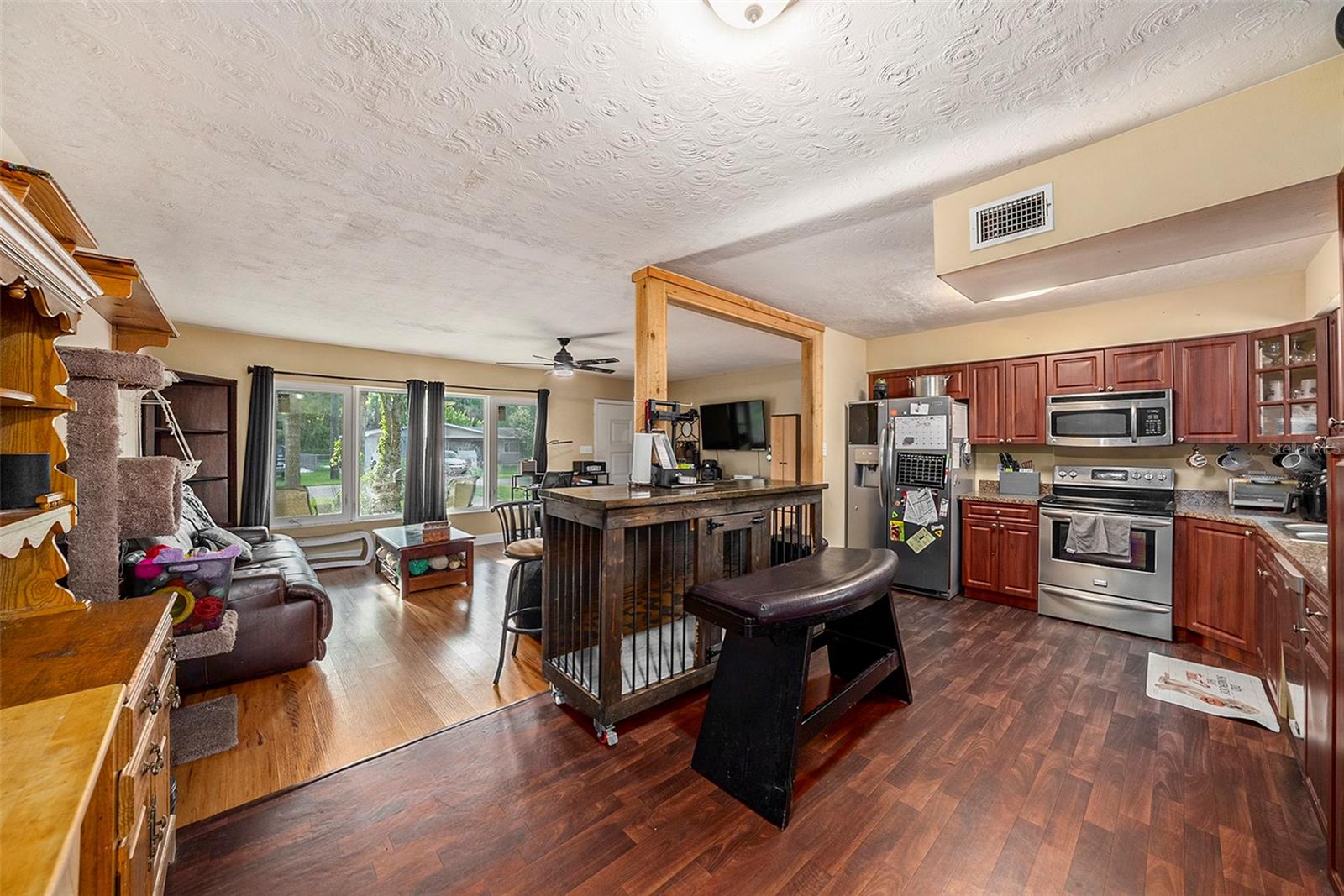 Welcome to this inviting three-bedroom, two-bathroom home in the heart of New Port Richey, situated on a spacious 1/3-acre lot that is perfect for both relaxation and entertaining. Recently updated in 2023 with brand new impact windows in the living room, hallway bathroom, and slider, this home offers enhanced safety and energy efficiency. It also comes with a 2 Lifetime transferable warranty for added peace of mind. Additional improvements include a new garage door and garage door opener, along with new insulation in the attic. An extra driveway provides convenient parking for boats or RVs, making this property ideal for outdoor enthusiasts. The 2018 AC and 2015 roof ensure comfort year-round. As you enter, you’ll immediately appreciate the open floor plan that enhances the flow of natural light throughout the home, thanks to the large front windows. The wood-look laminate flooring adds a touch of modern elegance and durability. The updated kitchen is a standout feature, equipped with newer stainless steel appliances and offering an open design that is perfect for both everyday living and entertaining. The primary bedroom boasts a private, attached bathroom, while the additional bedrooms are equally sized, providing ample space for family and guests. Step outside to your expansive, fenced-in backyard, ideal for enjoying the Florida weather. With a generous 26' x 12' concrete patio, you have plenty of room to set up a grill or lounge around. The large yard has tons of space to add a pool for those hot summer days. Located less than 5 minutes from Downtown New Port Richey, you'll have easy access to a variety of unique restaurants and shopping options. Plus, a short drive will take you to the Gulf beaches, where you can savor the sun and surf. This home combines practical amenities with a prime location, with NO HOA or CDD, making it a fantastic choice for your next move. Don’t miss the chance to make this property your own—schedule a visit today!