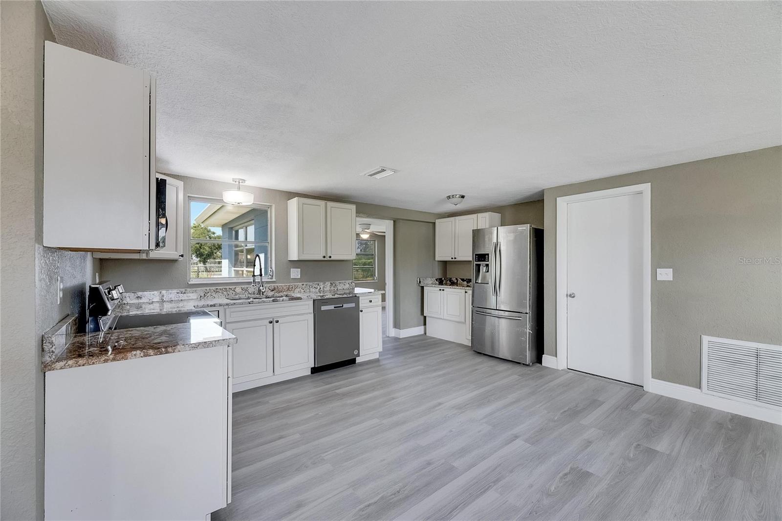 Welcome to your beautifully remodeled 3-bedroom, 2-bathroom home that is HIGH AND DRY in the heart of New Port Richey! This stunning residence has been completely updated with luxurious LVT flooring throughout and boasts an expansive open floorplan, perfect for modern living. The brand-new kitchen is a showstopper, featuring stainless steel appliances, sleek granite countertops, and ample space for both cooking and entertaining. The split-bedroom layout ensures privacy, while the spacious primary suite offers a peaceful retreat. Additionally, this home is handicap accessible, with features designed to ensure comfort and convenience for all. A large 2-car garage provides plenty of storage space. This home qualifies for Republic Bank’s Neighborhood Housing Program which offers 100% financing with rates as low as 3.99%.