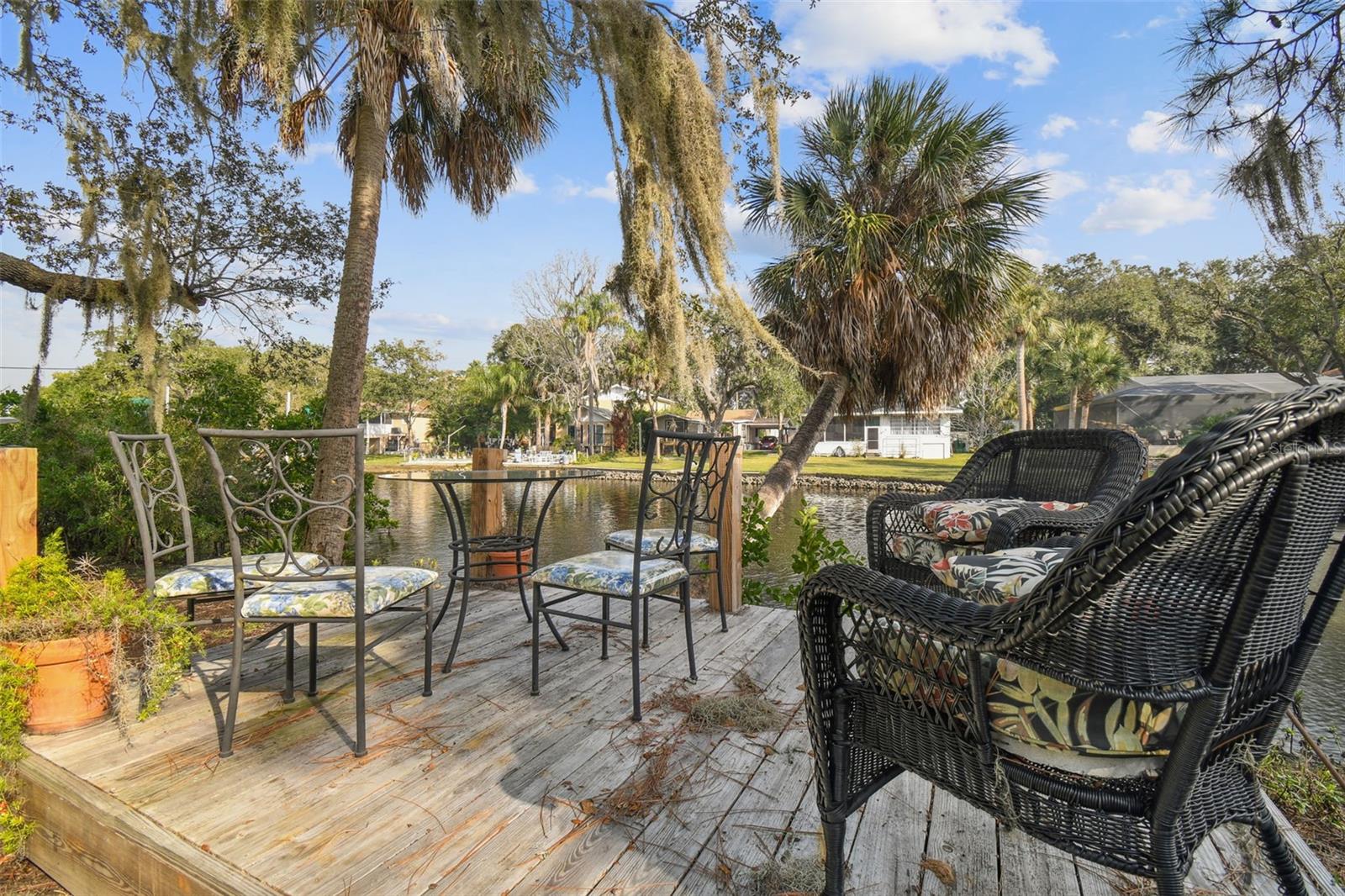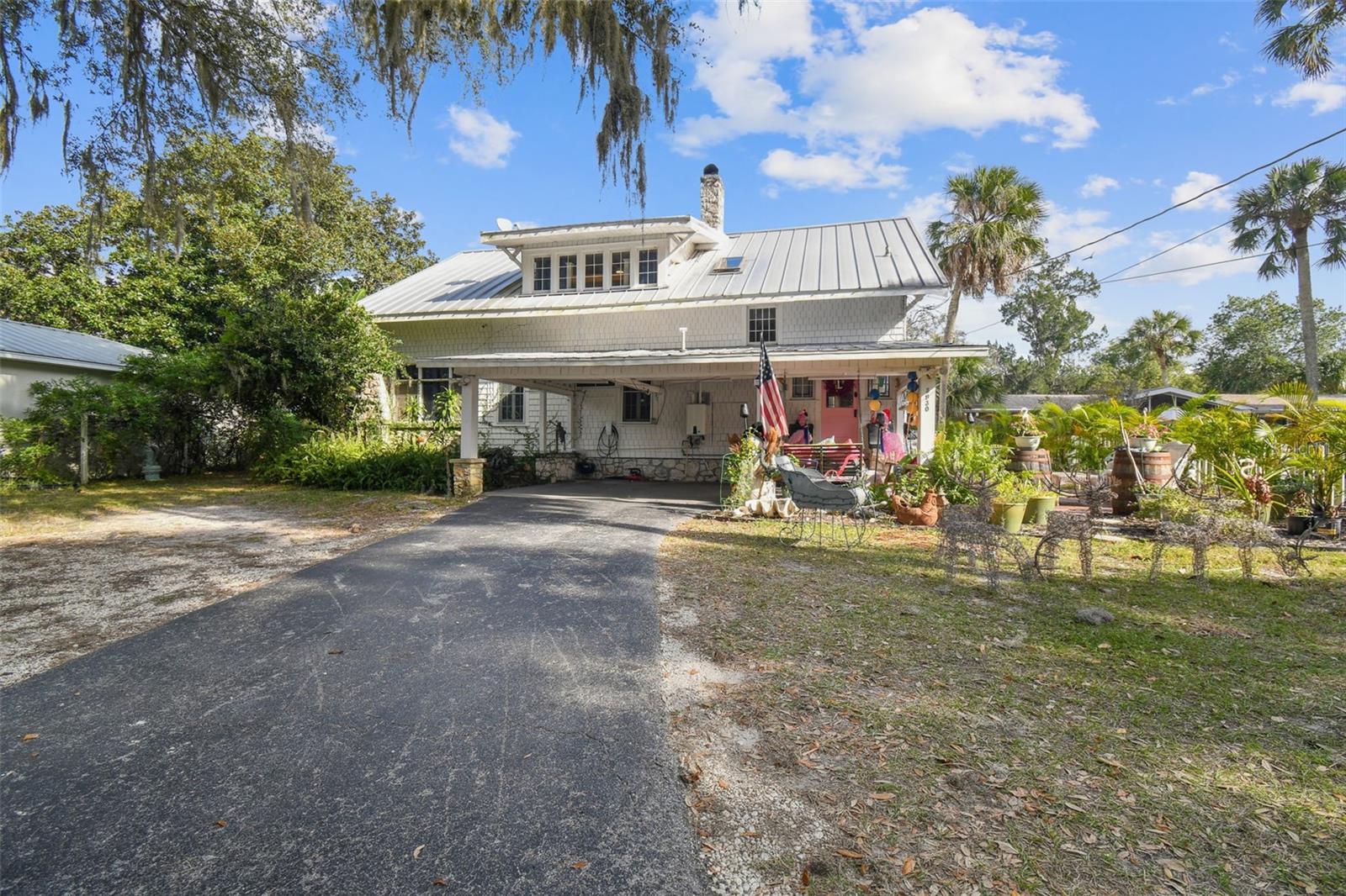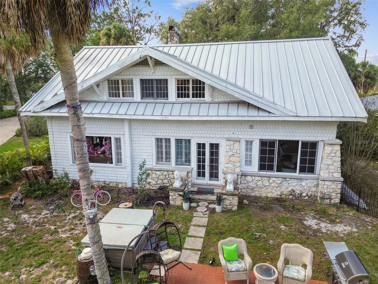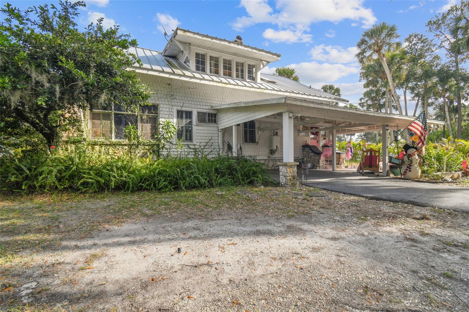 Discover the pinnacle of waterfront living with this extraordinary 4-bedroom, 3.5-bathroom estate in the vibrant City of New Port Richey, offering direct Gulf access. Nestled along 80 feet of the serene Cotee River, this home has never flooded, not even during the recent hurricane—a testament to its superior location and craftsmanship. Built over a century ago, this architectural masterpiece seamlessly blends historic charm with modern comfort. Set on more than half an acre, the estate is enveloped by Florida’s natural beauty, including mature palms, towering pines, and lush tropical landscaping. The exterior reflects lasting quality with a metal roof, stone construction, cypress wood shingles, and robust hardwood beams, ensuring a legacy of durability. Step inside to experience the home's timeless appeal. The kitchen is both functional and welcoming, with an oak breakfast bar, greenhouse window, abundant cabinetry, a walk-in pantry, and a stylish tile backsplash. Oakwood floors adorn the first level, while pinewood brings warmth to the second. Throughout the home, built-in features provide both character and convenience, merging old-world elegance with modern functionality. The formal dining room is a sophisticated haven, highlighted by a chandelier, stained glass windows, and a large picture window showcasing breathtaking river views. French doors lead to the lanai, offering a seamless flow for outdoor dining or peaceful riverfront relaxation. The living room stands as the heart of the home, featuring coffered wood-beam ceilings, a grand fireplace with a stone mantle, and elegant archways, creating an ambiance of timeless luxury. Upstairs, you’ll find four generously sized bedrooms, two bathrooms, and a laundry room—providing comfort and convenience for all. A detached one-car garage with power and water offers exciting possibilities: imagine converting it into a charming vacation rental or a cozy in-law suite, perfectly positioned by the river. This rare property invites you to own a piece of history where architectural elegance meets the tranquility of waterfront living—all while offering peace of mind from its impeccable, flood-free location. Don’t miss this unique opportunity to live your Florida dream!