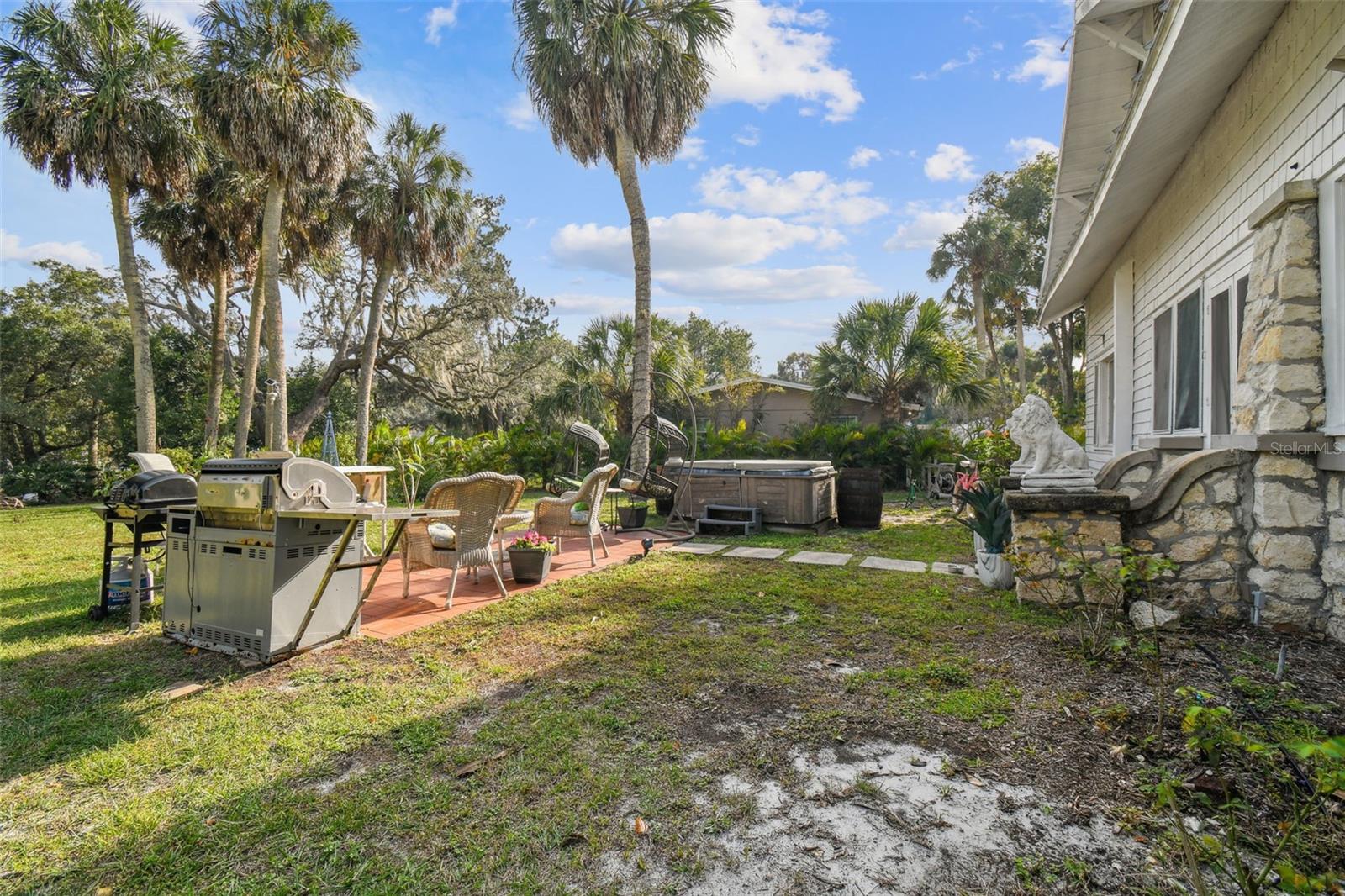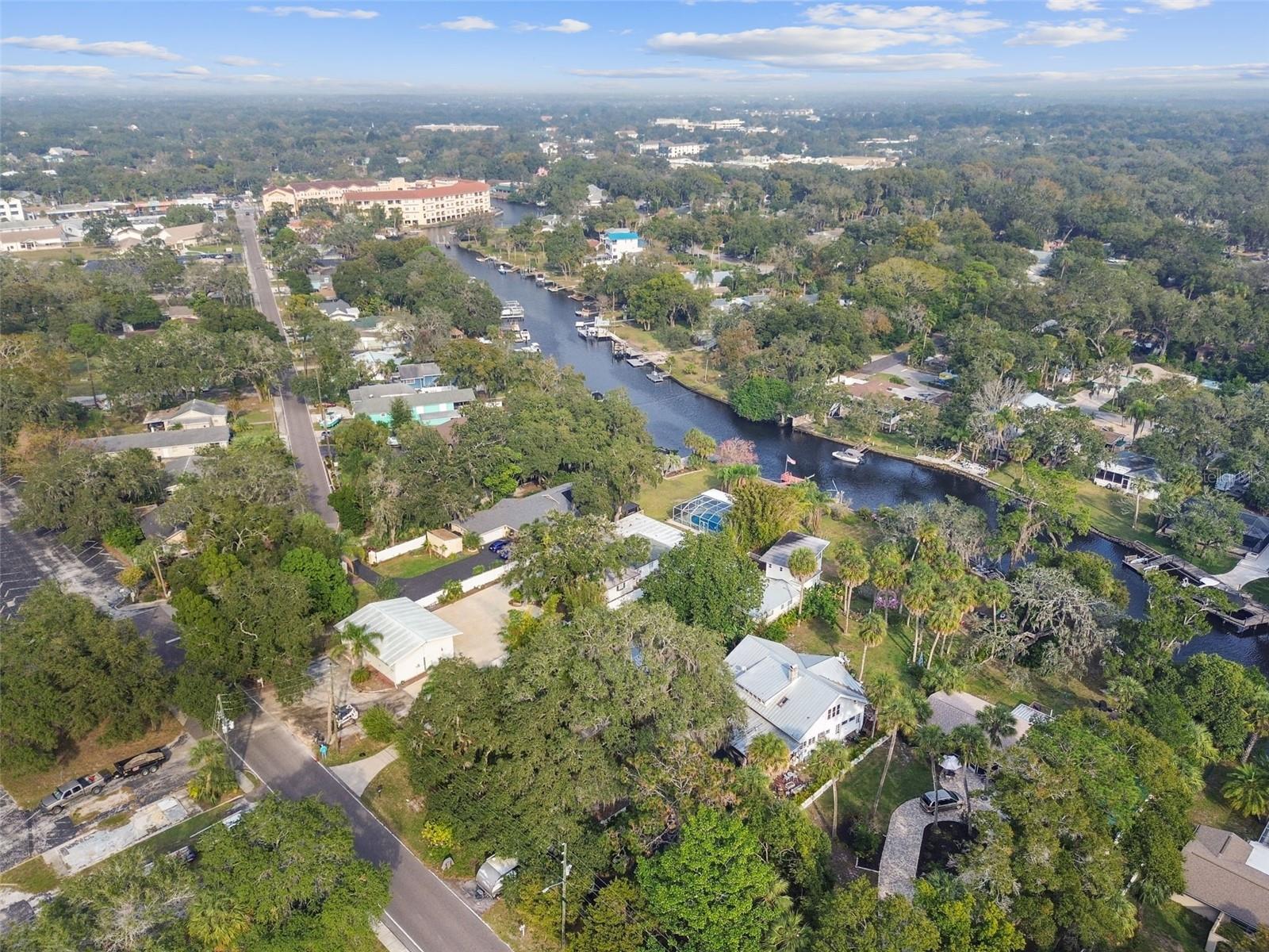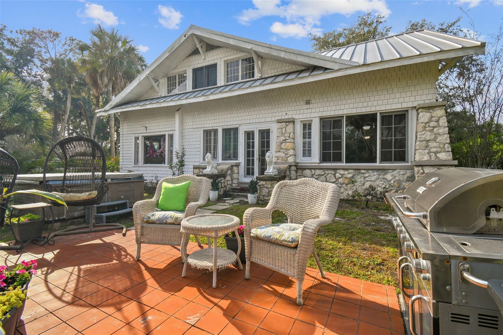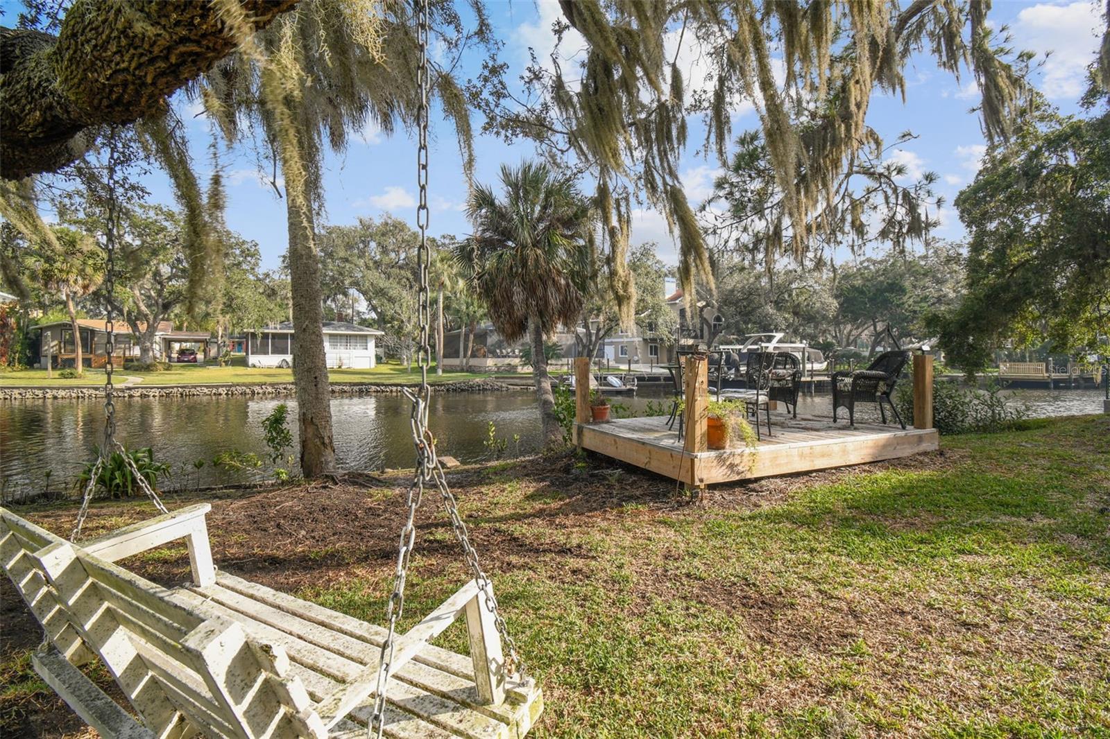 Discover the pinnacle of waterfront living with this extraordinary 4-bedroom, 3.5-bathroom estate in the vibrant City of New Port Richey, offering direct Gulf access. Nestled along 80 feet of the serene Cotee River, this home has never flooded, not even during the recent hurricane—a testament to its superior location and craftsmanship. Built over a century ago, this architectural masterpiece seamlessly blends historic charm with modern comfort. Set on more than half an acre, the estate is enveloped by Florida’s natural beauty, including mature palms, towering pines, and lush tropical landscaping. The exterior reflects lasting quality with a metal roof, stone construction, cypress wood shingles, and robust hardwood beams, ensuring a legacy of durability. Step inside to experience the home's timeless appeal. The kitchen is both functional and welcoming, with an oak breakfast bar, greenhouse window, abundant cabinetry, a walk-in pantry, and a stylish tile backsplash. Oakwood floors adorn the first level, while pinewood brings warmth to the second. Throughout the home, built-in features provide both character and convenience, merging old-world elegance with modern functionality. The formal dining room is a sophisticated haven, highlighted by a chandelier, stained glass windows, and a large picture window showcasing breathtaking river views. French doors lead to the lanai, offering a seamless flow for outdoor dining or peaceful riverfront relaxation. The living room stands as the heart of the home, featuring coffered wood-beam ceilings, a grand fireplace with a stone mantle, and elegant archways, creating an ambiance of timeless luxury. Upstairs, you’ll find four generously sized bedrooms, two bathrooms, and a laundry room—providing comfort and convenience for all. A detached one-car garage with power and water offers exciting possibilities: imagine converting it into a charming vacation rental or a cozy in-law suite, perfectly positioned by the river. This rare property invites you to own a piece of history where architectural elegance meets the tranquility of waterfront living—all while offering peace of mind from its impeccable, flood-free location. Don’t miss this unique opportunity to live your Florida dream!