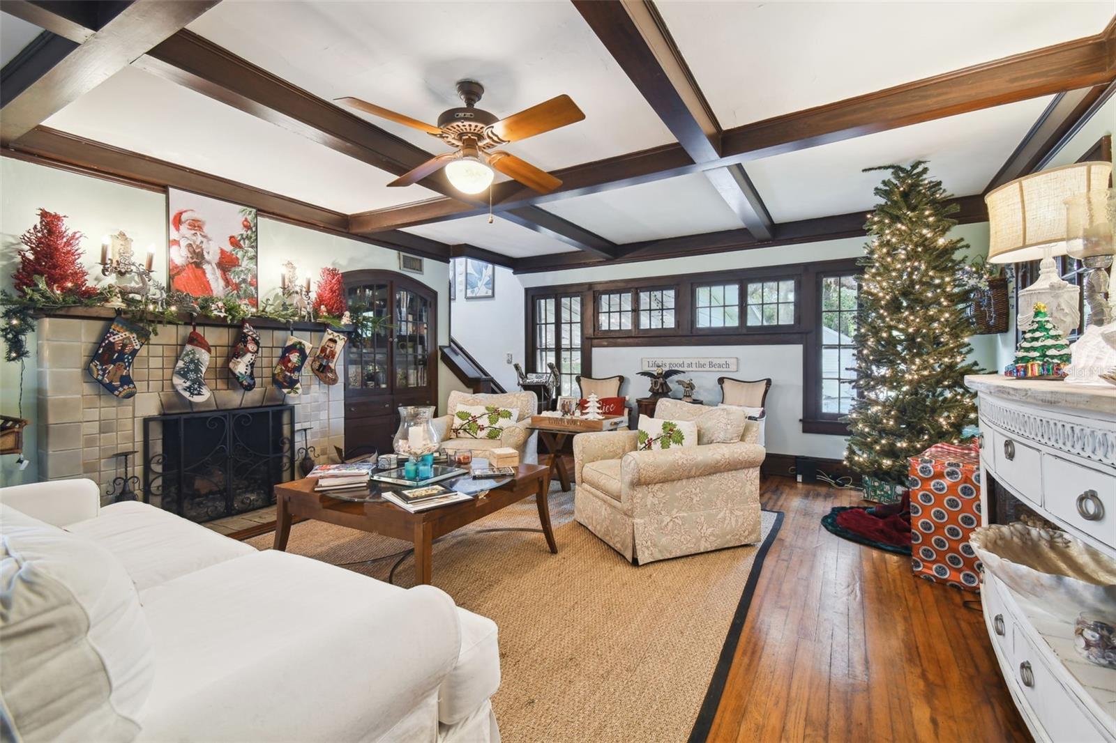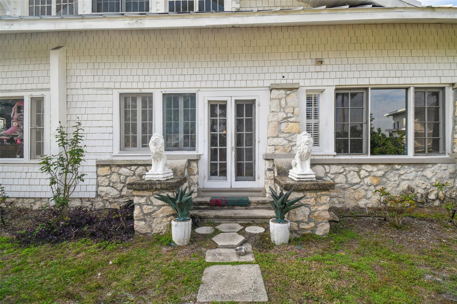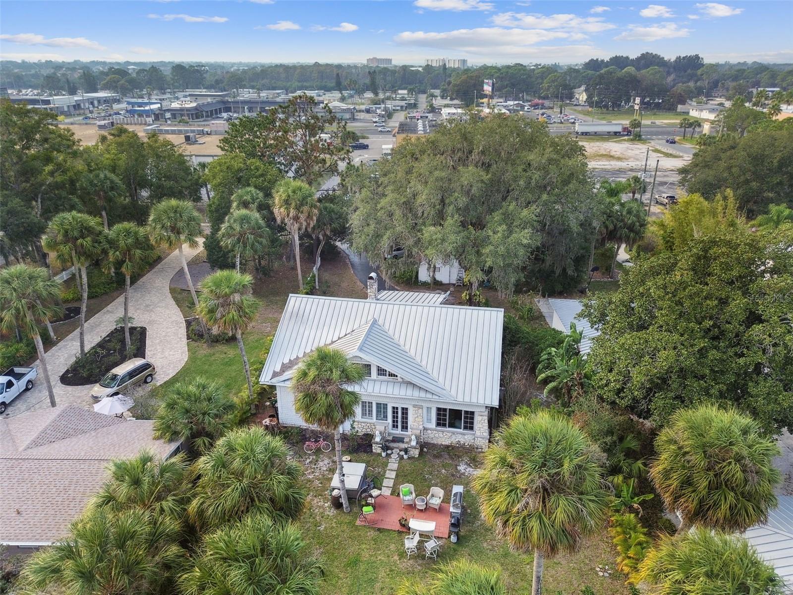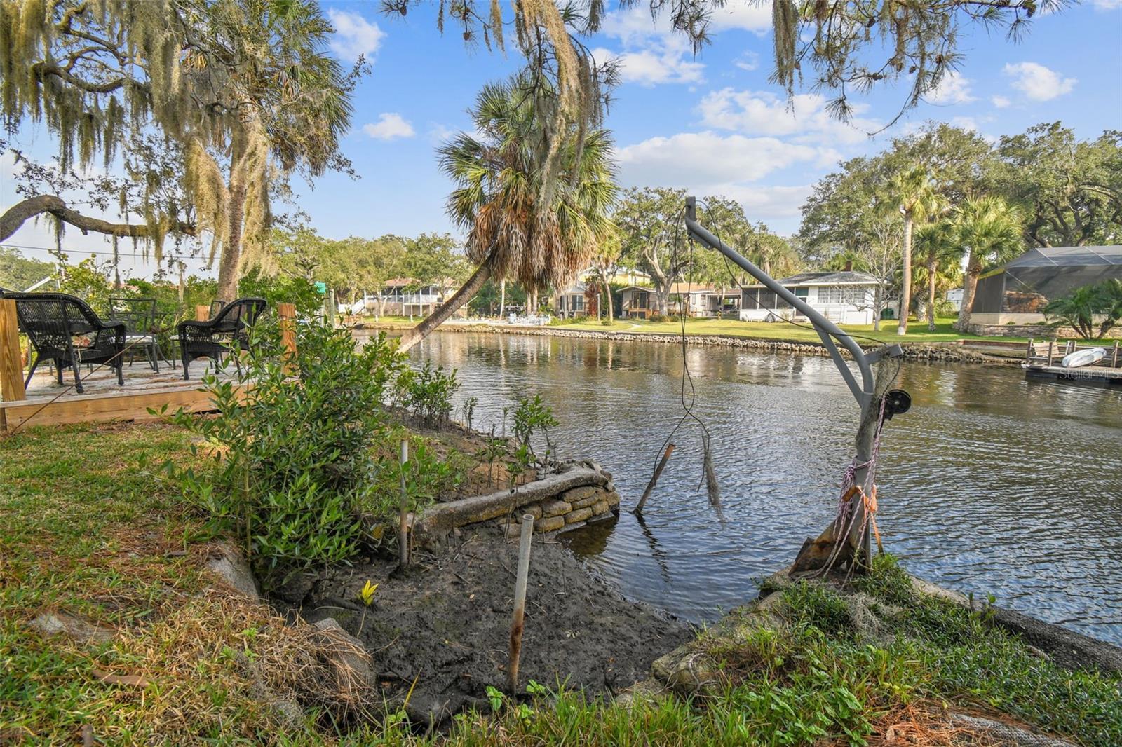 Discover the pinnacle of waterfront living with this extraordinary 4-bedroom, 3.5-bathroom estate in the vibrant City of New Port Richey, offering direct Gulf access. Nestled along 80 feet of the serene Cotee River, this home has never flooded, not even during the recent hurricane—a testament to its superior location and craftsmanship. Built over a century ago, this architectural masterpiece seamlessly blends historic charm with modern comfort. Set on more than half an acre, the estate is enveloped by Florida’s natural beauty, including mature palms, towering pines, and lush tropical landscaping. The exterior reflects lasting quality with a metal roof, stone construction, cypress wood shingles, and robust hardwood beams, ensuring a legacy of durability. Step inside to experience the home's timeless appeal. The kitchen is both functional and welcoming, with an oak breakfast bar, greenhouse window, abundant cabinetry, a walk-in pantry, and a stylish tile backsplash. Oakwood floors adorn the first level, while pinewood brings warmth to the second. Throughout the home, built-in features provide both character and convenience, merging old-world elegance with modern functionality. The formal dining room is a sophisticated haven, highlighted by a chandelier, stained glass windows, and a large picture window showcasing breathtaking river views. French doors lead to the lanai, offering a seamless flow for outdoor dining or peaceful riverfront relaxation. The living room stands as the heart of the home, featuring coffered wood-beam ceilings, a grand fireplace with a stone mantle, and elegant archways, creating an ambiance of timeless luxury. Upstairs, you’ll find four generously sized bedrooms, two bathrooms, and a laundry room—providing comfort and convenience for all. A detached one-car garage with power and water offers exciting possibilities: imagine converting it into a charming vacation rental or a cozy in-law suite, perfectly positioned by the river. This rare property invites you to own a piece of history where architectural elegance meets the tranquility of waterfront living—all while offering peace of mind from its impeccable, flood-free location. Don’t miss this unique opportunity to live your Florida dream!