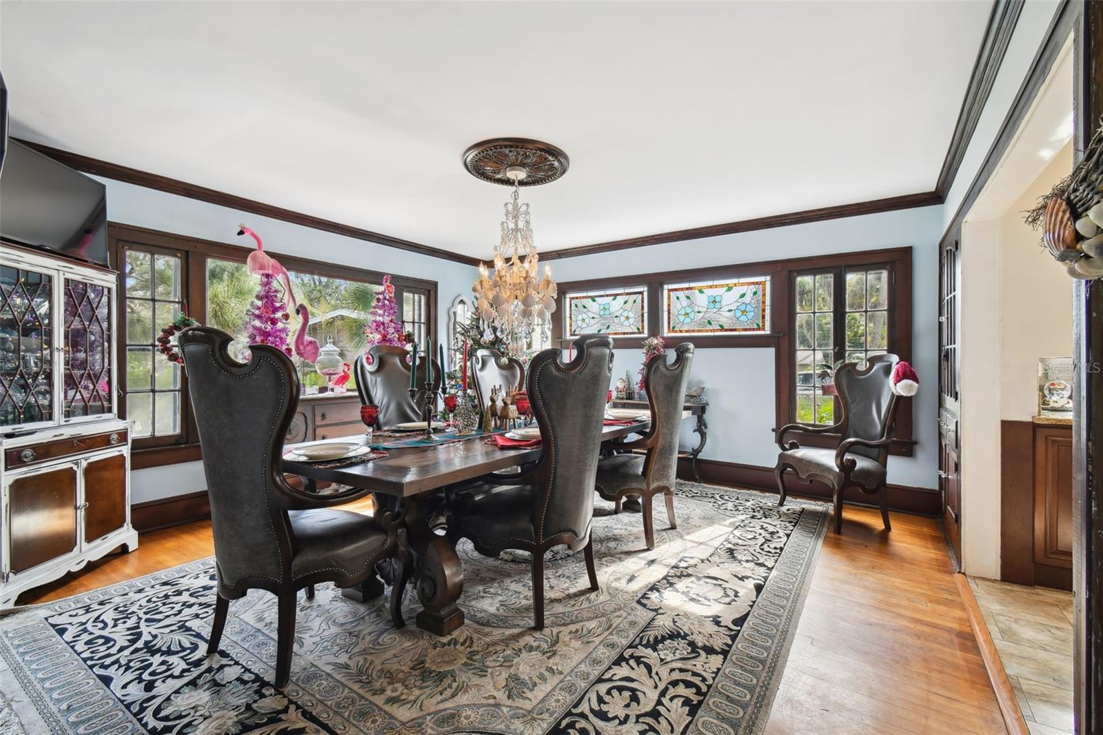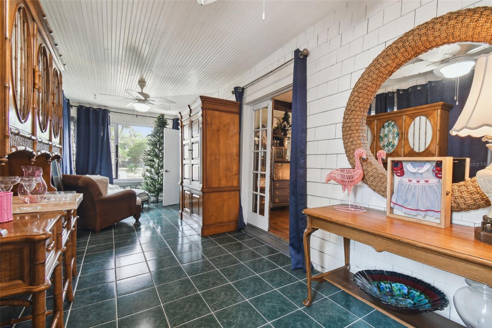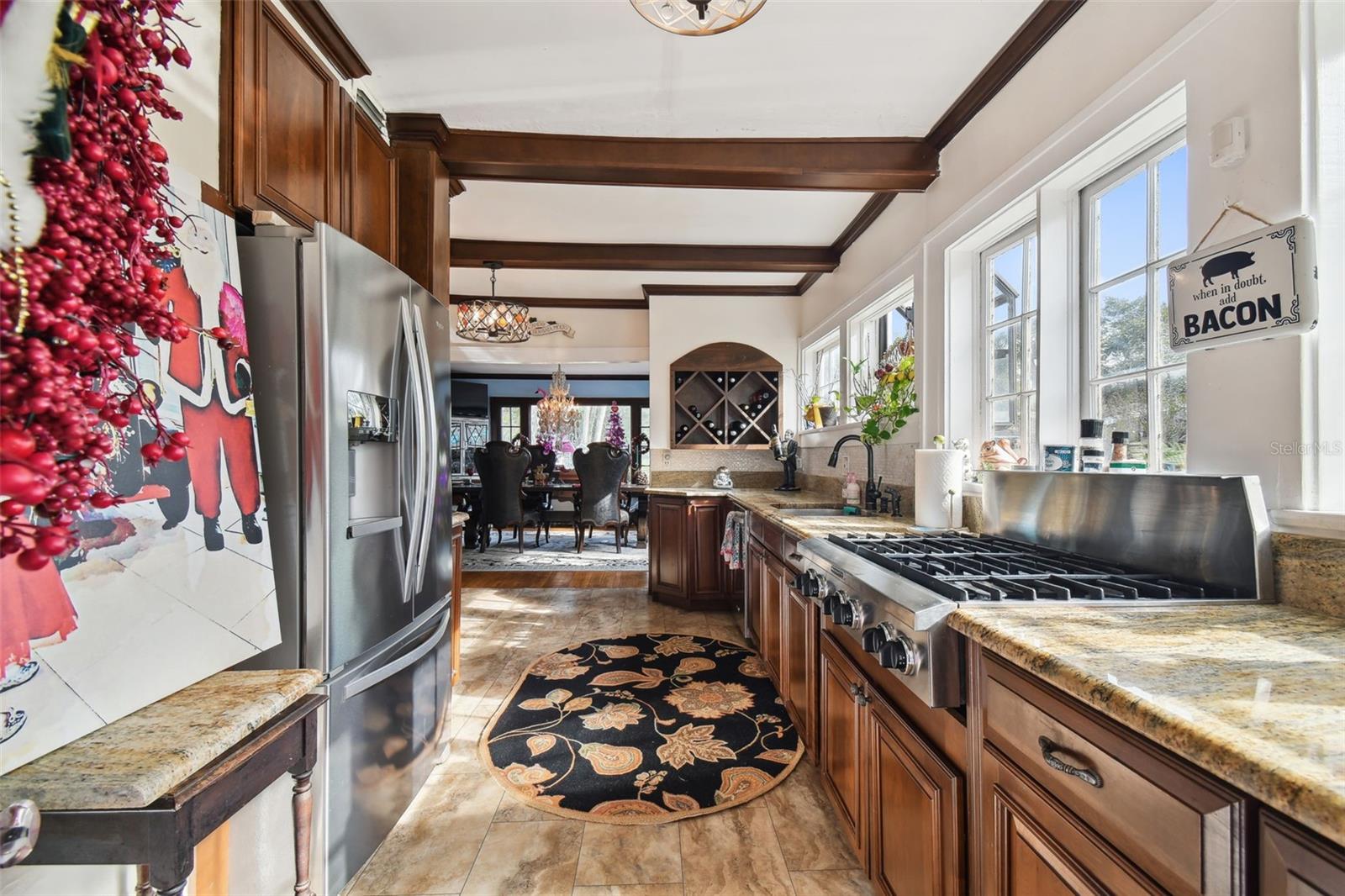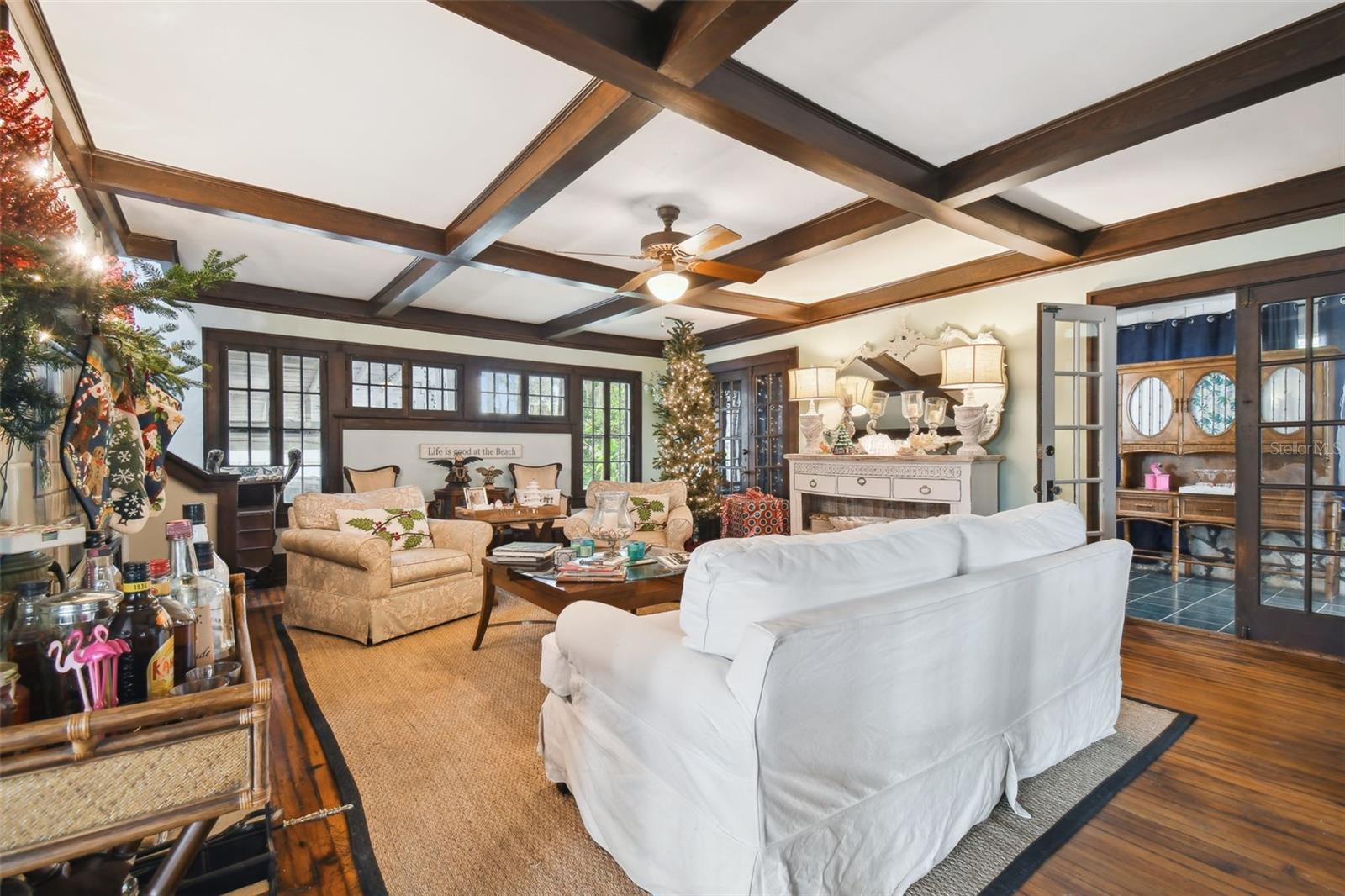 Discover the pinnacle of waterfront living with this extraordinary 4-bedroom, 3.5-bathroom estate in the vibrant City of New Port Richey, offering direct Gulf access. Nestled along 80 feet of the serene Cotee River, this home has never flooded, not even during the recent hurricane—a testament to its superior location and craftsmanship. Built over a century ago, this architectural masterpiece seamlessly blends historic charm with modern comfort. Set on more than half an acre, the estate is enveloped by Florida’s natural beauty, including mature palms, towering pines, and lush tropical landscaping. The exterior reflects lasting quality with a metal roof, stone construction, cypress wood shingles, and robust hardwood beams, ensuring a legacy of durability. Step inside to experience the home's timeless appeal. The kitchen is both functional and welcoming, with an oak breakfast bar, greenhouse window, abundant cabinetry, a walk-in pantry, and a stylish tile backsplash. Oakwood floors adorn the first level, while pinewood brings warmth to the second. Throughout the home, built-in features provide both character and convenience, merging old-world elegance with modern functionality. The formal dining room is a sophisticated haven, highlighted by a chandelier, stained glass windows, and a large picture window showcasing breathtaking river views. French doors lead to the lanai, offering a seamless flow for outdoor dining or peaceful riverfront relaxation. The living room stands as the heart of the home, featuring coffered wood-beam ceilings, a grand fireplace with a stone mantle, and elegant archways, creating an ambiance of timeless luxury. Upstairs, you’ll find four generously sized bedrooms, two bathrooms, and a laundry room—providing comfort and convenience for all. A detached one-car garage with power and water offers exciting possibilities: imagine converting it into a charming vacation rental or a cozy in-law suite, perfectly positioned by the river. This rare property invites you to own a piece of history where architectural elegance meets the tranquility of waterfront living—all while offering peace of mind from its impeccable, flood-free location. Don’t miss this unique opportunity to live your Florida dream!