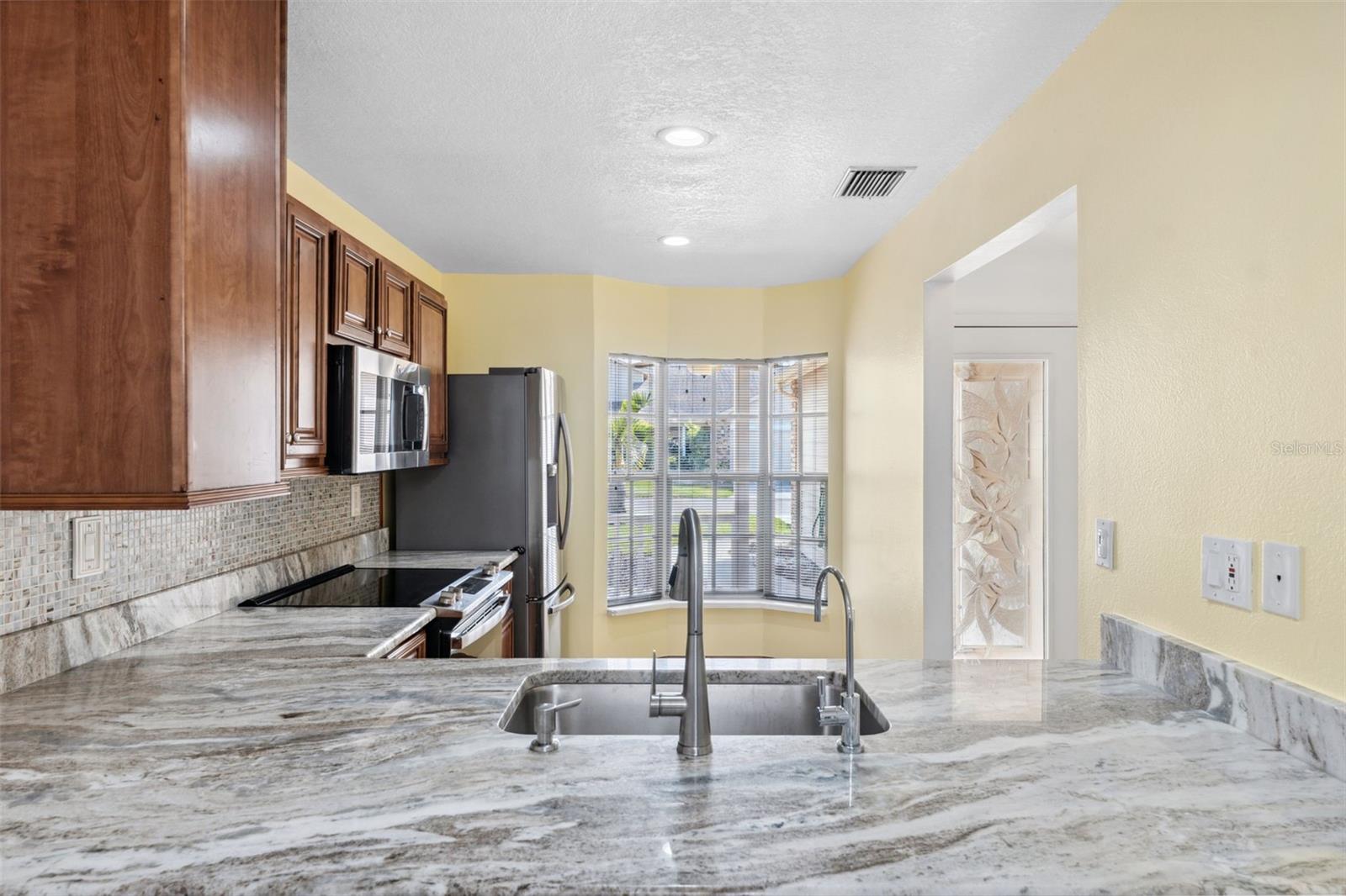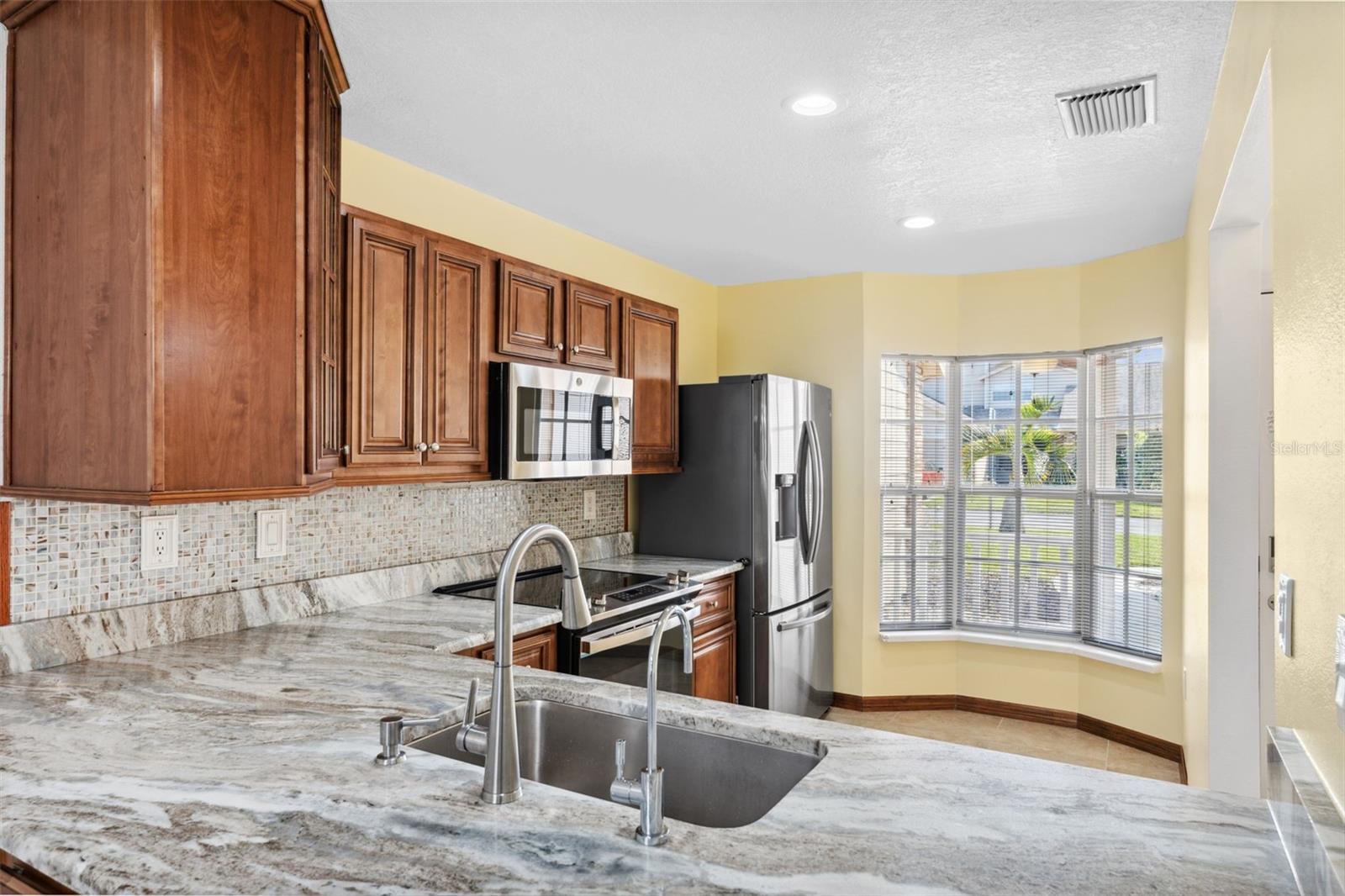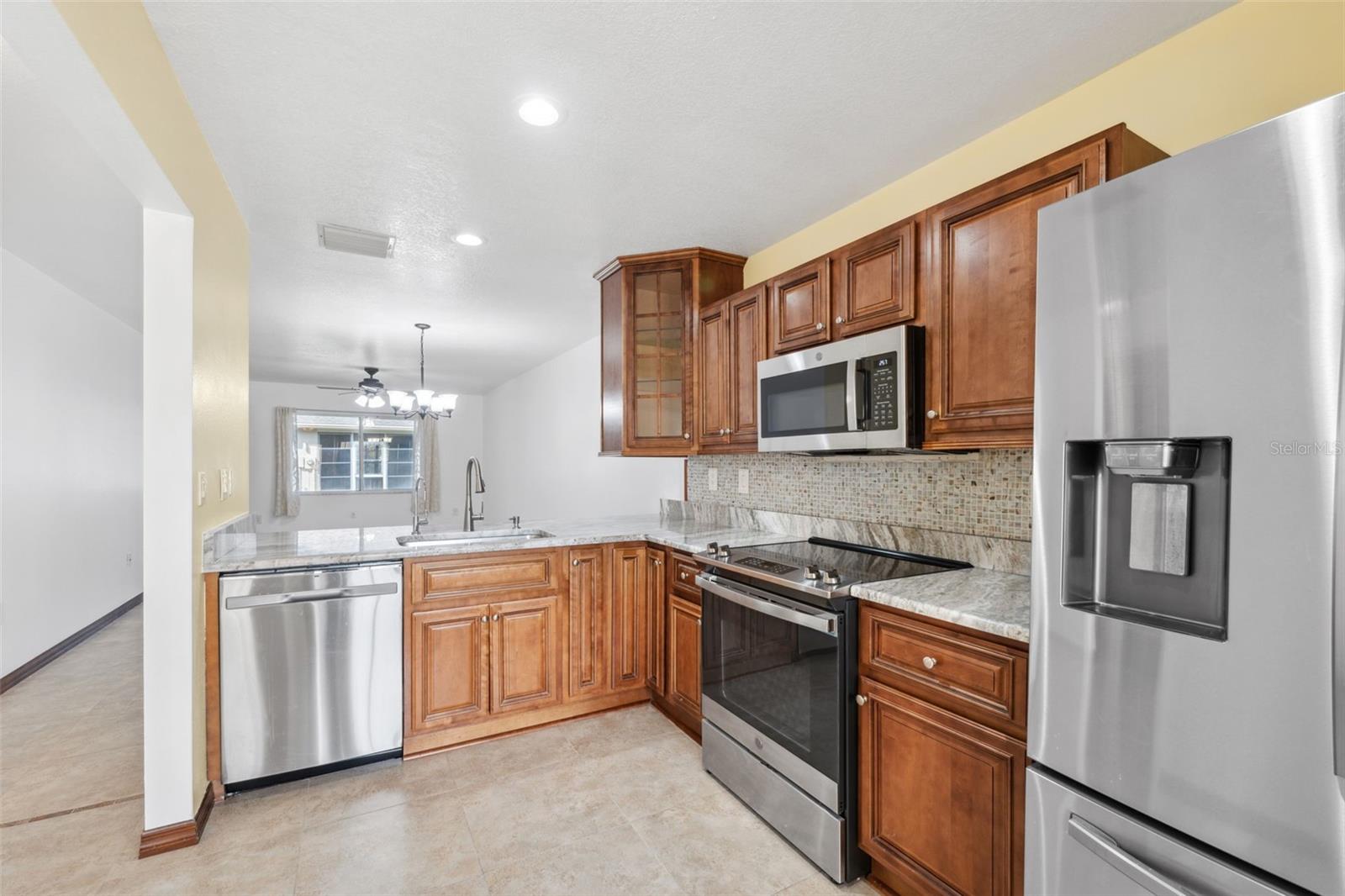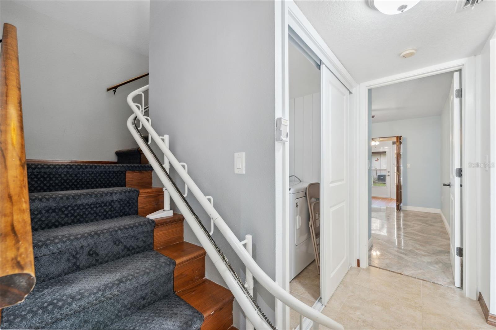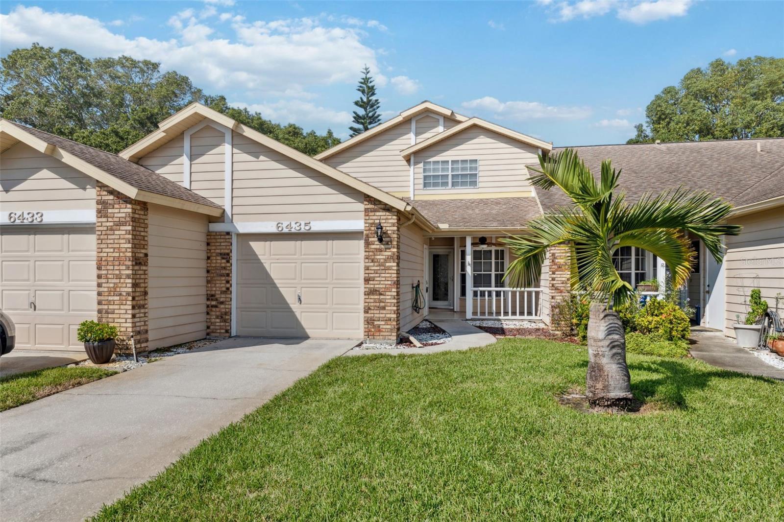 Huge Price Improvement! Home is eligible for up to $50,000 down payment assistance! Take a look at this impressive 2-story townhouse-style villa located in the beautiful age-restricted (55+) community of Briar Patch in New Port Richey. This unique property offers almost 1400 square feet of living space (over 1800 total square feet) with an open floor plan, three bedrooms, two bathrooms, and an attached garage. The home features a front porch and backyard space, allowing you to enjoy the Florida weather. It has been meticulously maintained, boasts several new upgrades, including a new air conditioner, stylish open kitchen with granite countertops, and an enlarged bar area, and a new saltless water filtering system. The interior has been freshly painted with trendy new wall colors, updated ceilings (popcorn removed), light fixtures, laundry room and newly painted garage floor, making it very appealing. The first-floor space is designed to accommodate a potential first-floor master bedroom and offers ample storage space and open living areas. A standout feature of the home is the installed moving stair chair, making travel between the two floors effortless. This addition adds significant value to the property and provides peace of mind for aging in place, especially for 55+ buyers. Please note that dogs are not allowed in this community, but owners may have a cat or service animals. Briar Patch offers a range of amenities, including a beautiful pool, a high-end entrance, and low HOA fees of $215 monthly, which cover roof replacement, and exterior maintenance. This home and community has so much to exhibit, definitely worth a tour!