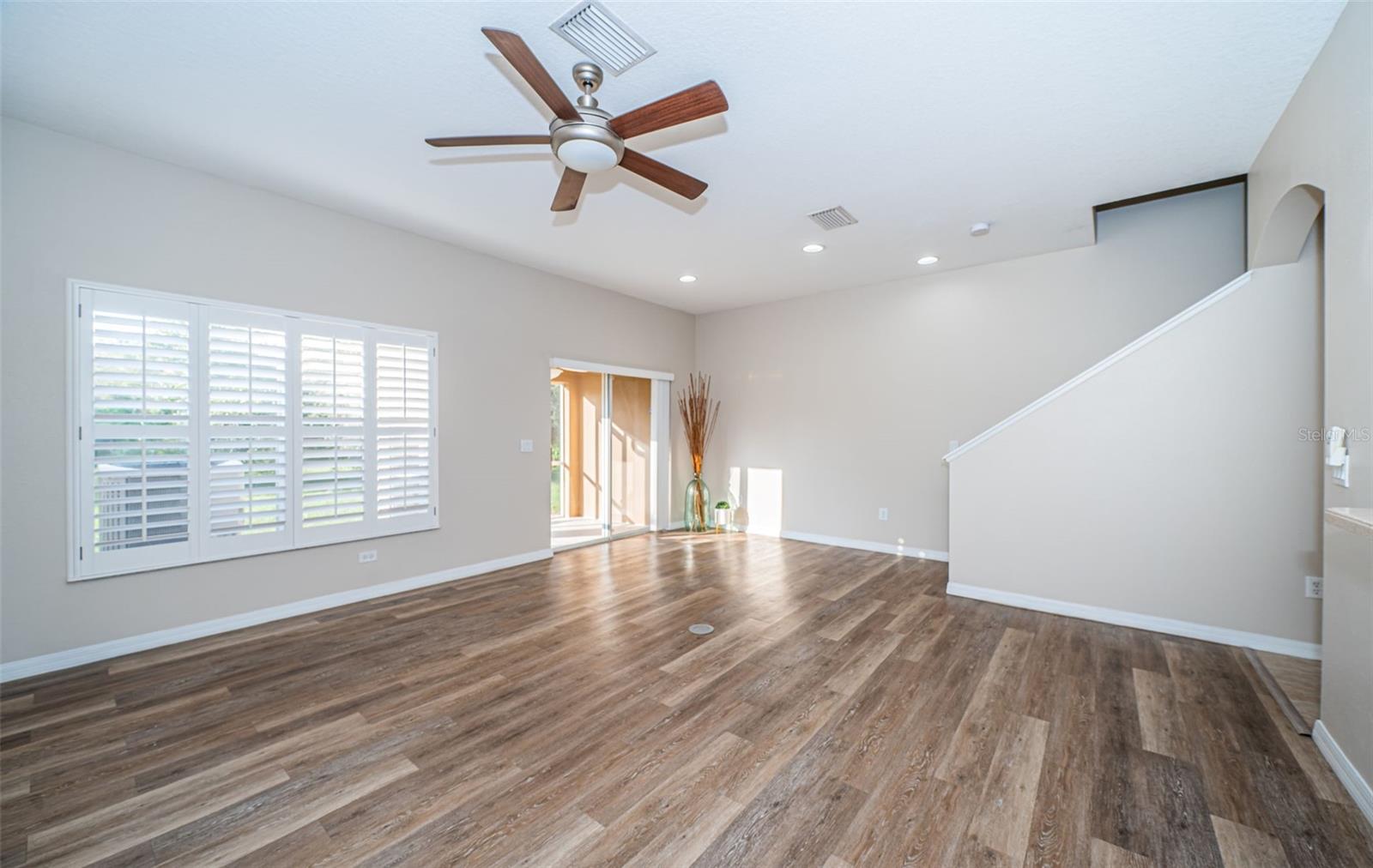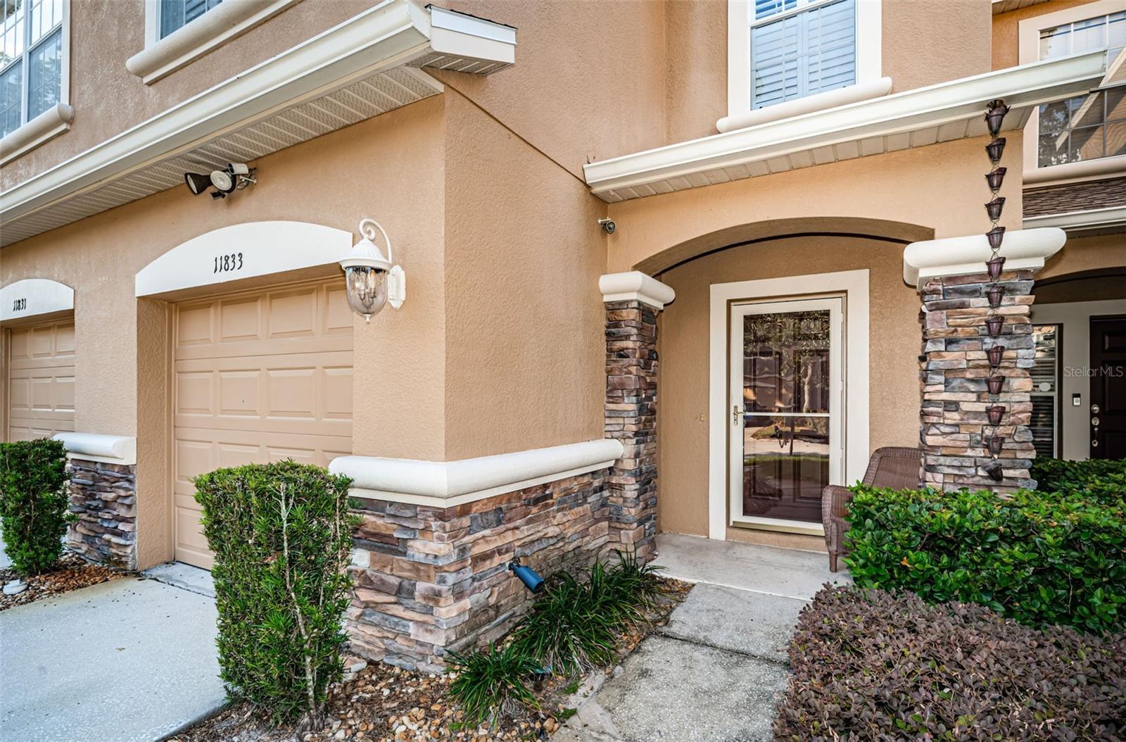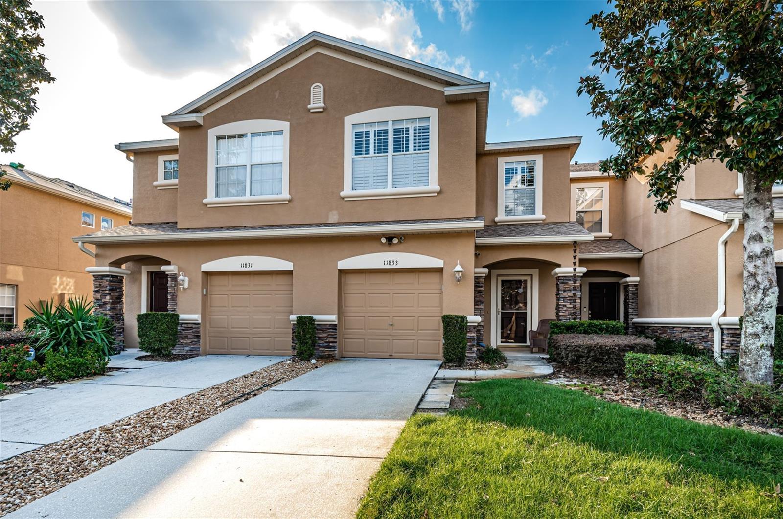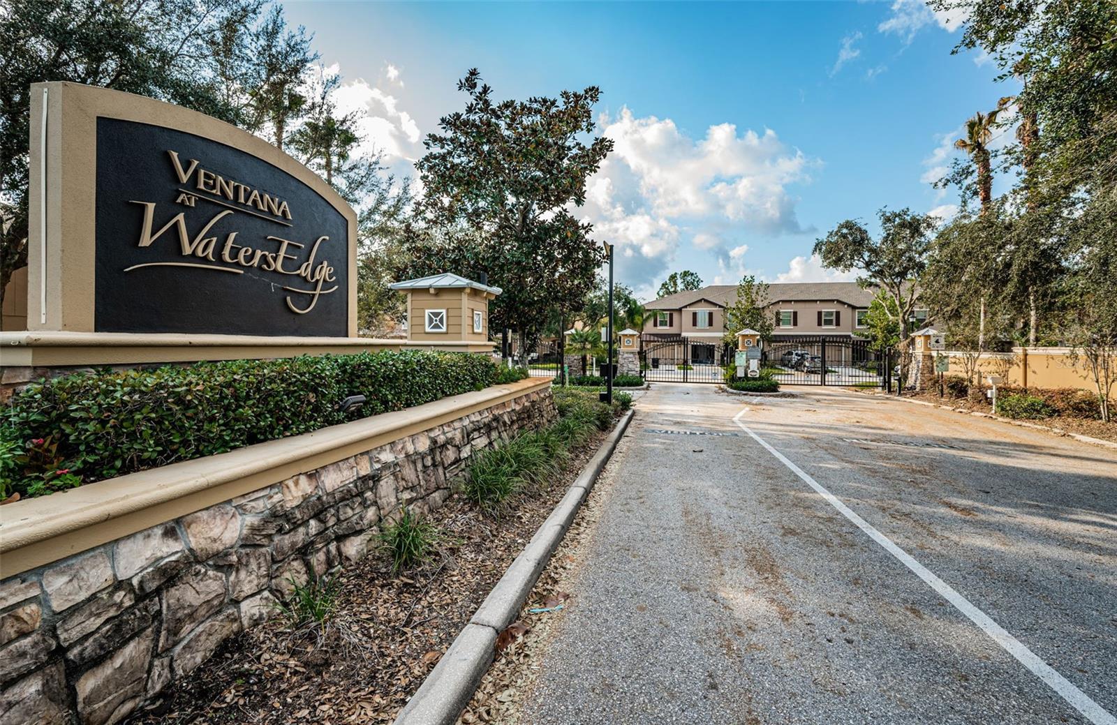 !!! NEW PRICE !!! A BRAND-NEW roof was installed in June of 2024. No known damage from the hurricanes. GATED COMMUNITY with amenities galore! No rear neighbors! CONSERVATION VIEWS! Ventana at Water’s Edge is home to this lovely, two-story, 3-bedroom, 2.5 bath residence with a one-car garage. The exterior is trimmed in beautiful stone accents that frame the front porch’s portico while the screened lanai (boasting a NEW ceiling fan and NEWLY painted flooring!) offers sweeping conservation views that make for a private retreat. From the entry foyer on through the hallway you can see out to the natural landscaping of the preservation. Sleek plantation shutters adorn the windows reflecting beautiful Florida sunlight off the newer laminate flooring and the NEW interior paint throughout. With recessed lighting, the eat-in kitchen is open and airy. Besides a NEW dishwasher and microwave, it features crown molding topped cabinets, stainless steel appliances, a pantry closet, and a long breakfast bar, opening onto the spacious living room providing a very welcoming feel that integrates all the common areas. The floorplan is smartly designed with the powder room on the first floor and the well-appointed laundry room on the second. Upstairs, the master bedroom suite is light and bright. A handy built-in desk sits outside of the suite. All tile floors were just professionally cleaned, grout stained, and sealed. This gated community boasts direct access to West Moon Lake. It offers a spectacular clubhouse; a tremendous pool surrounded by pavers, palm trees, and a shaded veranda; a splash pool for the little ones with a slide and sprinklers; two parks, a well-equipped fitness center; a sand-covered playground; a basketball court; and a fishing pier/boat ramp. HOA fees include 24-hour security, pressure cleaning and painting, internet, cable, landscaping/mowing, and outside irrigation. All this in one-of-a-kind New Port Richey with easy access to all!