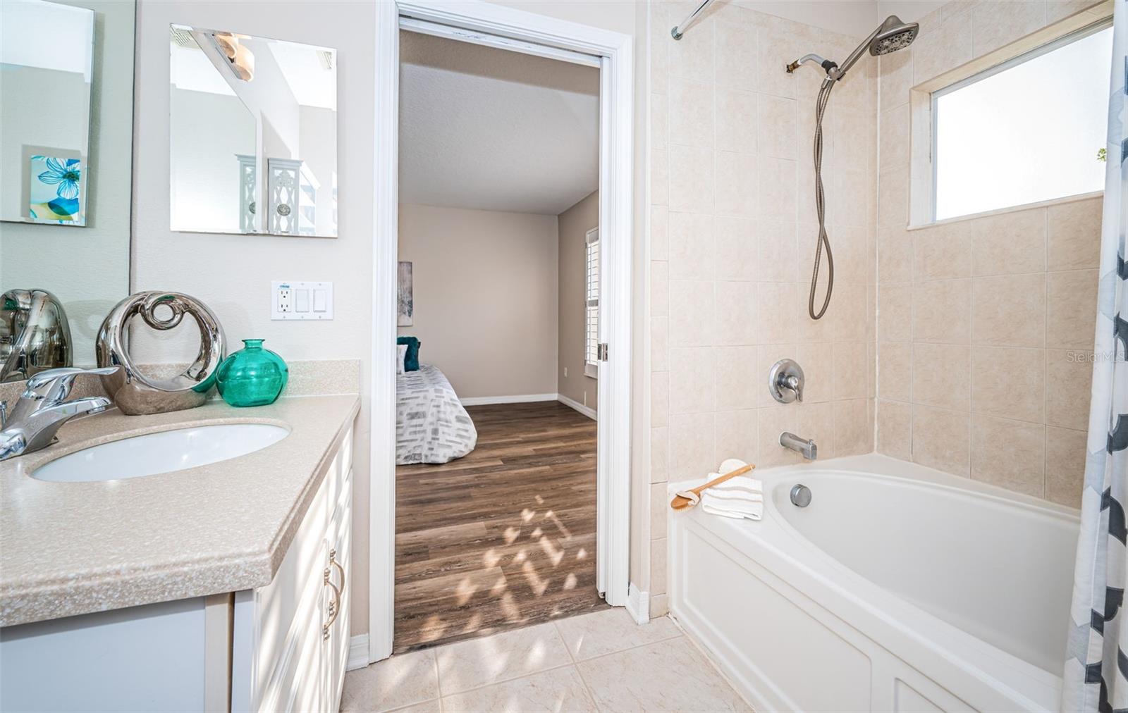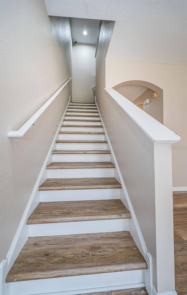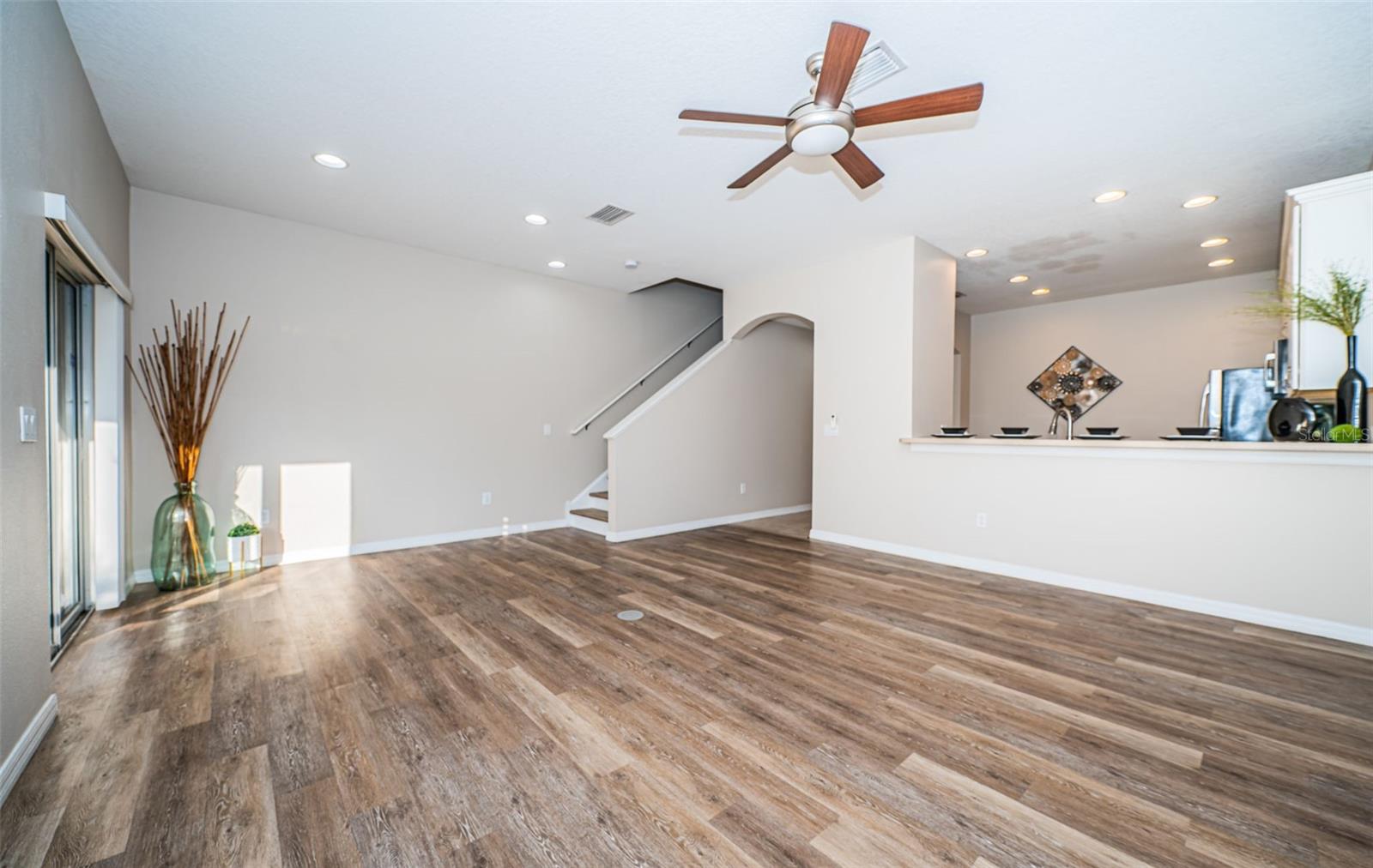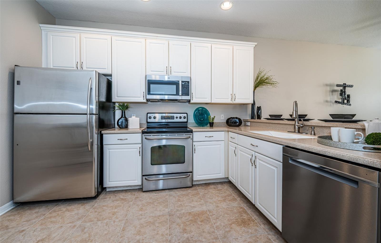 !!! NEW PRICE !!! A BRAND-NEW roof was installed in June of 2024. No known damage from the hurricanes. GATED COMMUNITY with amenities galore! No rear neighbors! CONSERVATION VIEWS! Ventana at Water’s Edge is home to this lovely, two-story, 3-bedroom, 2.5 bath residence with a one-car garage. The exterior is trimmed in beautiful stone accents that frame the front porch’s portico while the screened lanai (boasting a NEW ceiling fan and NEWLY painted flooring!) offers sweeping conservation views that make for a private retreat. From the entry foyer on through the hallway you can see out to the natural landscaping of the preservation. Sleek plantation shutters adorn the windows reflecting beautiful Florida sunlight off the newer laminate flooring and the NEW interior paint throughout. With recessed lighting, the eat-in kitchen is open and airy. Besides a NEW dishwasher and microwave, it features crown molding topped cabinets, stainless steel appliances, a pantry closet, and a long breakfast bar, opening onto the spacious living room providing a very welcoming feel that integrates all the common areas. The floorplan is smartly designed with the powder room on the first floor and the well-appointed laundry room on the second. Upstairs, the master bedroom suite is light and bright. A handy built-in desk sits outside of the suite. All tile floors were just professionally cleaned, grout stained, and sealed. This gated community boasts direct access to West Moon Lake. It offers a spectacular clubhouse; a tremendous pool surrounded by pavers, palm trees, and a shaded veranda; a splash pool for the little ones with a slide and sprinklers; two parks, a well-equipped fitness center; a sand-covered playground; a basketball court; and a fishing pier/boat ramp. HOA fees include 24-hour security, pressure cleaning and painting, internet, cable, landscaping/mowing, and outside irrigation. All this in one-of-a-kind New Port Richey with easy access to all!