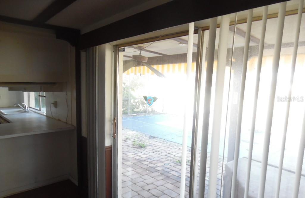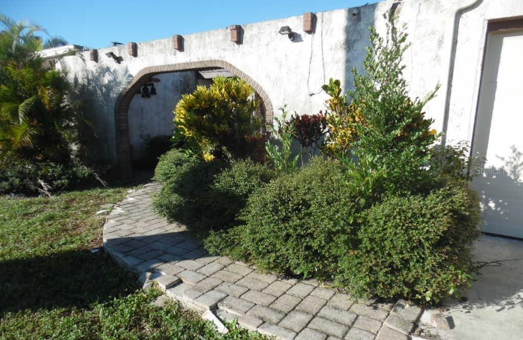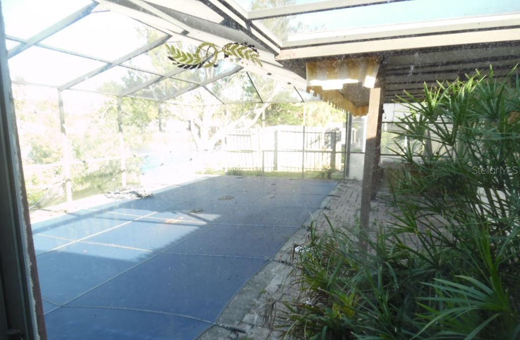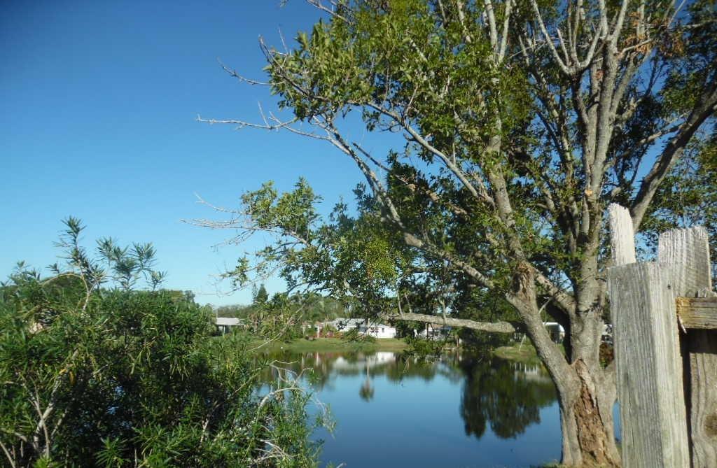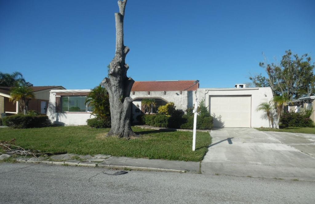 Mid Century Florida modern home situated on a small lake with a large screened lanai with inground pool . This 1971 house has 3 bedrooms, 2 bathrooms, one with a tub and one with a walk in shower, There is a single car garage and a walled front entry garden. Home is conveniently located between US 19 and the Gulf.