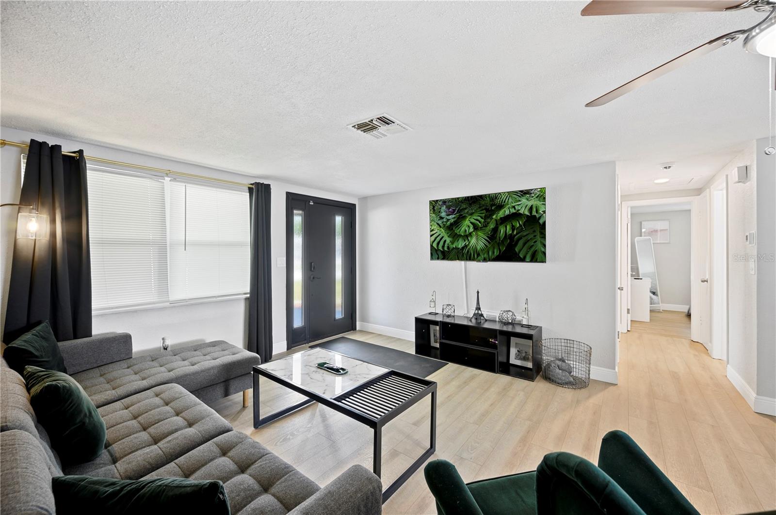 Welcome home to this beautifully remodeled 3-bedroom, 1.5 bath gem in the heart of New Port Richey! This inviting residence features large front windows that flood the main living areas with natural light, complemented by stunning luxury vinyl flooring throughout. The updated kitchen showcases modern cabinetry and sleek stainless steel appliances, ideal for all your culinary adventures. The home includes three spacious bedrooms, with a versatile garage conversion serving as the third bedroom, complete with a half bath and a walk-in closet. Enjoy the expansive fenced backyard, offering plenty of room for relaxation or play. Located just blocks from US 19 and in Flood Zone X, this home is conveniently minutes away from downtown New Port Richey, where you can indulge in shopping, dining, and nightlife. Beautiful beaches, parks, and schools are also nearby. Plus, with NO HOA and NO CDD fees, you can relish a relaxed lifestyle with minimal restrictions. See list of recent upgrades to this great home!