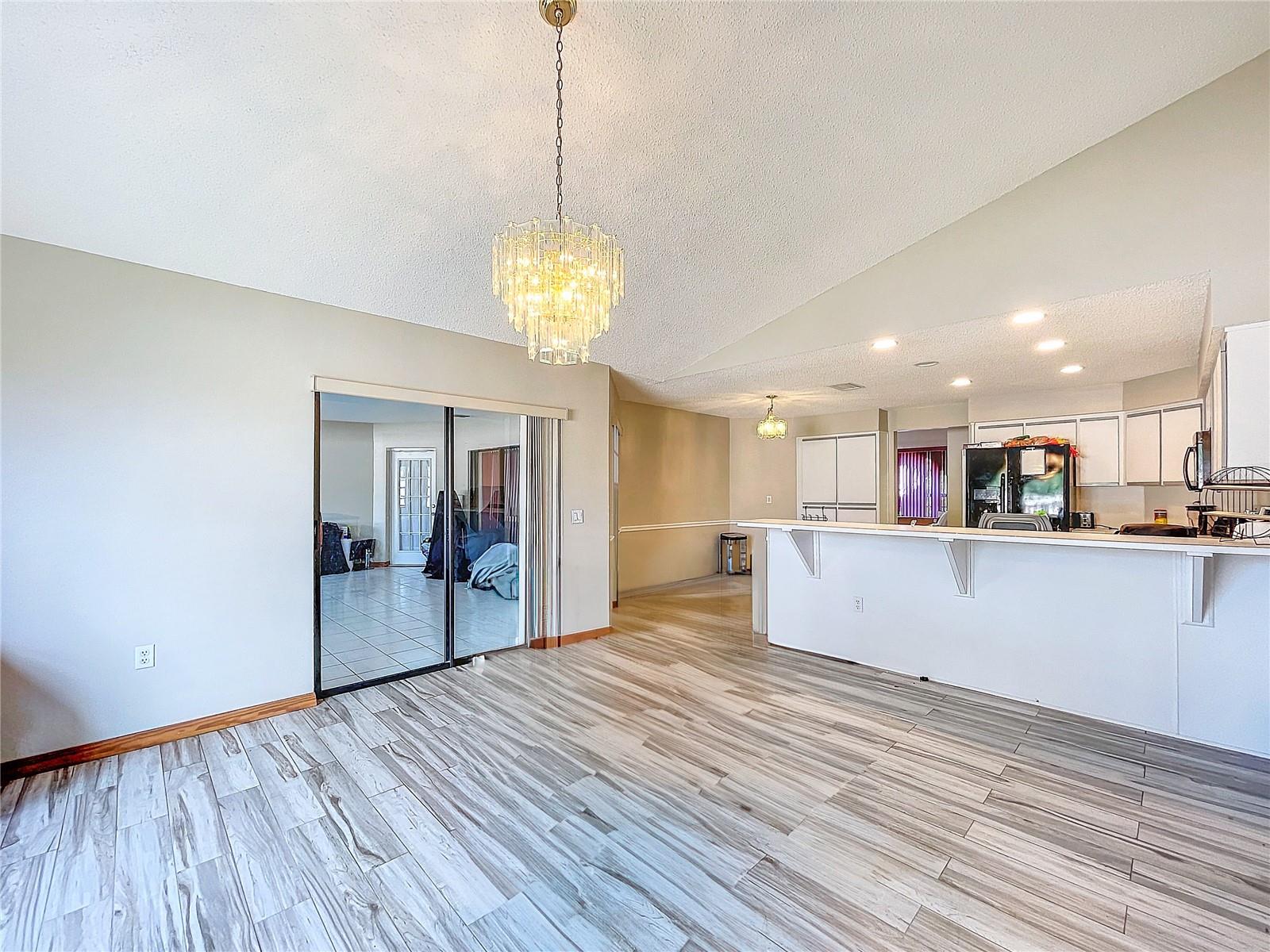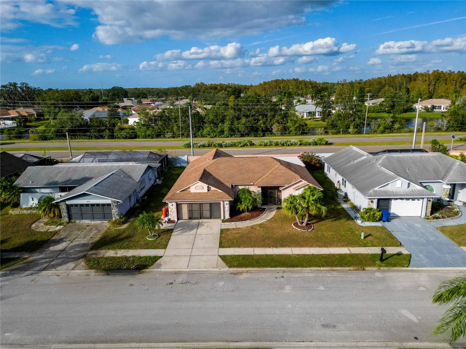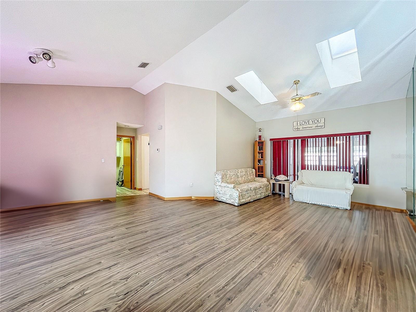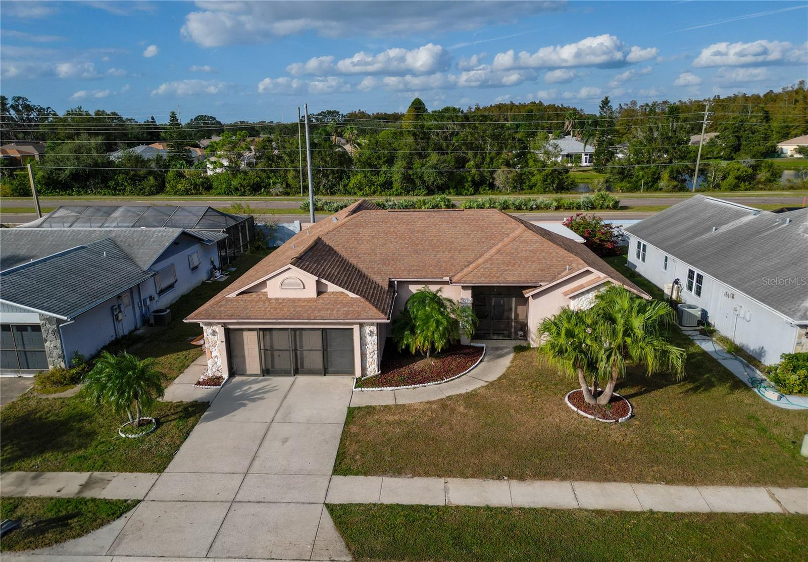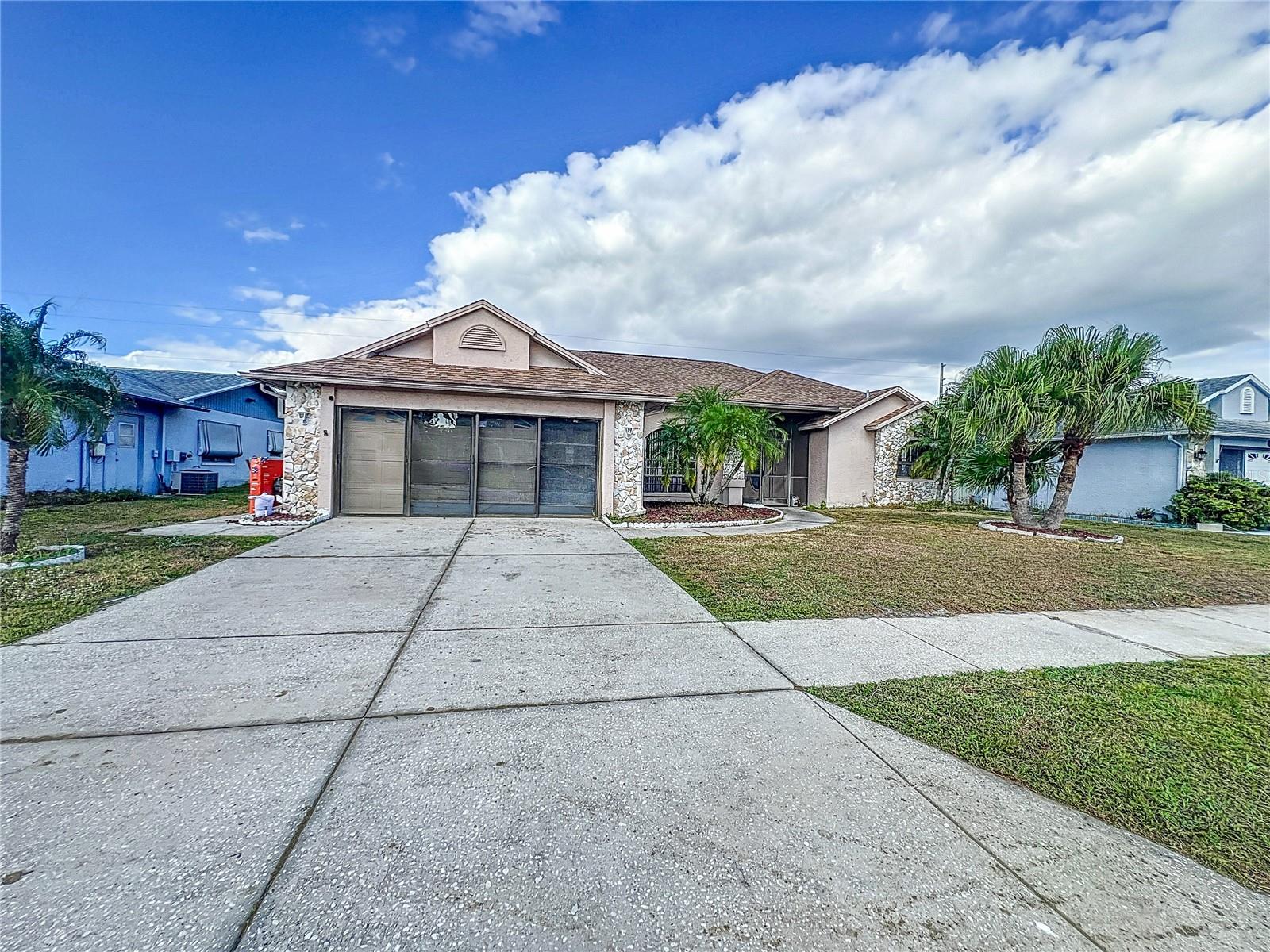 Best value in the neighborhood! This spacious home lives large with over 2400 sf of living space. The desirable split living area has an oversized Owners Suite on the right side of home and 2 generous bedrooms on the left side of the home. As you enter through the double front doors, you are greeted by a light and bright Living Room /Dining Room combo with vaulted ceilings. To the right, enter the Owners Suite with a walk-in closet and an ensuite bathroom with large tub and walk-in glass shower. The oversized bedroom has a sitting area at one end with room for a reading nook or small office space. The large eat-in kitchen has extra wall storage and room for your kitchen table. Open to a large family room area and sliders to giant bonus room. Possibilities are endless with this oversized space which leads to the screened back patio and backyard. Off the kitchen are two bedrooms that share a renovated hall bathroom with tub/shower combo. The home has a large laundry room and drop zone with extra storage cabinets. Continue to the garage which offers built in storage cabinets, an in-wall air conditioner and sliding screen doors if you wish to use this as a patio or workshop. New vinyl flooring with a wood-like grain is throughout the main living areas and bedrooms. Upgrades include new bathroom lights and faucets, New AC 2020, New Water Heater 2024. Downtown New Port Richey offers wonderful amenities and festivities at Sims Park. Shopping and restaurants are close by at 54 and Little. Close to area beaches. 45 mins to TIA and downtown Tampa via the Veterans. Schedule your showing today at this large versatile home in a well-kept neighborhood! Optional neighborhood Civic Association does provide wonderful events and sense of community! Make your appointment today!