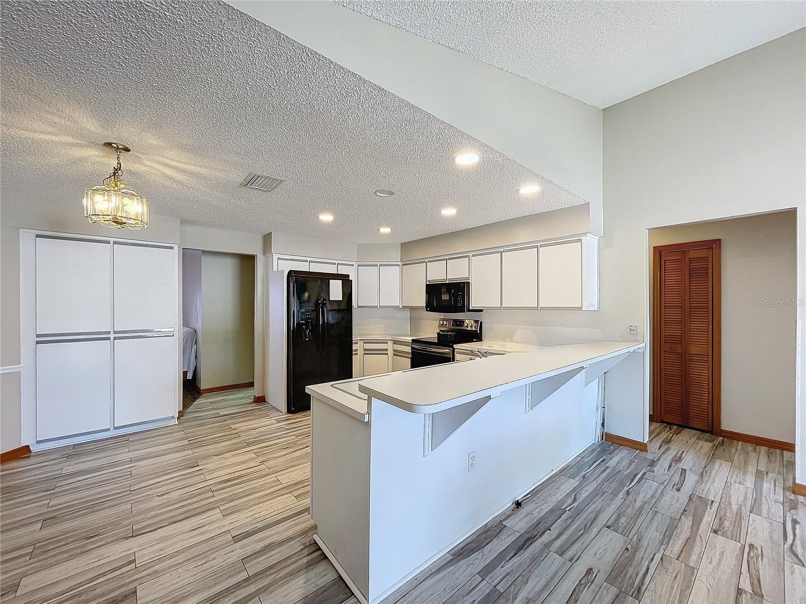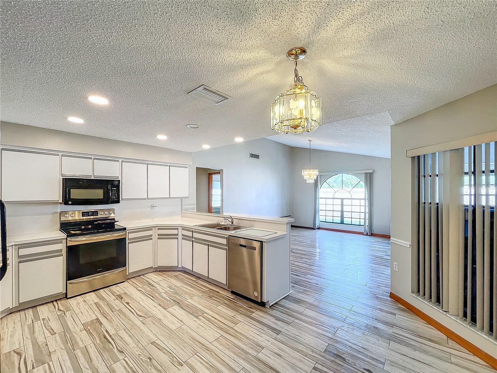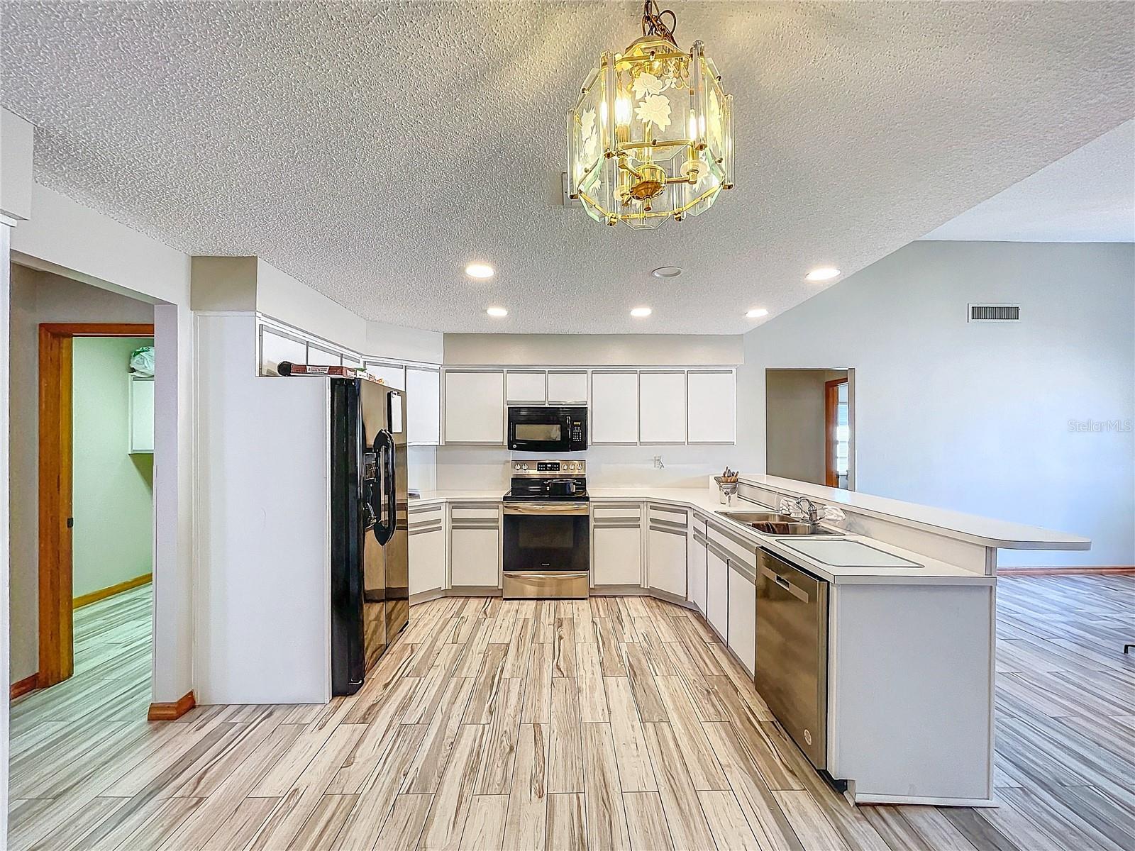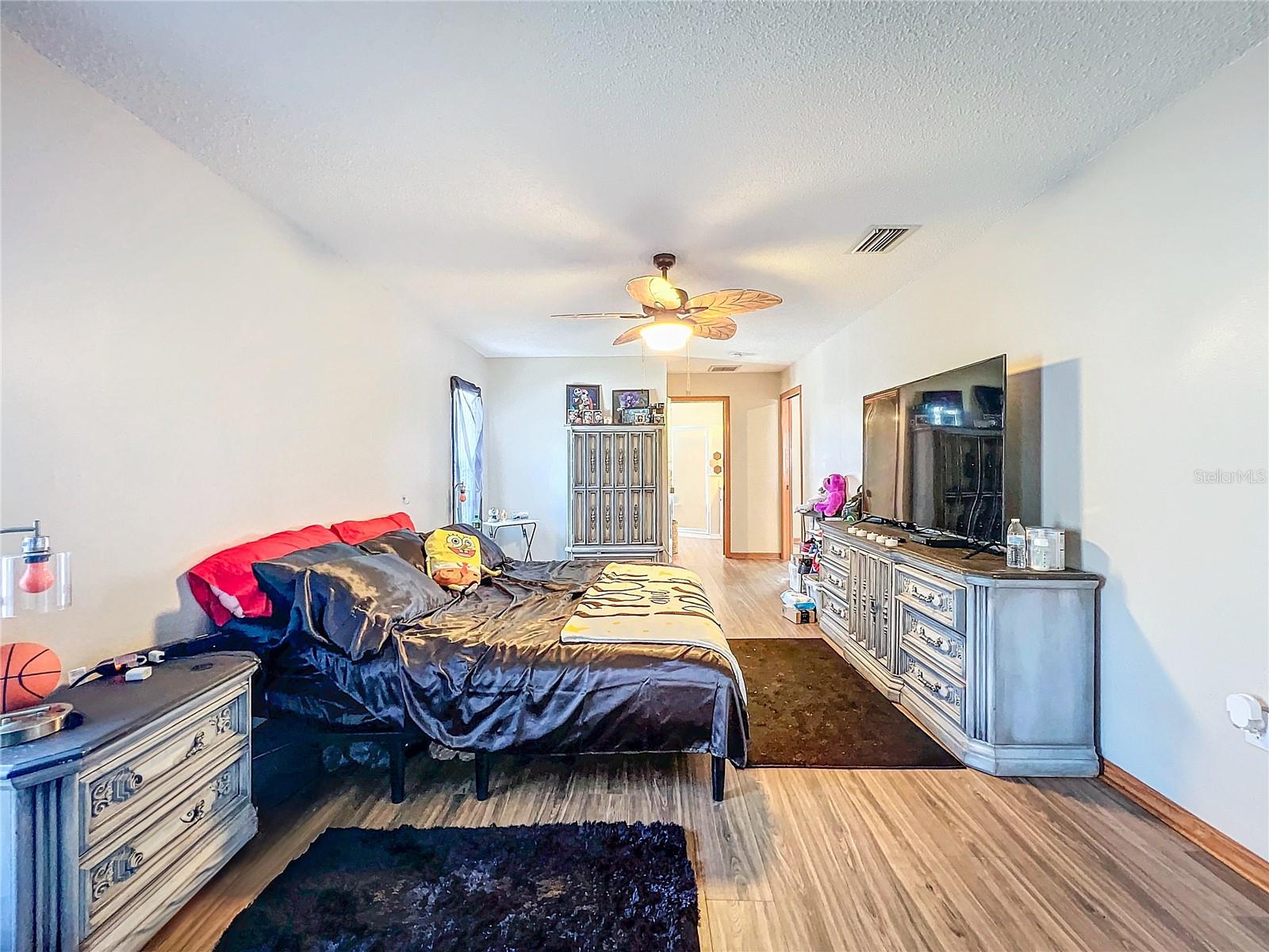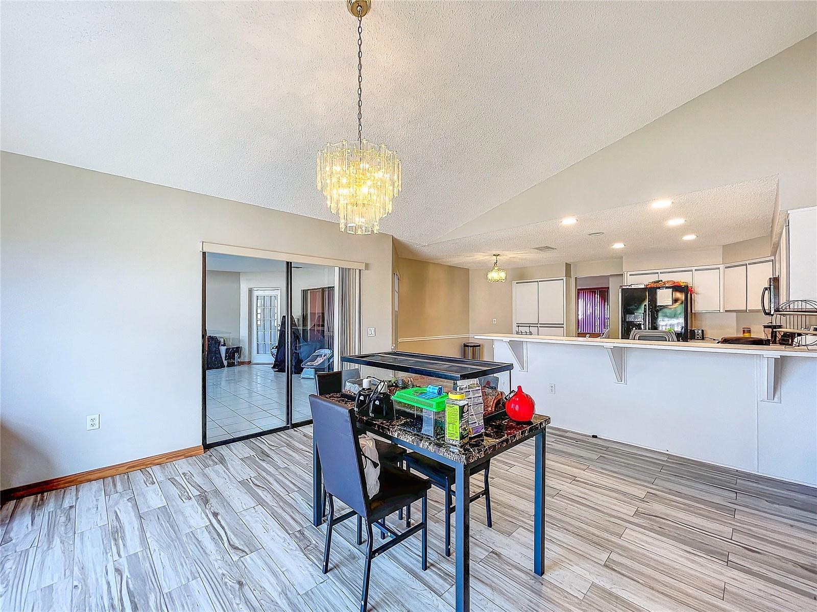 Best value in the neighborhood! This spacious home lives large with over 2400 sf of living space. The desirable split living area has an oversized Owners Suite on the right side of home and 2 generous bedrooms on the left side of the home. As you enter through the double front doors, you are greeted by a light and bright Living Room /Dining Room combo with vaulted ceilings. To the right, enter the Owners Suite with a walk-in closet and an ensuite bathroom with large tub and walk-in glass shower. The oversized bedroom has a sitting area at one end with room for a reading nook or small office space. The large eat-in kitchen has extra wall storage and room for your kitchen table. Open to a large family room area and sliders to giant bonus room. Possibilities are endless with this oversized space which leads to the screened back patio and backyard. Off the kitchen are two bedrooms that share a renovated hall bathroom with tub/shower combo. The home has a large laundry room and drop zone with extra storage cabinets. Continue to the garage which offers built in storage cabinets, an in-wall air conditioner and sliding screen doors if you wish to use this as a patio or workshop. New vinyl flooring with a wood-like grain is throughout the main living areas and bedrooms. Upgrades include new bathroom lights and faucets, New AC 2020, New Water Heater 2024. Downtown New Port Richey offers wonderful amenities and festivities at Sims Park. Shopping and restaurants are close by at 54 and Little. Close to area beaches. 45 mins to TIA and downtown Tampa via the Veterans. Schedule your showing today at this large versatile home in a well-kept neighborhood! Optional neighborhood Civic Association does provide wonderful events and sense of community! Make your appointment today!