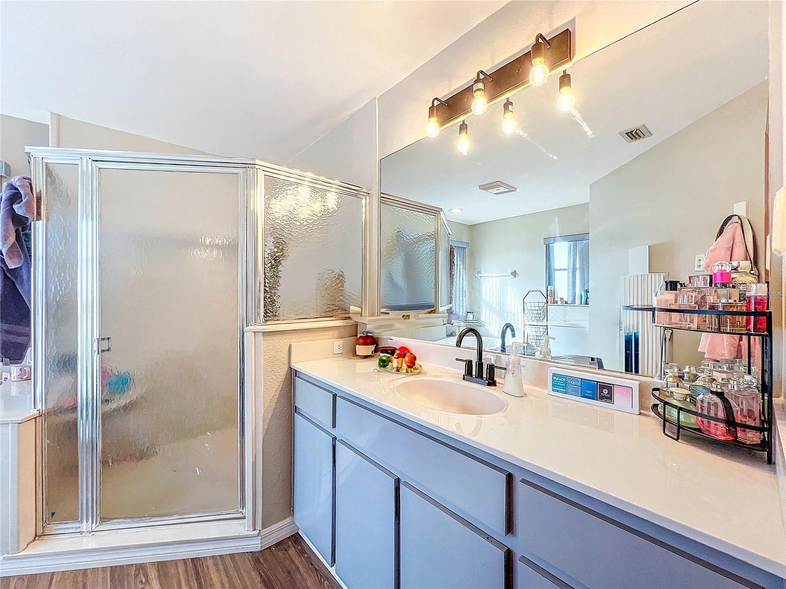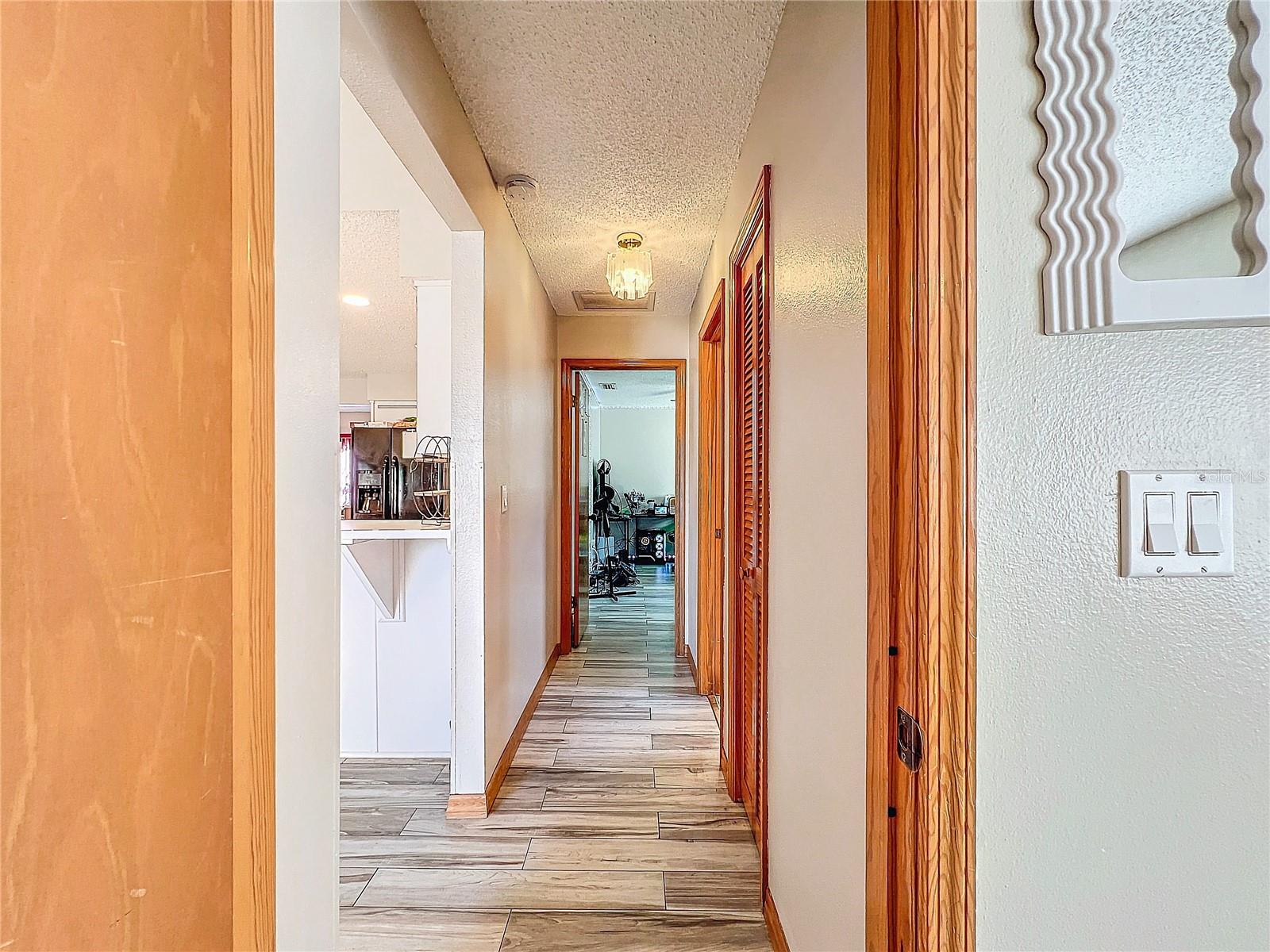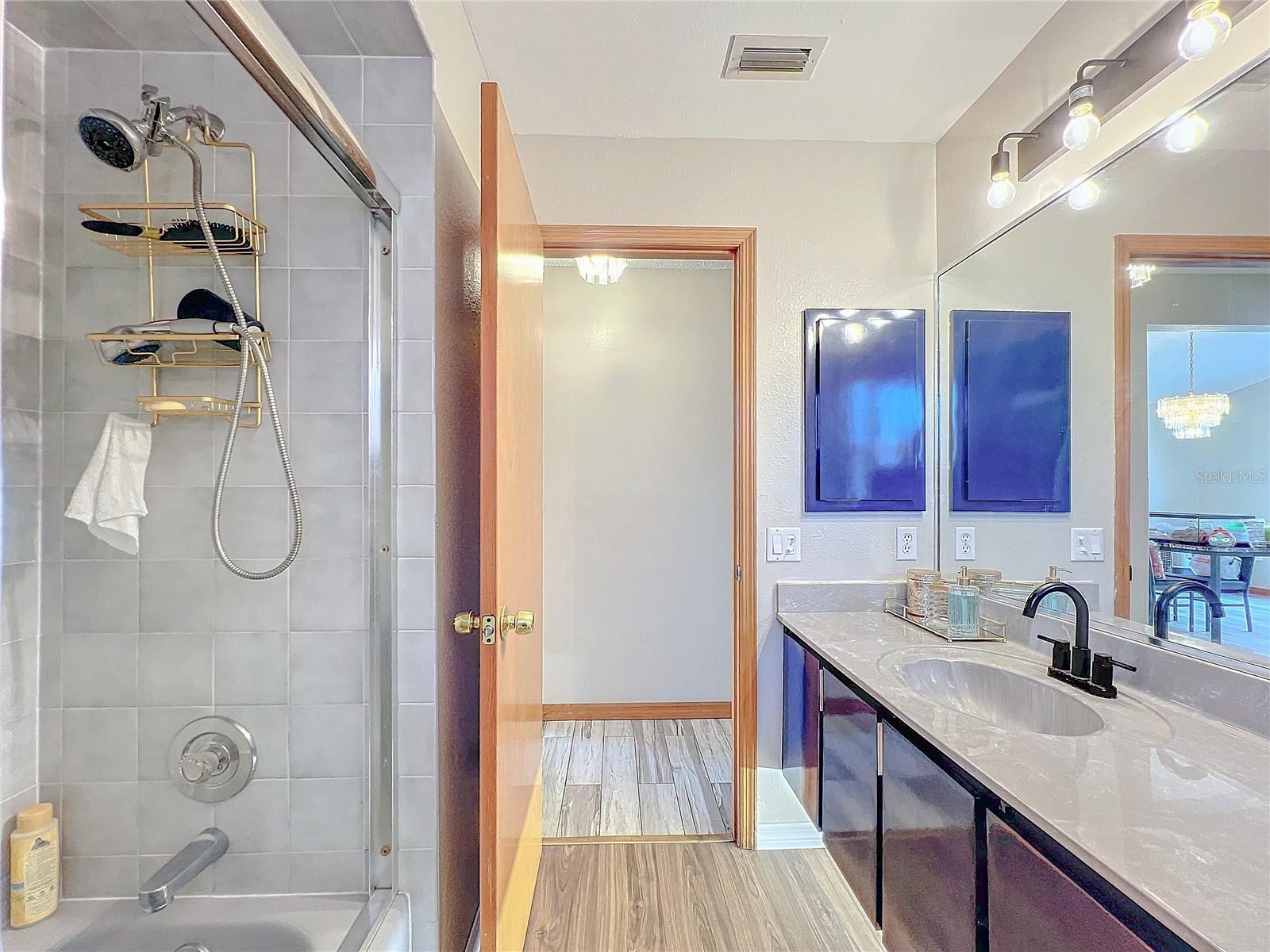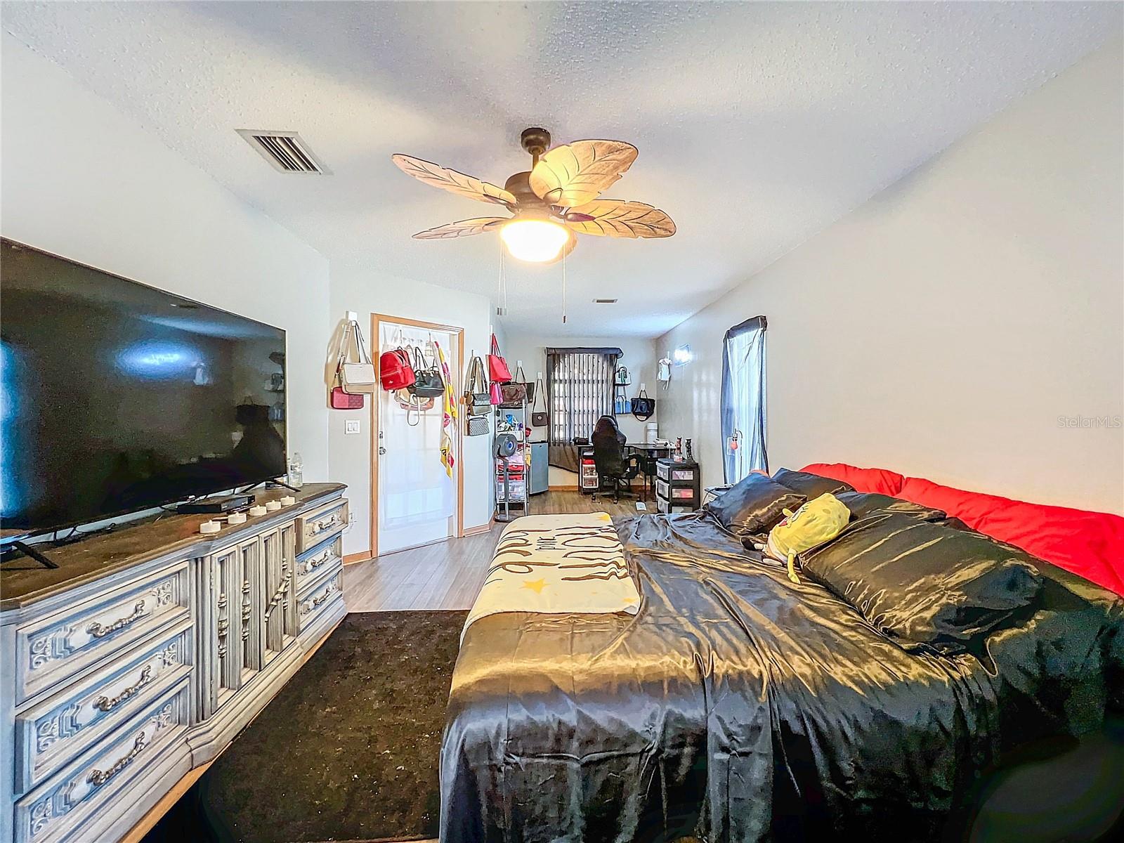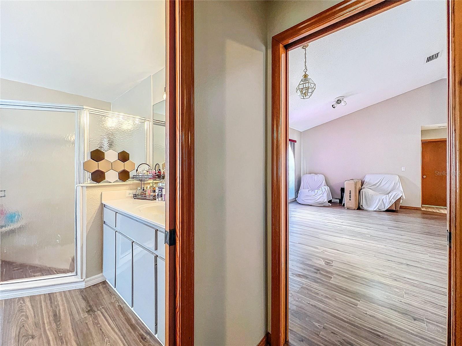 Best value in the neighborhood! This spacious home lives large with over 2400 sf of living space. The desirable split living area has an oversized Owners Suite on the right side of home and 2 generous bedrooms on the left side of the home. As you enter through the double front doors, you are greeted by a light and bright Living Room /Dining Room combo with vaulted ceilings. To the right, enter the Owners Suite with a walk-in closet and an ensuite bathroom with large tub and walk-in glass shower. The oversized bedroom has a sitting area at one end with room for a reading nook or small office space. The large eat-in kitchen has extra wall storage and room for your kitchen table. Open to a large family room area and sliders to giant bonus room. Possibilities are endless with this oversized space which leads to the screened back patio and backyard. Off the kitchen are two bedrooms that share a renovated hall bathroom with tub/shower combo. The home has a large laundry room and drop zone with extra storage cabinets. Continue to the garage which offers built in storage cabinets, an in-wall air conditioner and sliding screen doors if you wish to use this as a patio or workshop. New vinyl flooring with a wood-like grain is throughout the main living areas and bedrooms. Upgrades include new bathroom lights and faucets, New AC 2020, New Water Heater 2024. Downtown New Port Richey offers wonderful amenities and festivities at Sims Park. Shopping and restaurants are close by at 54 and Little. Close to area beaches. 45 mins to TIA and downtown Tampa via the Veterans. Schedule your showing today at this large versatile home in a well-kept neighborhood! Optional neighborhood Civic Association does provide wonderful events and sense of community! Make your appointment today!
