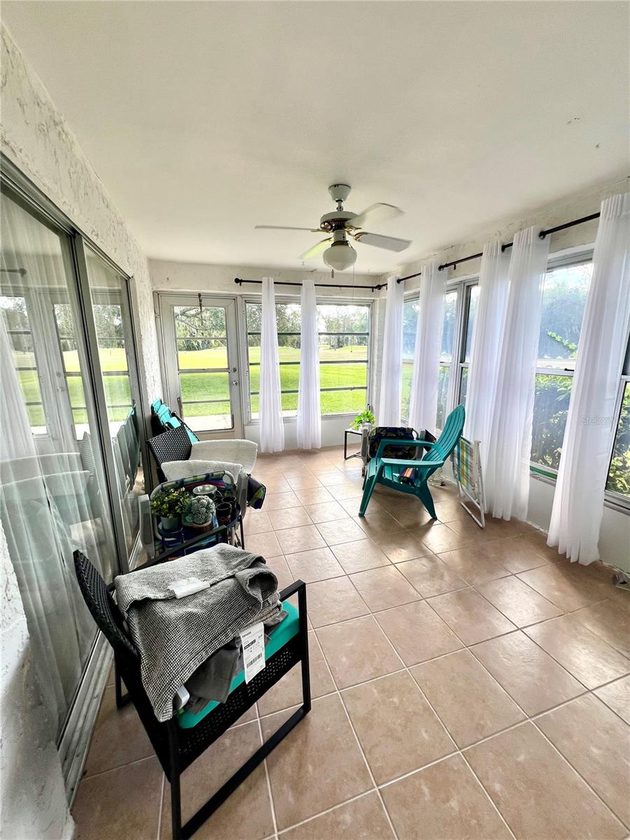 This lovely CORNER UNIT on the 14th hole of Seven Springs executive plus course boosts maintenace free living and a split bedroom setup for privacy. The main bedroom is huge with a walk in closet. The floors have been updated throughout the unit. Outside, enjoy a private patio area perfect for morning coffee or evening relaxation while overlooking the golf course. Don't want to be outside then enjoy your year round Florida room just off the living room. Located in a desirable golf cart community, this unit saw no flooding during hurricanes, this villa offers access to amenities like a pool and clubhouse, and it’s just minutes from shopping, dining, parks, and hospital. The Monthly Condo Fee Includes 24-Hour Guard Gate, Security, Cable TV, Internet, Water, Sewer, Trash Pick-Up, Insurance, Exterior Paint, Roof, Pest Control, Lawn Care, Common Grounds Maintenance, & Escrow Reserves Fund. There is an Optional Social and Golf Memberships Offering two 18-hole Golf Courses, Pro-Shop, Clubhouse w/Restaurant, Tennis Courts, & 2 Community Pools. This is truly a wonderful place to live and play. This villa is ready for you to move in and start enjoying the Florida lifestyle!