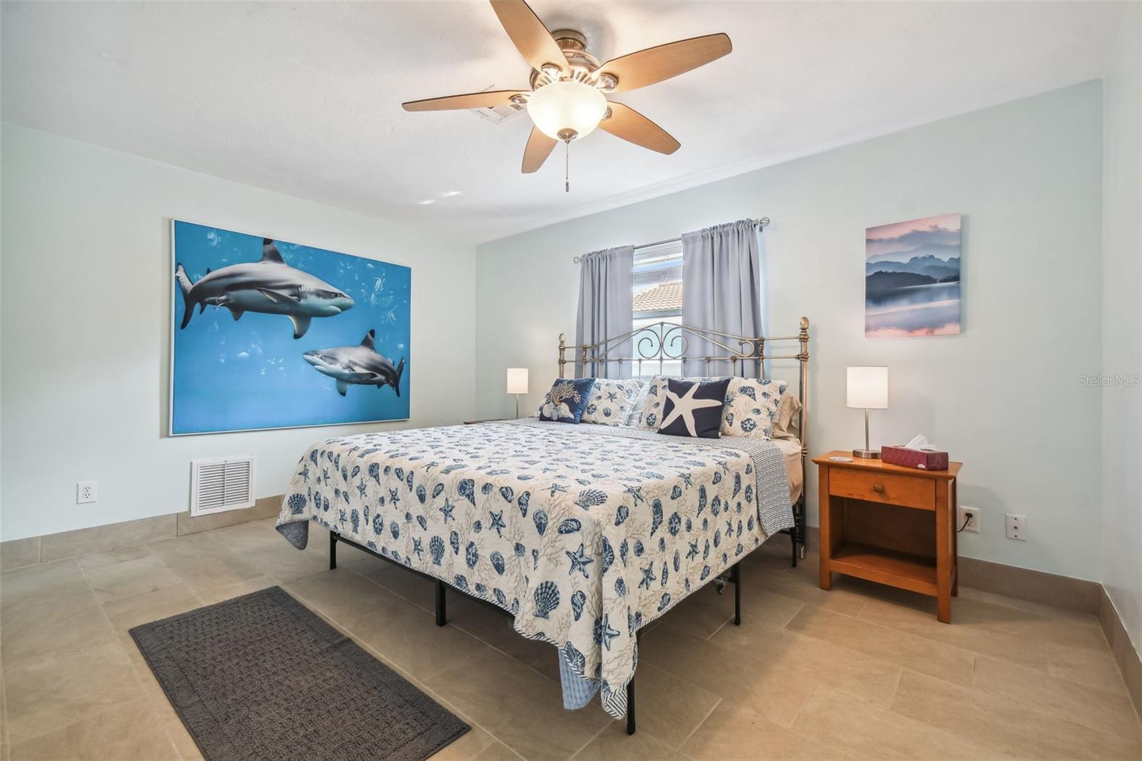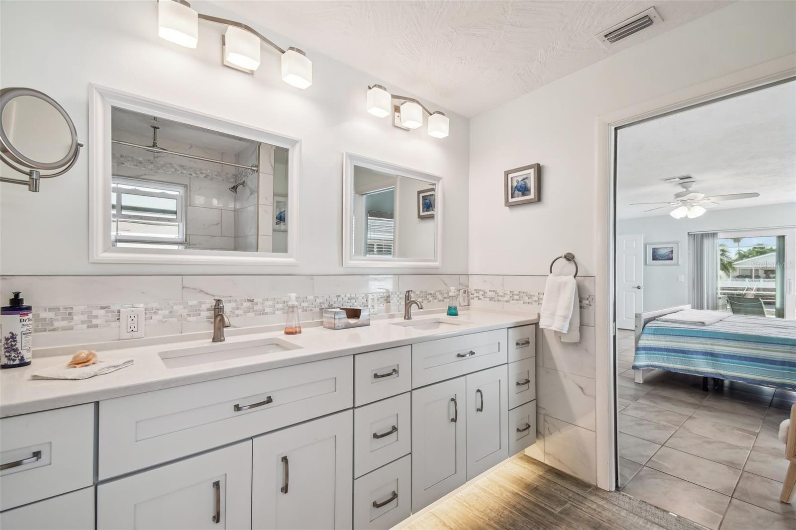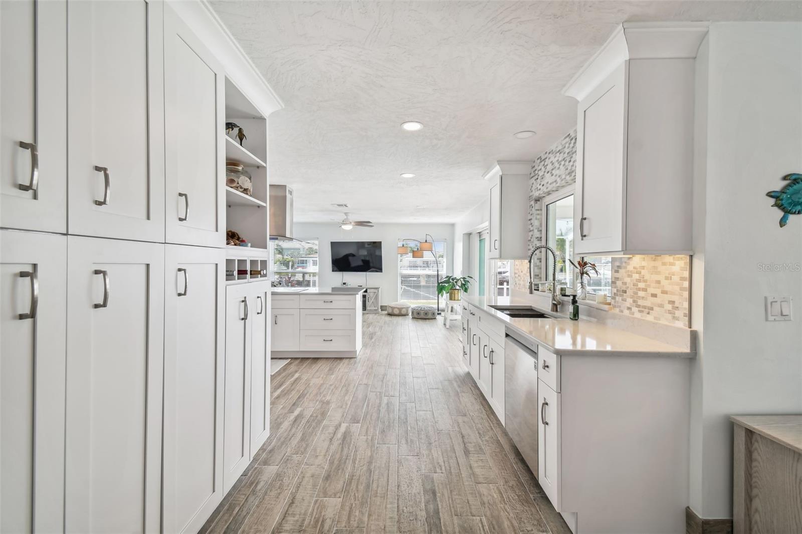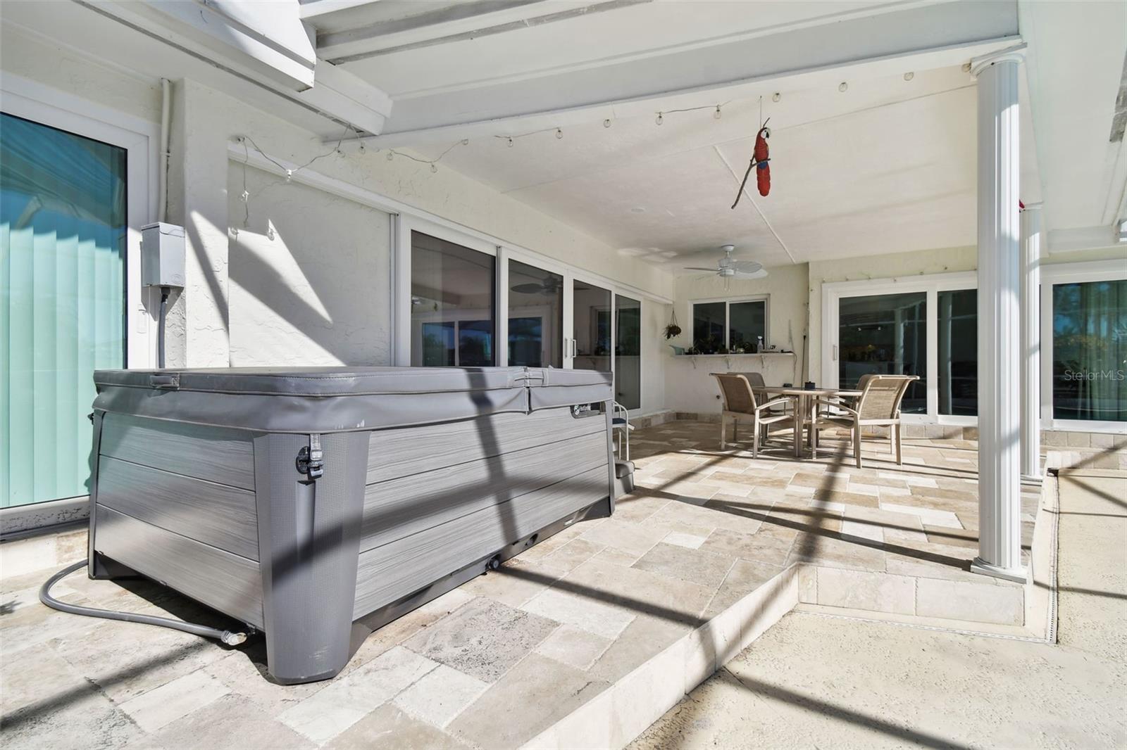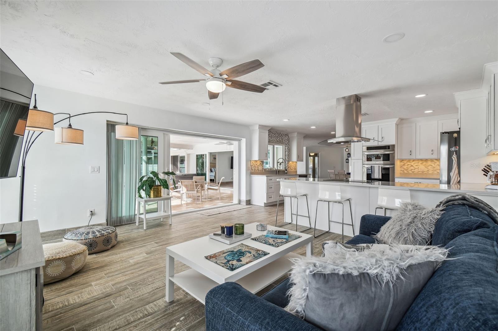 Welcome to your tropical waterfront paradise located in the premier southwestern area of Gulf Harbors, less than two minutes by boat from the beautiful open gulf waters! With over 90ft of seawall, and a 12,000 lbs. boat lift on an extra wide, crystal clear, 28ft deep canal, any boat, even a large sailboat can be accommodated. Watch manatees and dolphins frolic from over 400 sq ft of dock space, a great place for a Tiki bar perhaps? Sit by the sparkling saltwater pool, in the large screened-in lanai, under the covered patio or the shade tree in the big private, fenced-in backyard. The inviting tropical landscaping includes flowering trees, citrus, mango, and an asparagus bed. There is a separate fenced-in yard for your pets and a floating dock, great for kayaking and fishing. All new Impact-Resistant Exterior doors and windows, including two big sliding pocket doors, and an impact resistant garage door, were installed in 2022 to decrease insurance cost. 3RD nails were added to the professionally inspected and cleaned roof in 2022. New tile, installed throughout in 2023, includes baseboard tiles that run throughout the home. In the last three years this beautiful home has been meticulously updated with quality, high-end materials, and fresh paint inside and out. The expansive custom, gourmet kitchen with ample cabinet space, quartz countertops, built-in stainless-steel appliances with modern technology, and a large breakfast bar is perfect for entertaining. The spacious private, master bedroom suite offers views of the water, and a large walk-in closet with built-in custom cabinets. The master bathroom features modern tile, undermount cabinet lighting, dual sinks, quartz countertops, and a rainfall shower head. Two large additional bedrooms offer plenty of room for your guests or office. The guest bath features a large walk-in shower. Other home features include a water purification system added in 2022 and a dual- zone AC system. Florida sunshine, fresh ocean breezes, light and bright coastal colors, and beautiful pool and water views all invigorate your senses right as you walk through the front entry. NO HOA is required! A private beach neighborhood beach (small membership fee) is a short walk away.
