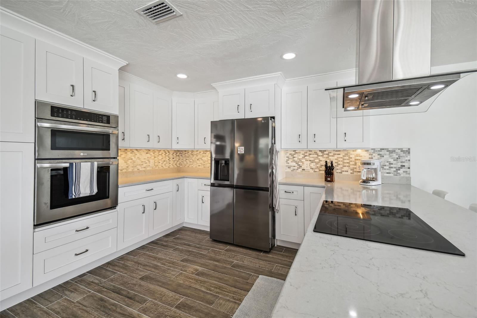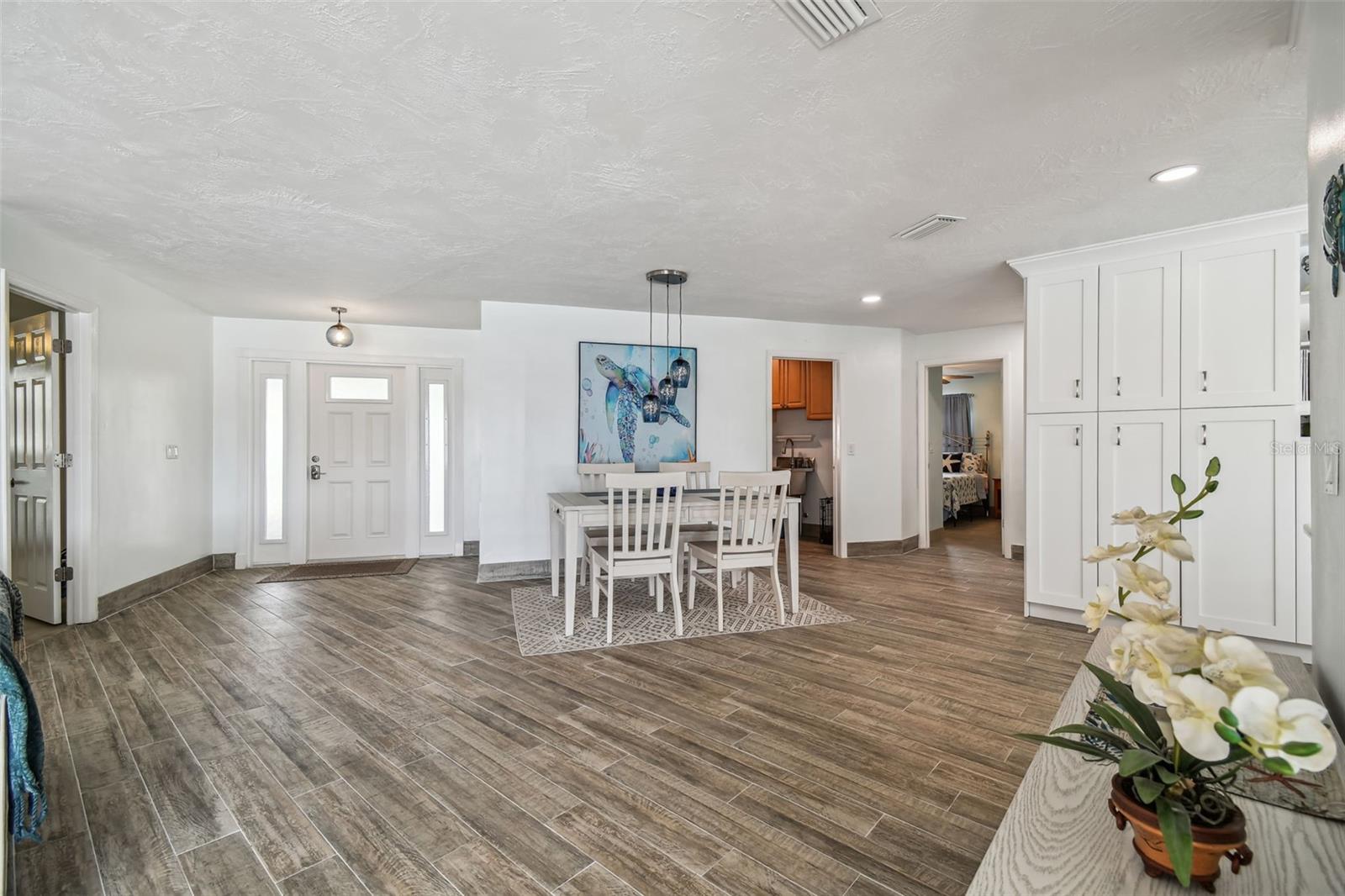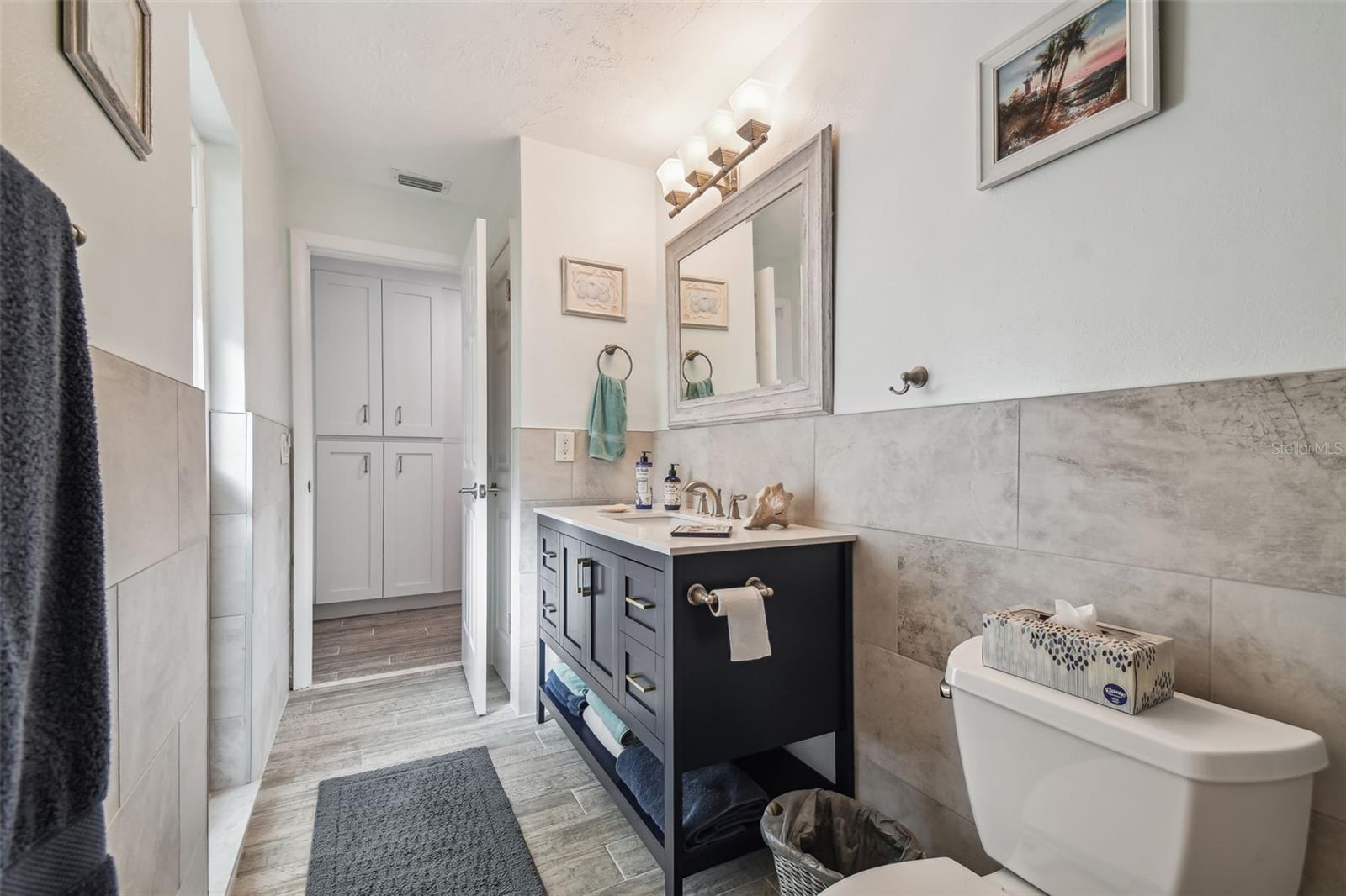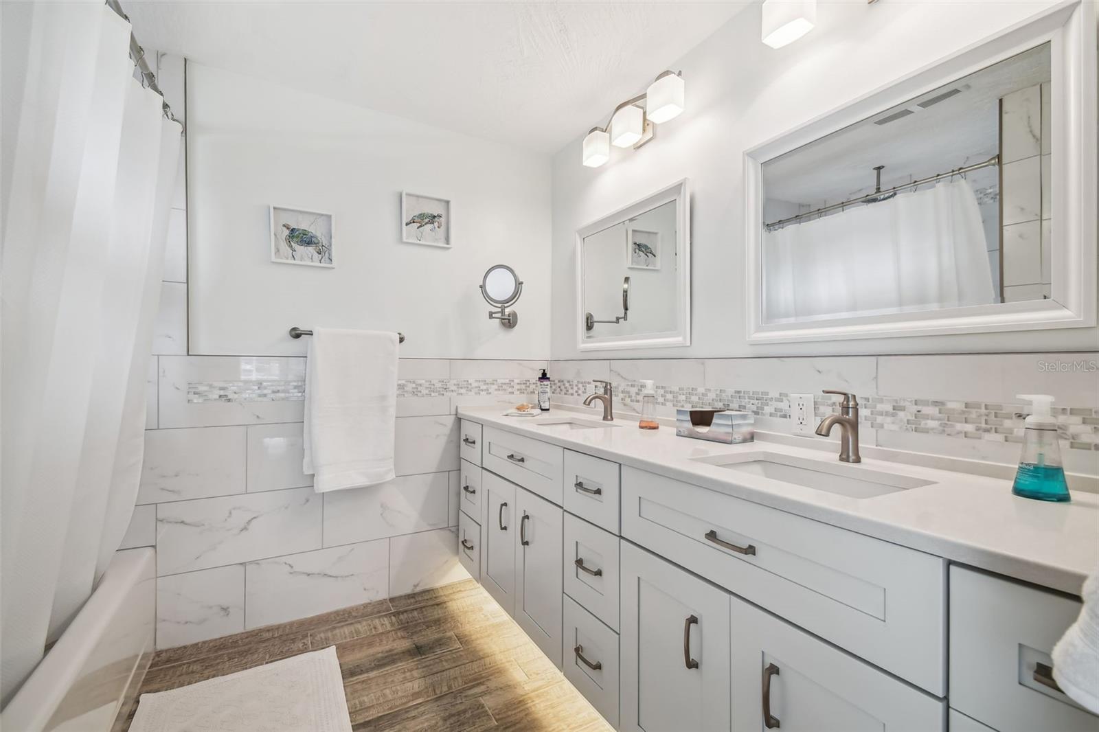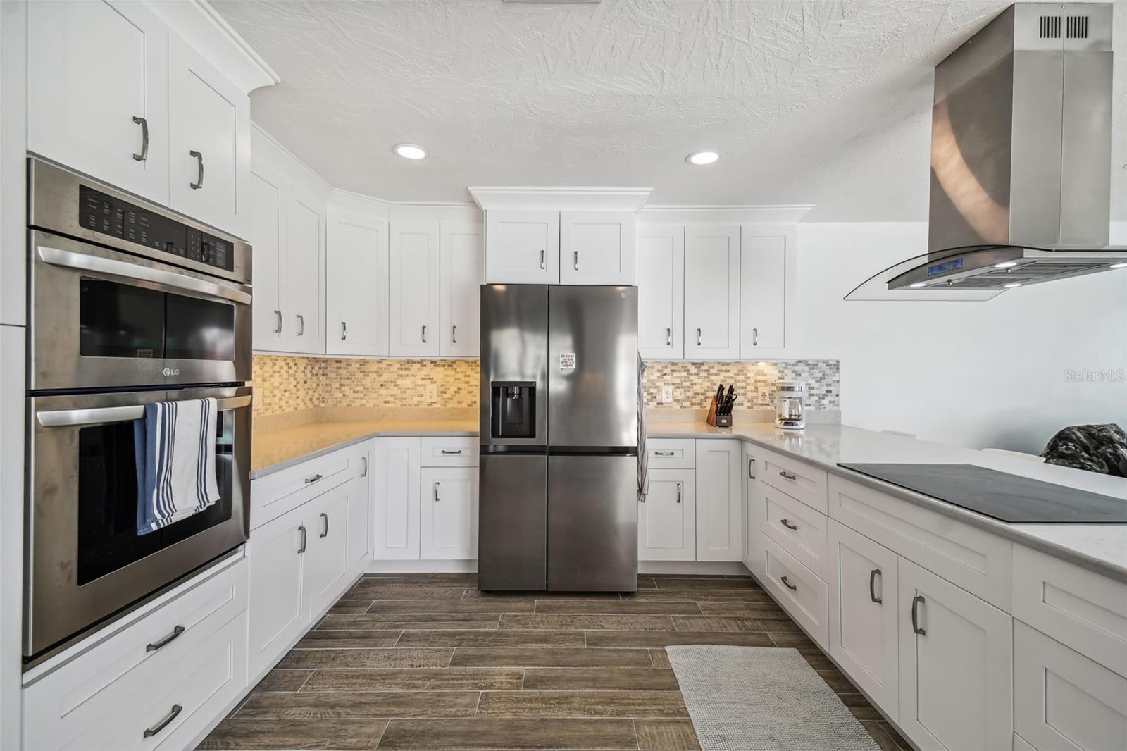 Welcome to your tropical waterfront paradise located in the premier southwestern area of Gulf Harbors, less than two minutes by boat from the beautiful open gulf waters! With over 90ft of seawall, and a 12,000 lbs. boat lift on an extra wide, crystal clear, 28ft deep canal, any boat, even a large sailboat can be accommodated. Watch manatees and dolphins frolic from over 400 sq ft of dock space, a great place for a Tiki bar perhaps? Sit by the sparkling saltwater pool, in the large screened-in lanai, under the covered patio or the shade tree in the big private, fenced-in backyard. The inviting tropical landscaping includes flowering trees, citrus, mango, and an asparagus bed. There is a separate fenced-in yard for your pets and a floating dock, great for kayaking and fishing. All new Impact-Resistant Exterior doors and windows, including two big sliding pocket doors, and an impact resistant garage door, were installed in 2022 to decrease insurance cost. 3RD nails were added to the professionally inspected and cleaned roof in 2022. New tile, installed throughout in 2023, includes baseboard tiles that run throughout the home. In the last three years this beautiful home has been meticulously updated with quality, high-end materials, and fresh paint inside and out. The expansive custom, gourmet kitchen with ample cabinet space, quartz countertops, built-in stainless-steel appliances with modern technology, and a large breakfast bar is perfect for entertaining. The spacious private, master bedroom suite offers views of the water, and a large walk-in closet with built-in custom cabinets. The master bathroom features modern tile, undermount cabinet lighting, dual sinks, quartz countertops, and a rainfall shower head. Two large additional bedrooms offer plenty of room for your guests or office. The guest bath features a large walk-in shower. Other home features include a water purification system added in 2022 and a dual- zone AC system. Florida sunshine, fresh ocean breezes, light and bright coastal colors, and beautiful pool and water views all invigorate your senses right as you walk through the front entry. NO HOA is required! A private beach neighborhood beach (small membership fee) is a short walk away.