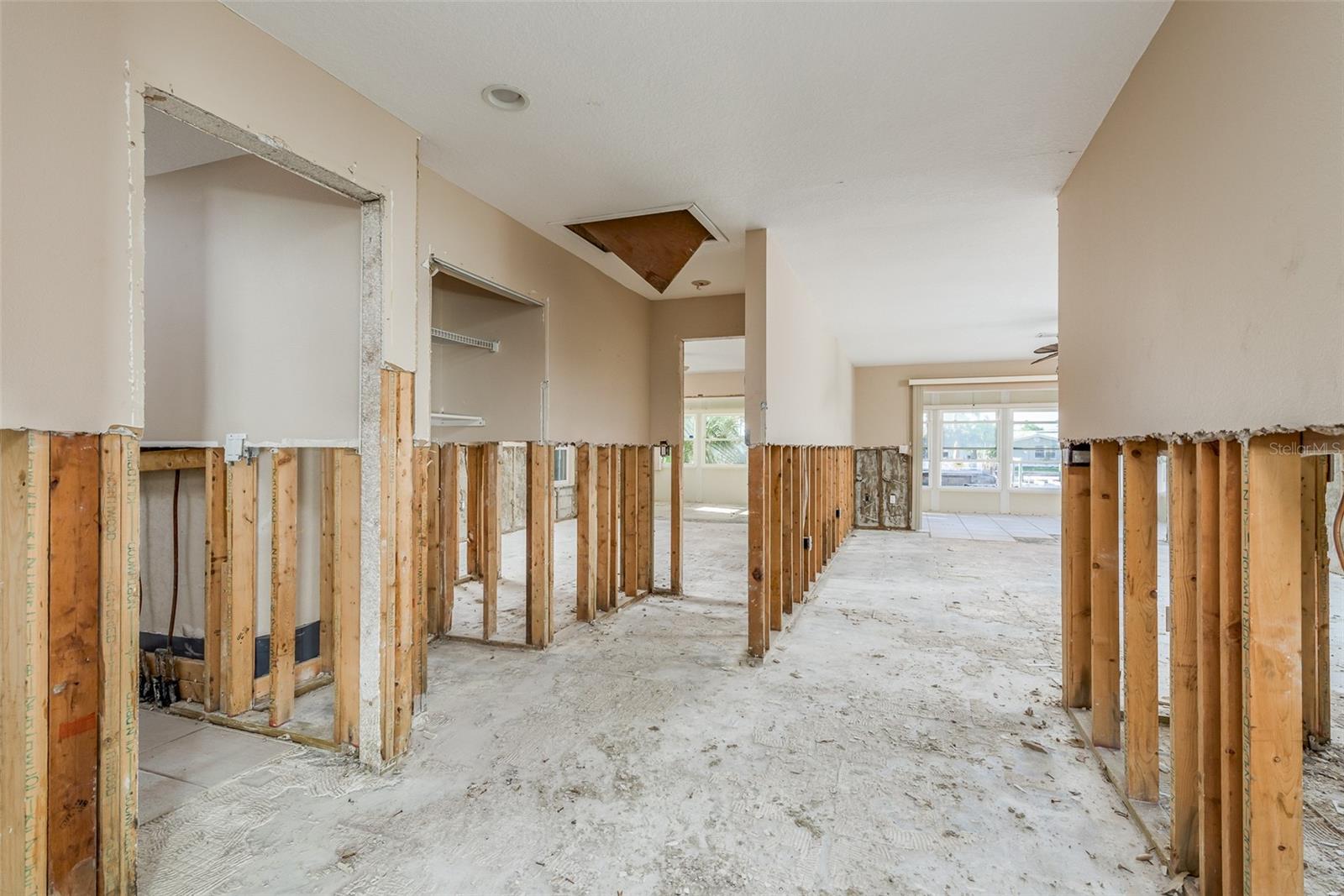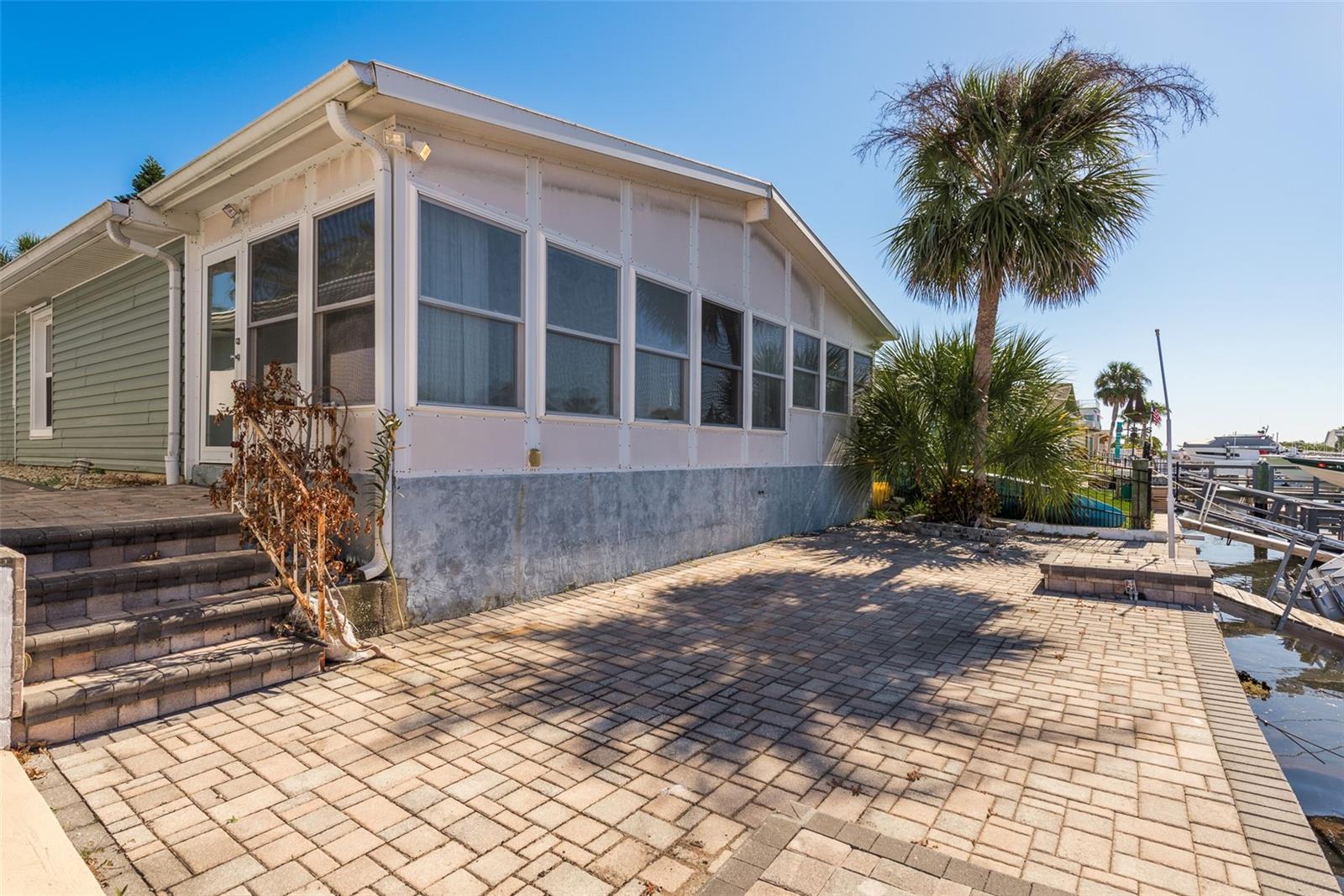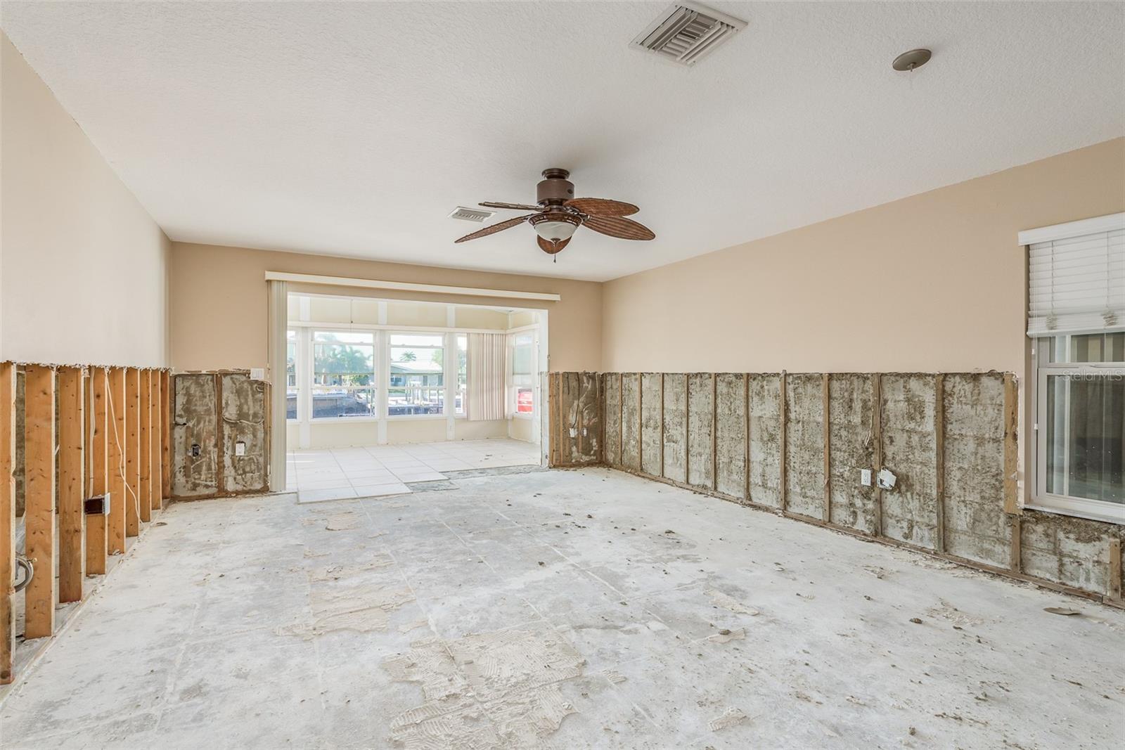 Amazing opportunity to make this your dream waterfront home. This home sustained flooding of up to 1 foot during hurricane Helene. Four feet of drywall, lower cabinets, appliances and most flooring have been removed, leaving a blank canvas for you to design your dream home. This spacious 2-bedroom, 2-bathroom, oversized 2-car garage home is located on the main North Channel in the highly desirable waterfront community of Gulf Harbors Woodlands with unobstructed Gulf access and is very sailboat friendly! Only minutes to the open Gulf! Just steps away from the community's large, heated pool, clubhouse, tennis courts, boat ramp, Yacht Club, and more! You also have the option to join the Gulf Harbors members-only private sandy beach offering cabanas & grills and overlooking the Gulf of Mexico and Anclote Key. Downtown New Port Richey, just a short drive away is lively and quaint with many restaurants, bars, shops, and Sims Park where you can enjoy one of the many special events and outdoor concerts throughout the year or stroll along the beautiful riverwalk along the Cottee River. This home is ready for you to design and obtain your perfect tropical lifestyle!