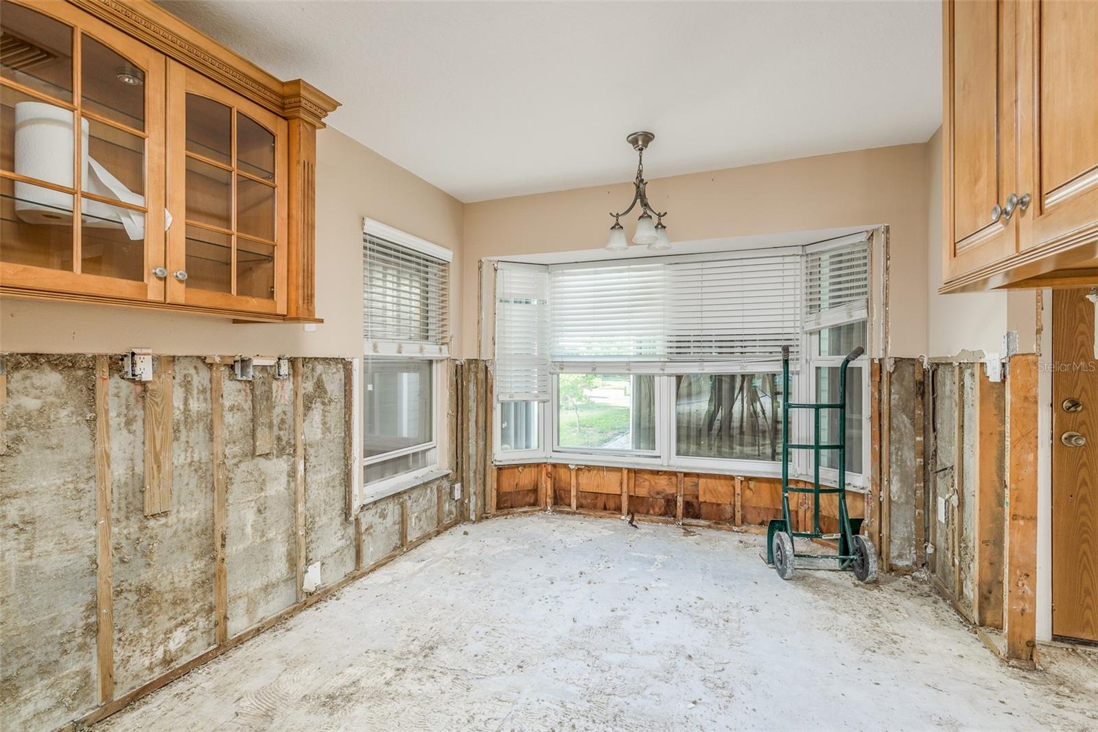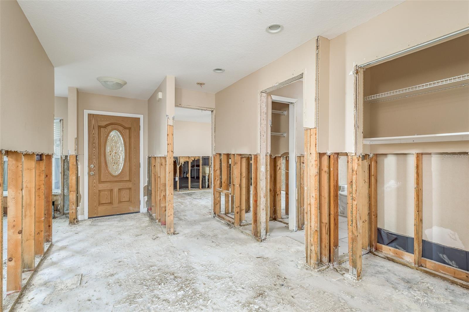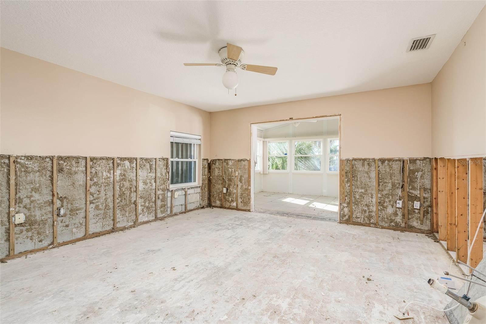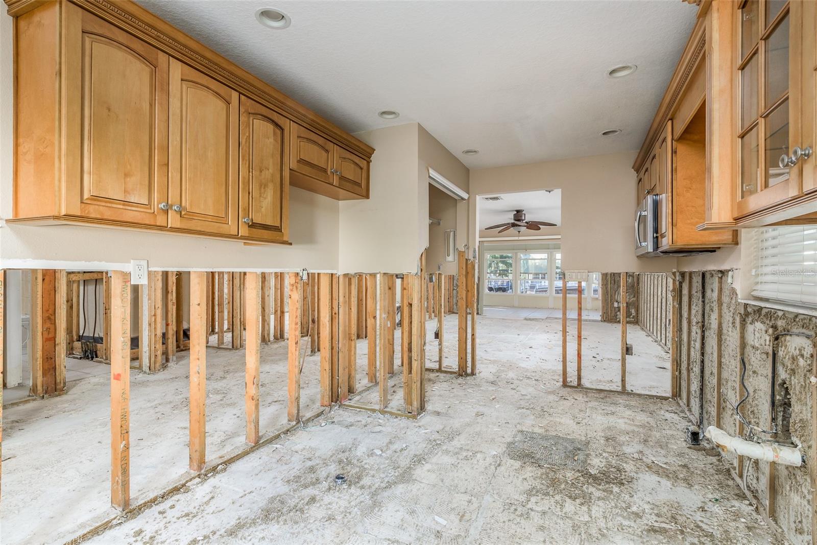 Amazing opportunity to make this your dream waterfront home. This home sustained flooding of up to 1 foot during hurricane Helene. Four feet of drywall, lower cabinets, appliances and most flooring have been removed, leaving a blank canvas for you to design your dream home. This spacious 2-bedroom, 2-bathroom, oversized 2-car garage home is located on the main North Channel in the highly desirable waterfront community of Gulf Harbors Woodlands with unobstructed Gulf access and is very sailboat friendly! Only minutes to the open Gulf! Just steps away from the community's large, heated pool, clubhouse, tennis courts, boat ramp, Yacht Club, and more! You also have the option to join the Gulf Harbors members-only private sandy beach offering cabanas & grills and overlooking the Gulf of Mexico and Anclote Key. Downtown New Port Richey, just a short drive away is lively and quaint with many restaurants, bars, shops, and Sims Park where you can enjoy one of the many special events and outdoor concerts throughout the year or stroll along the beautiful riverwalk along the Cottee River. This home is ready for you to design and obtain your perfect tropical lifestyle!