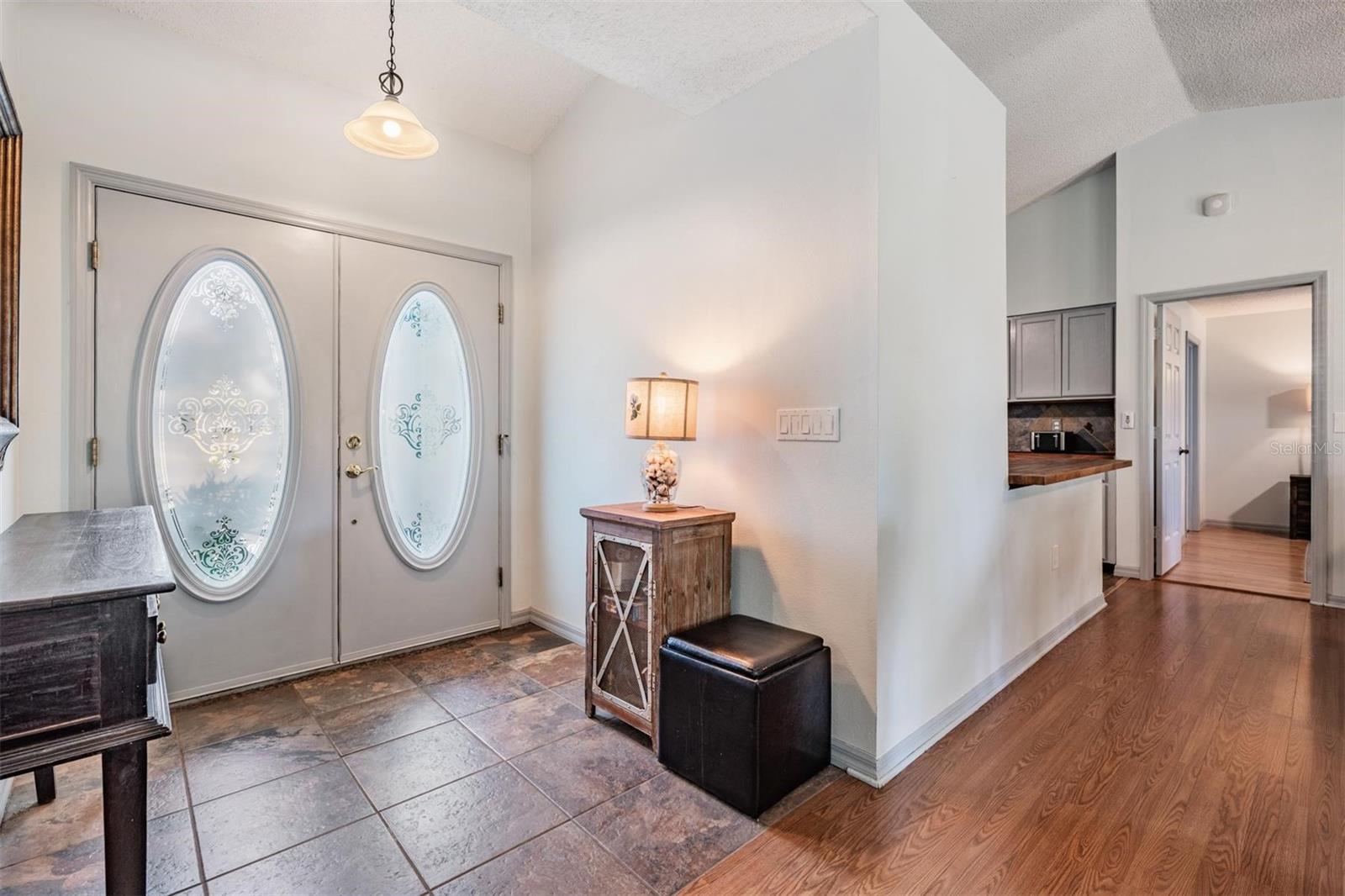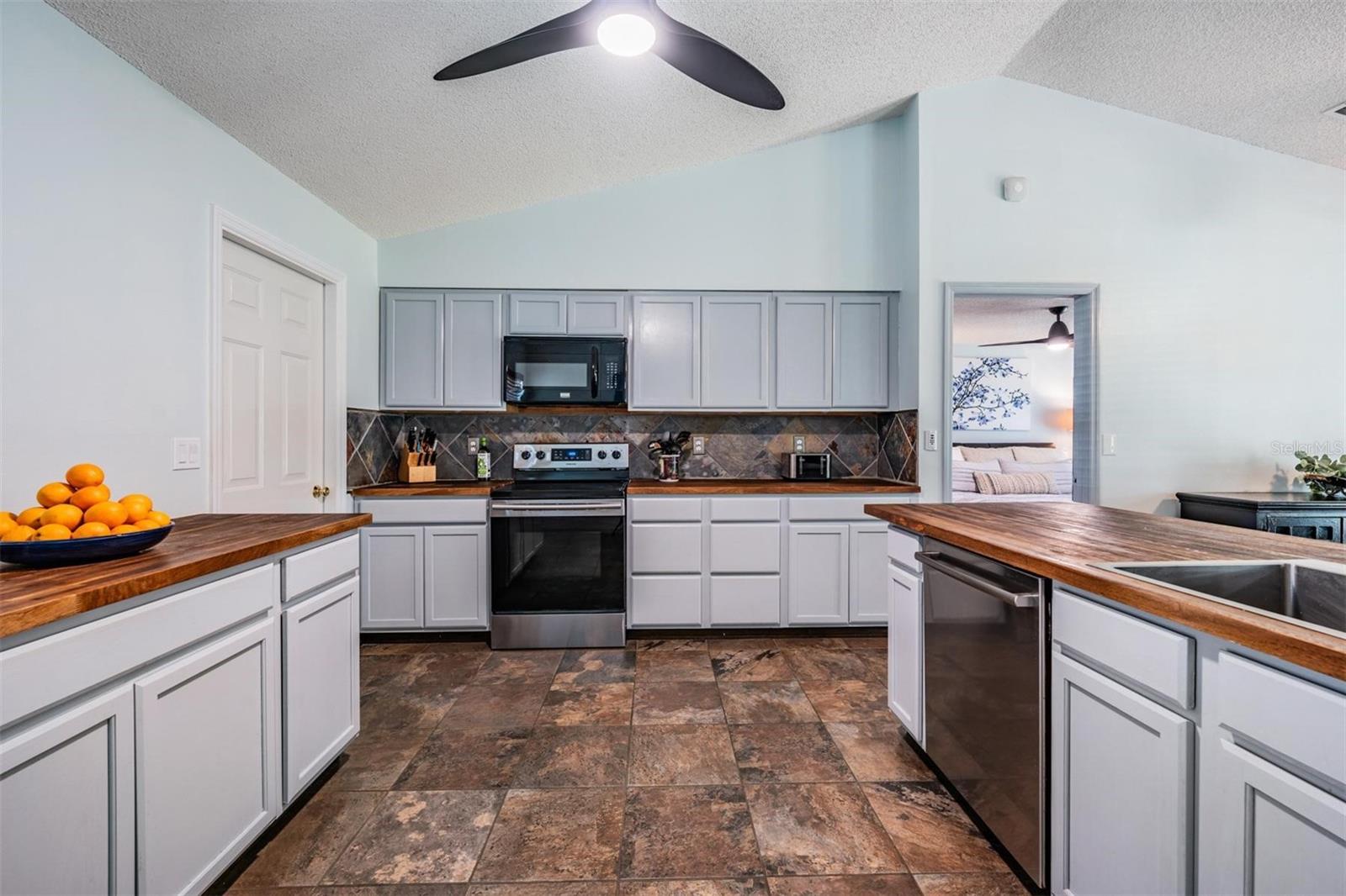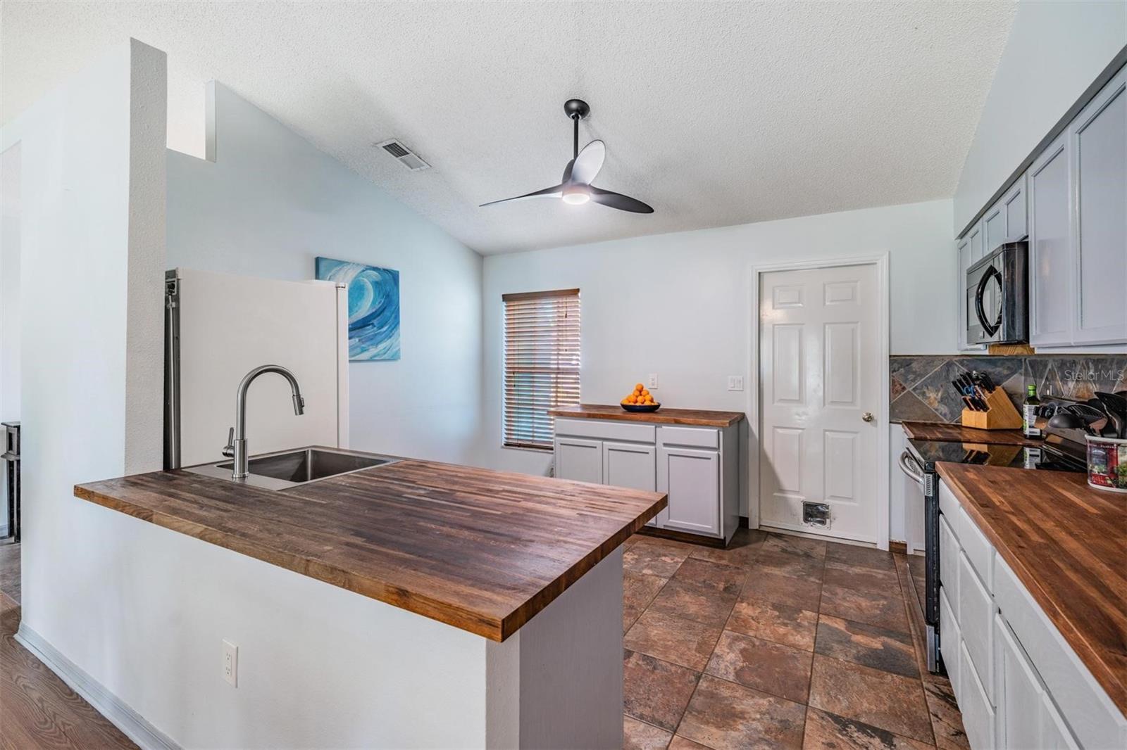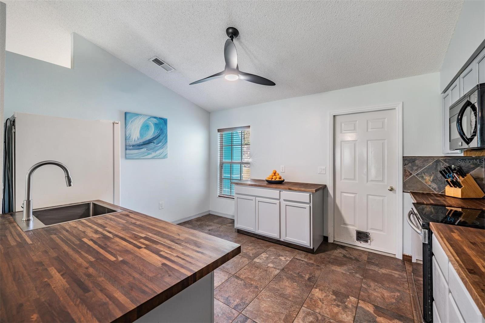 One or more photo(s) has been virtually staged. SELLER SAID "GET THIS HOUSE SOLD!" PRICED BELOW VALUE! Welcome Home! Beautiful Home situated on a Private, Oversized Lot with Wooded Views of Nature. Quiet cul-de- sac Neighborhood prevents through traffic. This 3 Bed, 2 Baths, 2 Car Garage features a Great Room Floor Plan with Wood-like Flooring & Tile throughout (no carpet) and Dining area. The Open Kitchen has Butcher Block Counters, some Stainless Steel appliances, Coffee Bar & Eat-in Space. Master Suite with Walk-in Closet & Master Bath with Step-in Shower & Heated Towel Bar. 2 additional Bedrooms share an adjacent Bath with Tub/Shower. This home shows Light and Bright with Soaring Vaulted Ceilings, Wood-like Flooring & upgraded Ceiling Fans and fixtures throughout. Enjoy the Large Covered Screened Patio with a Peaceful Nature setting in back. This has to be one of THE BEST LOTS! Great Location- Minutes from Downtown New Port Richey, close to Green Key beach, James Grey Preserve and Tarpon Springs, Shopping, Restaurants, Great Schools, & County Parks. A/C 2017. Roof 2016. HWH 2024. Whole House Filtration System 2024. Nest Cameras and System with Night Lighting. ***NO HOA. *** NO FLOOD INSURANCE REQUIRED. FLOOD DETERMINATION LETTER ATTACHED. ***HIGH AND DRY- NO STORM DAMAGE**10 MINUTE WALK TO THE GOLF CART FRIENDLY DOWNTOWN***