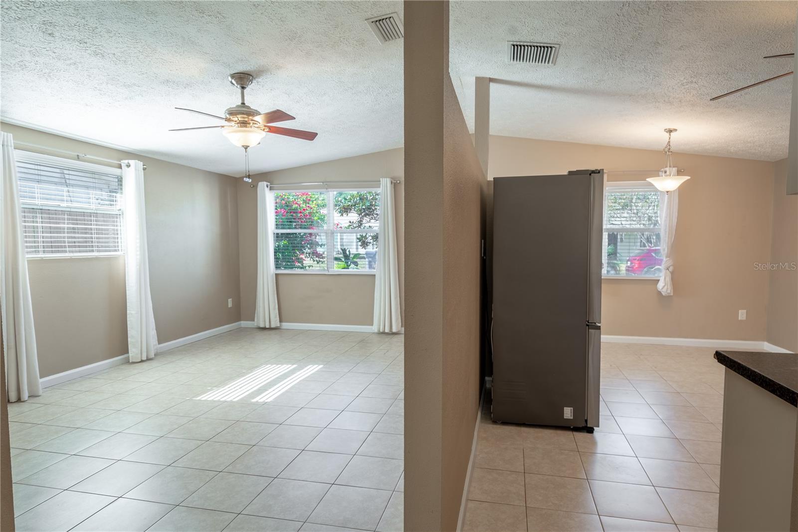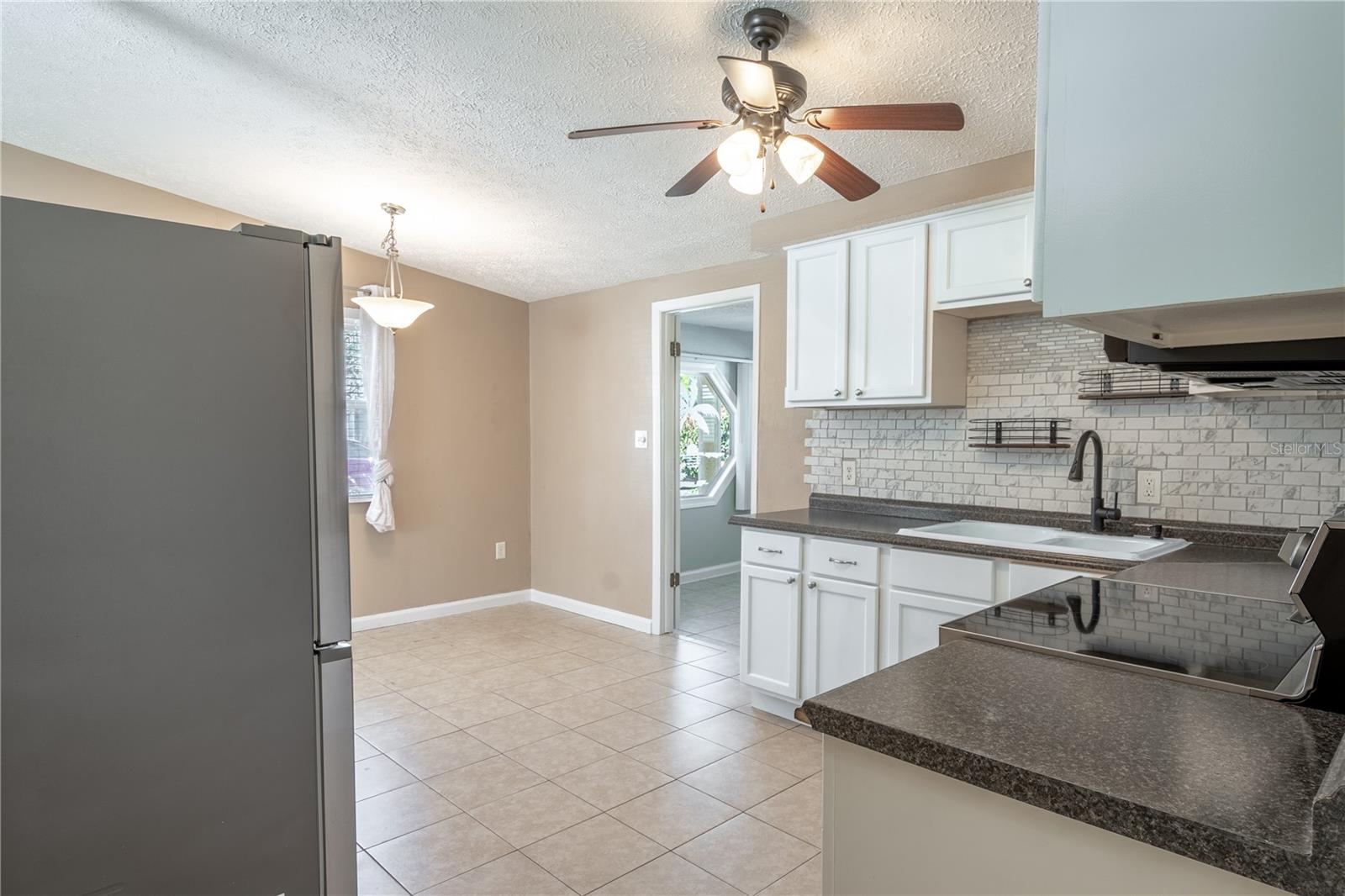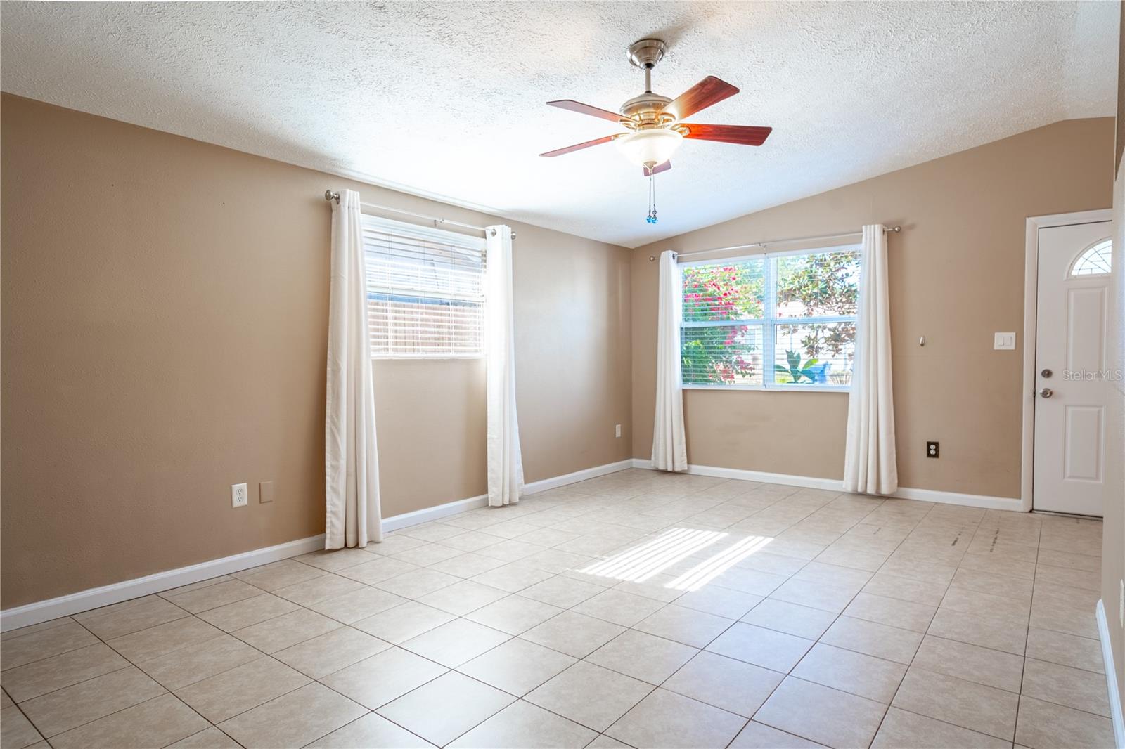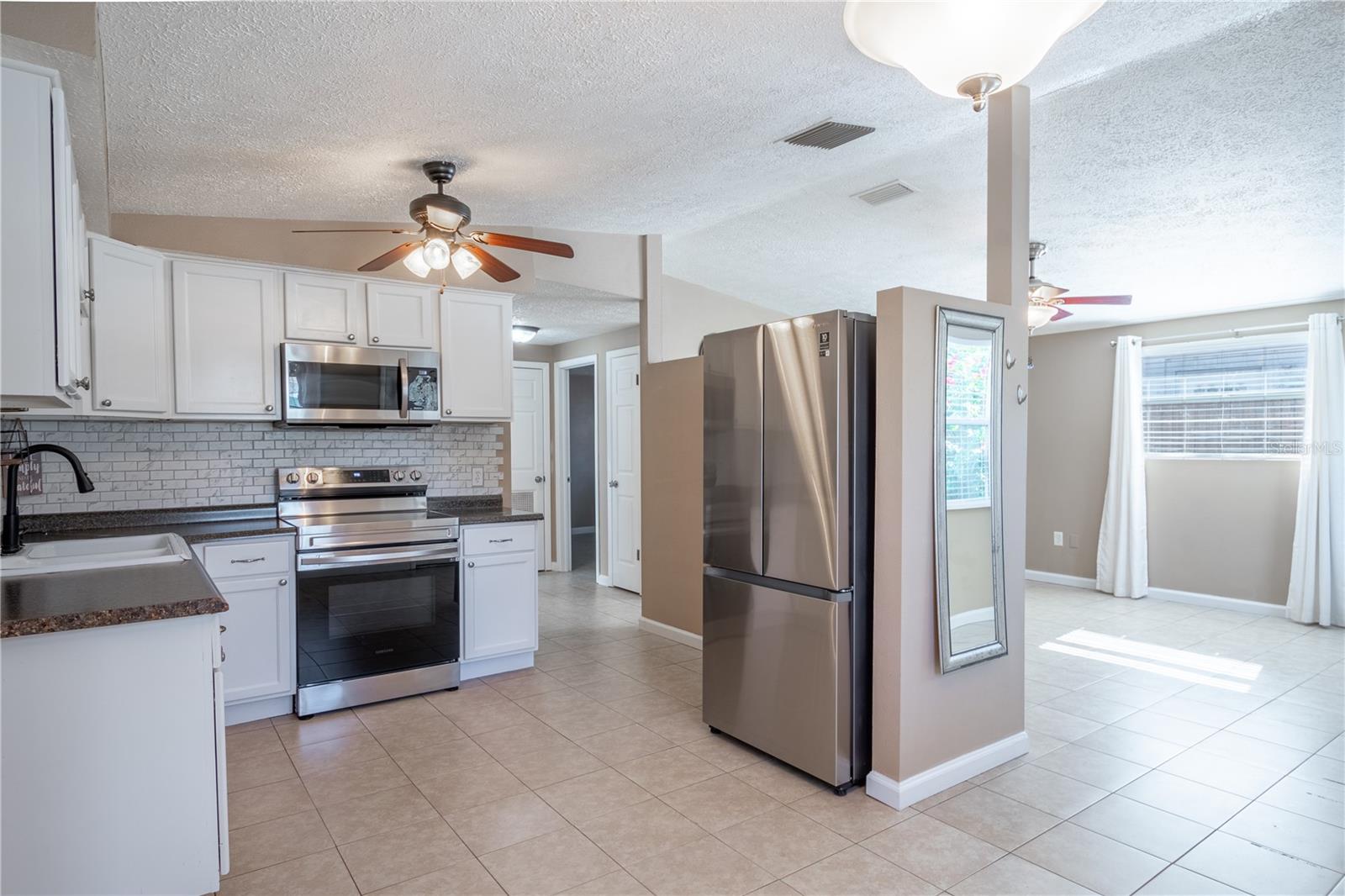 Welcome to this charming 3-bedroom, split-floor plan bungalow, a true gem that’s ready to welcome you home! This home offers peace of mind and modern updates for its future owners. Nestled on a spacious, tree-shaded lot, the property boasts a private backyard, perfect for relaxing evenings or lively family gatherings. The inviting covered front entryway and pavered driveway enhance the home’s curb appeal, making it as charming outside as it is inside. Inside Features: Step into the living room, where a neutral color palette creates a warm and inviting atmosphere. The vaulted ceiling, ceiling fan with light kit, and durable ceramic tile floors add to the room’s appeal. Seamlessly connected to the dining room, this open-concept space is perfect for entertaining. The dining area mirrors the living room’s aesthetic with its warm tones, ceramic tile flooring, and a stylish pendant light fixture. The kitchen features: * A full suite of stainless steel appliances, including a French door refrigerator/freezer, range, and microwave. * Granite countertops paired with a subway tile backsplash for a modern yet timeless design. * Ample storage within its stylish cabinetry, ensuring functionality meets flair. The open-concept layout flows effortlessly, making this home ideal for both family life and entertaining guests. Bedrooms and Bathroom: The primary bedroom is a cozy retreat with its neutral tones, ceramic tile flooring, and an etched-glass octagonal picture window that lets in soft natural light. A ceiling fan with a light kit ensures year-round comfort. Conveniently, the laundry room is located within the primary bedroom and offers the exciting potential to be transformed into a primary ensuite bath for added luxury. The second bedroom is just as delightful, with: * Neutral tones and ceramic tile flooring. * A built-in closet for easy organization. * Sliding glass doors that open to the back patio, blending indoor and outdoor living. The third bedroom features similar thoughtful touches, including neutral tones, ceramic tile flooring, a built-in closet, and a ceiling fan with a light kit. The bathroom has been designed with both style and functionality in mind, featuring: * A mirrored vanity with storage. * Ceramic tile flooring for easy maintenance. * A tiled tub with a shower, perfect for unwinding at the end of the day. * Location: This charming bungalow is conveniently located close to shopping, medical facilities, and an array of restaurants, ensuring that everything you need is just minutes away. Whether you're starting fresh, looking for a family home, or downsizing to something manageable yet stylish, this bungalow has it all. With its modern updates, practical layout, and serene outdoor spaces, this home won’t stay on the market for long!