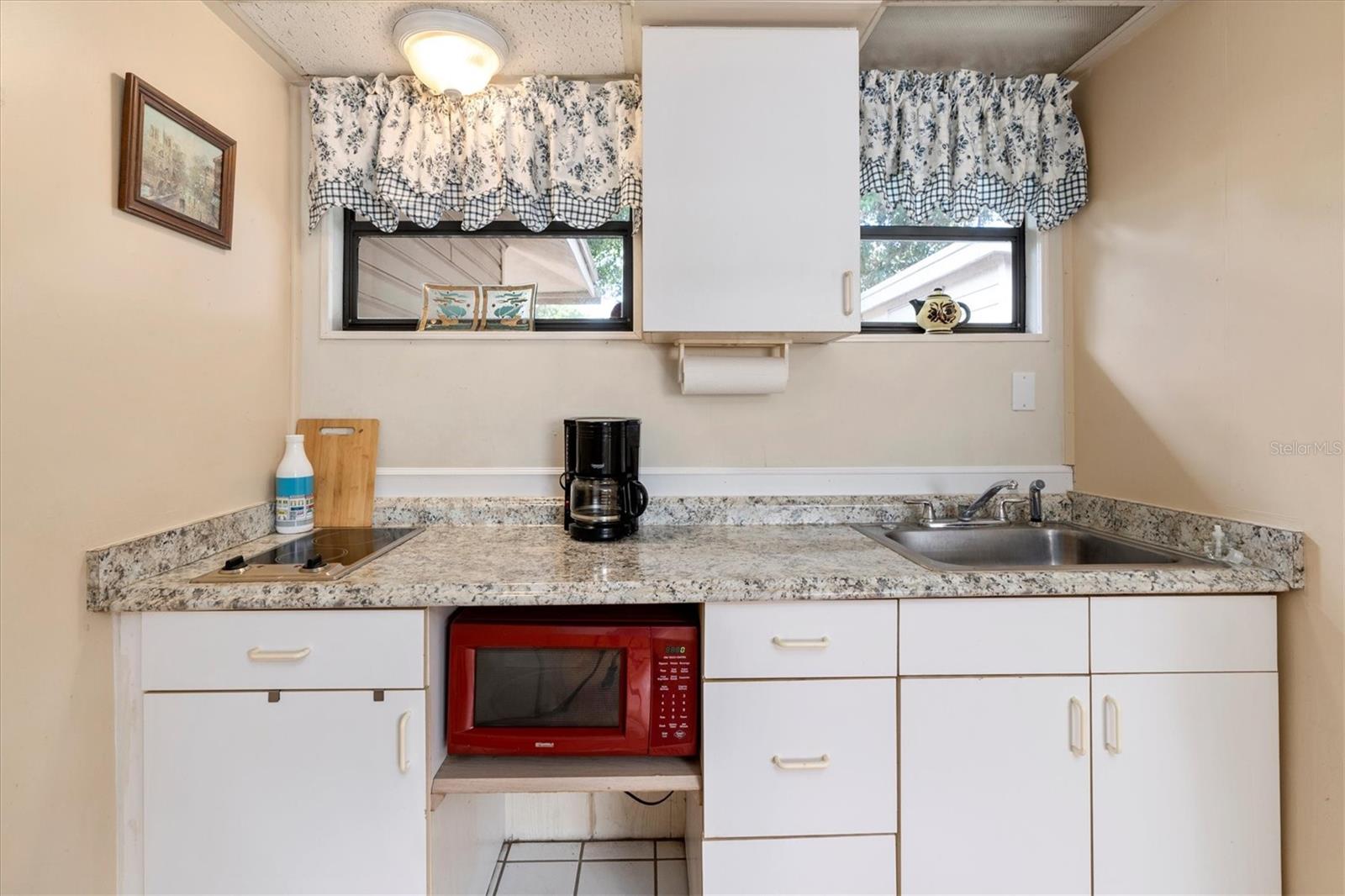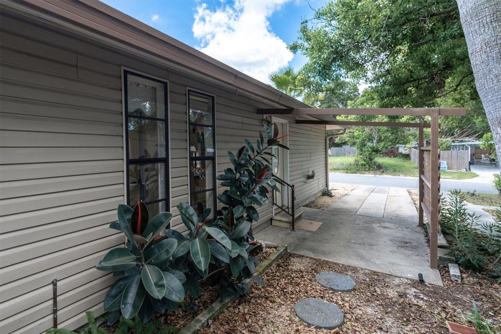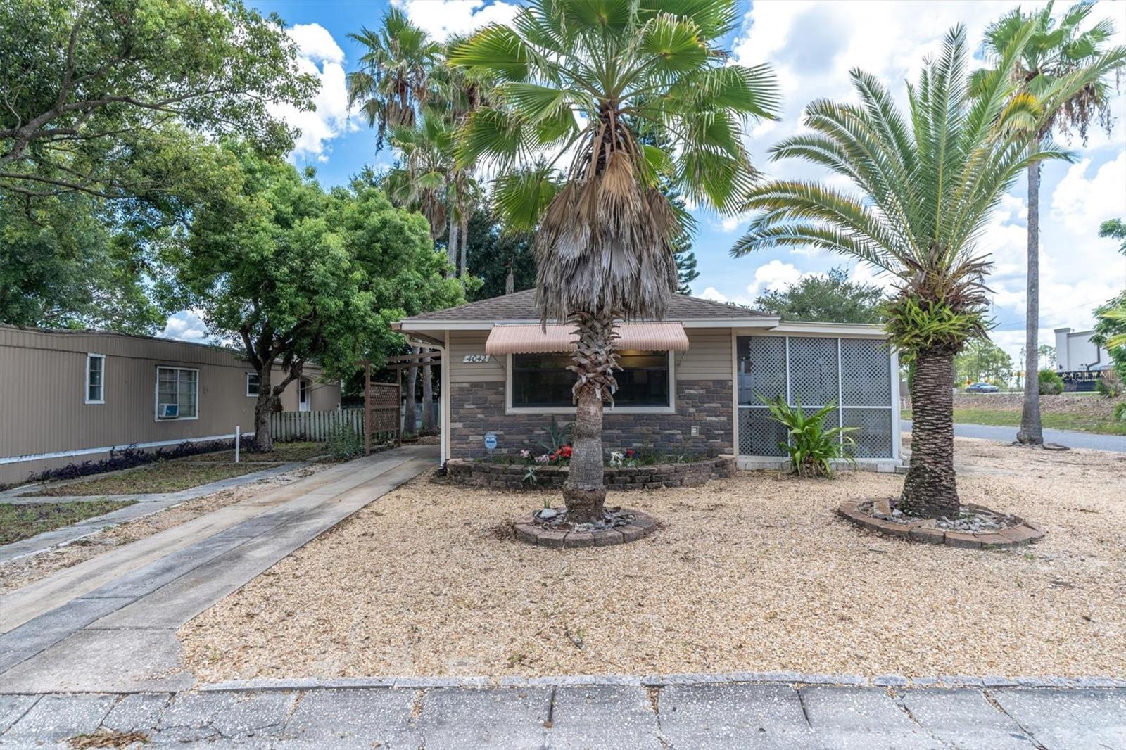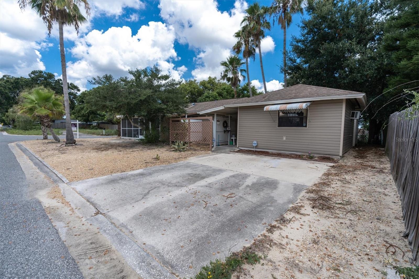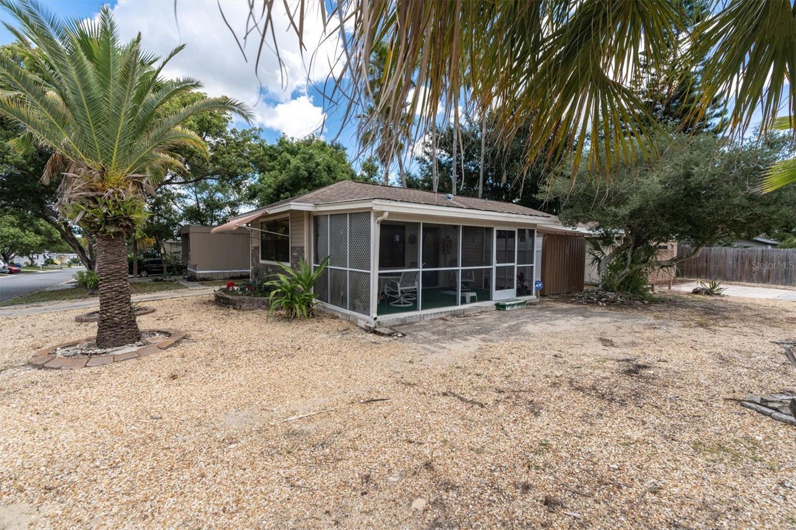 TWO PROPERTIES FOR THE PRICE OF ONE!!!!! SINGLE FAMILY HOME with attached, occupied efficiency to offside the mortgage!!!! on a corner lot with plenty of parking area AND best of all, NO deed restrictions or HOA to be concerned about! PRIME LOCATION conveniently located off State Road 54! Pay your mortgage by renting the ATTACHED EFFICIENCY as a source to earn income!! Short ride to several beaches and Historic Downtown Tarpon Springs with the beautiful sponge docks! This home has a very large living room/ 1 spacious bedroom/ bathroom/ kitchen/ courtyard area/ storage shed/screened lanai/mother in law suite(studio) with a kitchenette ,bathroom and a separate entrance. HVAC 2016/ WATER HEATER 2021/ ROOF 2011.