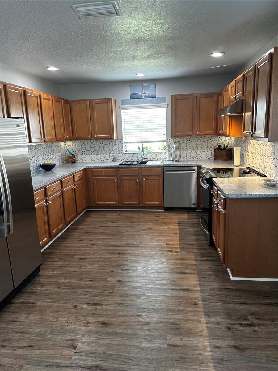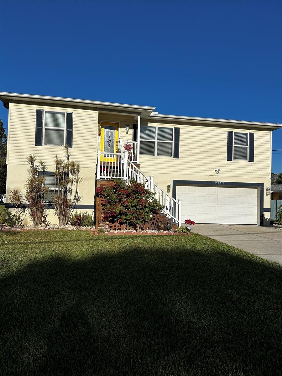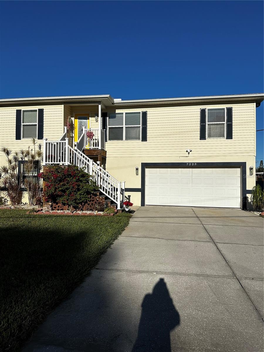 Elevated WITH Elevator on oversized corner lot in trendy New Port Richey,located in the county. Built to Hurricane/Flood Code,this approximately 1500 Sq Ft 3/2 with 3 car garage,in quiet neighborhood,with no HOA,has LOW hurricane/Flood insurance,is LOW maintenance and Energy Efficient with Hurricane Impact Windows. With Elevator,36” interior doors throughout,wide hallways,and step in shower. UPDATED in 2021,it is Move In Ready with new LVP flooring,no carpet,solid wood cabinets and bath vanities,Moen faucets,Upgraded stainless appliances,Large U shaped kitchen with Composite Sink,soft closed cabinets,coffee bar or pantry,and eat in area. Split floor plan with 2/1 on one side and primary/bath on opposite side providing privacy. New in 2021,Washer and dryer included,and 2” blinds throughout included. Below you have a Huge garage approximately 1500 sq. Ft. With Built In 9 x 16 room for workshop,crafts,man cave,etc… Easily park 3 cars AND a golf cart! It’s like double the space under one roof! The oversized pie shape lot has room to store your RV, if you want. There is no pet restriction in the neighborhood. The home is Wheelchair accessible with private elevator inside home.