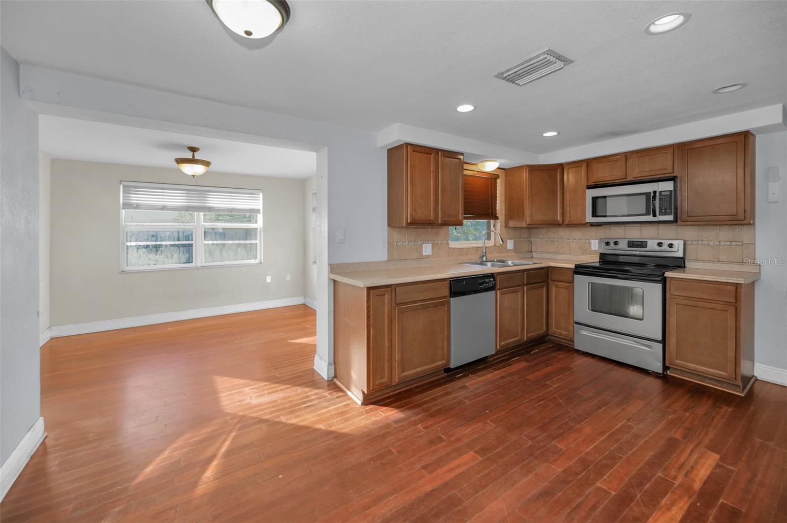 This cute and nicely updated 2-bedroom, 1.5-bath, 1 car garage home features an open floor plan, perfect for modern living. The spacious living room and family room provide plenty of room for relaxation and entertaining. The kitchen boasts stainless steel appliances and a dining area, ideal for casual meals. Laminate flooring throughout adds to the home’s sleek and low-maintenance appeal. Enjoy the outdoors from your lanai, overlooking a fully fenced backyard – great for pets, gardening, or enjoying the Florida sunshine. The 1-car garage offers convenience and additional storage space. Located in a fantastic area near shopping, dining, medical facilities, golf courses, and beaches, this home is perfect for those looking to enjoy the best of New Port Richey. Schedule your showing today – this one won’t last!